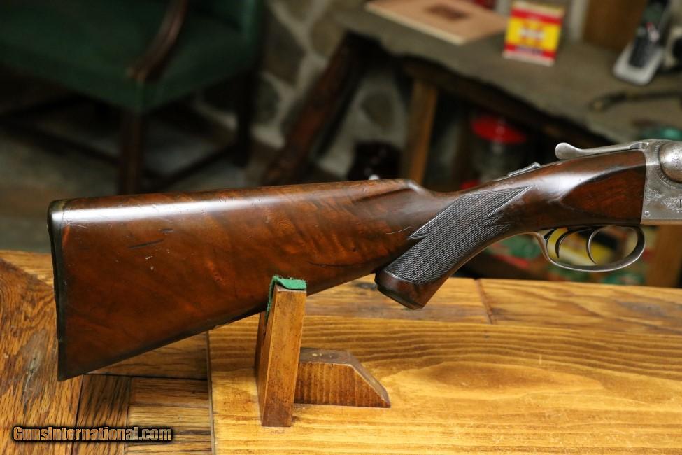Description: SALE PENDING Parker GH 16 Gauge serial number 219039 made in 1926. This fine original 16 gauge Parker features 28 inch Parker Spec. Steel barrels. Excellent bores with original bore diameters of .667 and .667 and choke constrictions of .012 left and .020 right. (IC & Mod). Original 2 /1/2 inch chambers. Very nice original barrel blue with some very light spotting near the breeches. There is one tiny ding in the right barrel about 3 3/4 inches from the muzzle that affects nothing. Great original case color with about 35 % coverage that's stronger on the left side of the receiver. Excellent screws and tight lock up. Very pretty original wood with the smaller type original stock and dog's head butt plate. Various light handling marks in the original stock finish but most of the wood finish remains. No cracks or repairs and nice original checkering. Length of pull is 14 inches from the front trigger over the original butt plate. Drop at comb is 1 1/2 inches and drop at heel is 2 7/8 inches. Weight is 6 lbs 14 oz. This is truly a great original untouched small bore Parker with quite a bit of condition and very pretty wood. Includes Parker Research Letter. Go to ironmenarms . c o m for additional pictures SOLD Curio/Relic: Yes Manufacturer: Parker Bros. Model: GH 16 gauge Serial Number: 219039 |