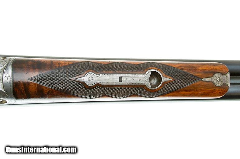 Description: #1 FRAME #229XXX 28' IC AND FULL 2 1/2" CHAMBERS DOUBLE TRIGGER EXTRACTORS SPLINTER FOREARM PISTOL GRIP EXCELLENT ORIGINAL CONDITION WITH TRACES OF CASE COLOR AND LIGHT HANDLING MARKS 6LBS 8 OZ X 2 3/4 X 1 3/4 X 14 1/4 TO A DOGS HEAD BUTT SOLD |
