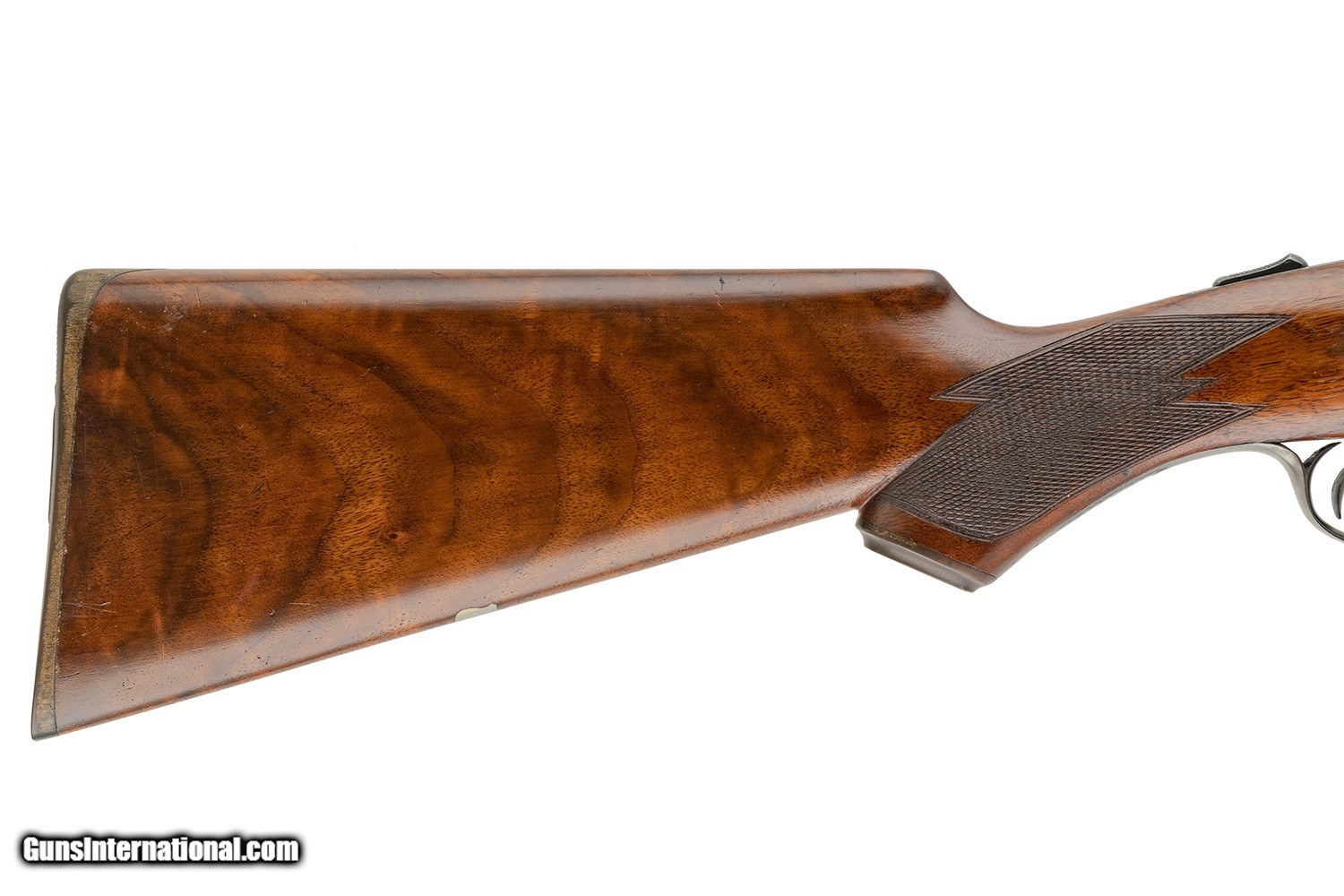Description: O FRAME #199907 FACTORY 27" SOLID RIB BARRELS (.018 AND .023 CONSTRICTIONS) 2 1/2" CHAMBERS DOUBLE TRIGGERS EXTRACTORS SPLINTER FOREARM CAPPED PISTOL GRIP DOGS HEAD BUTT PLATE EXCELLENT ORIGNIAL CONDITION WITH SOME LIGHT HANDLING 6LBS 3 OZ 2 15/16 DAH 1 9/16 DAC 13 1/2" LOP SOLD |
