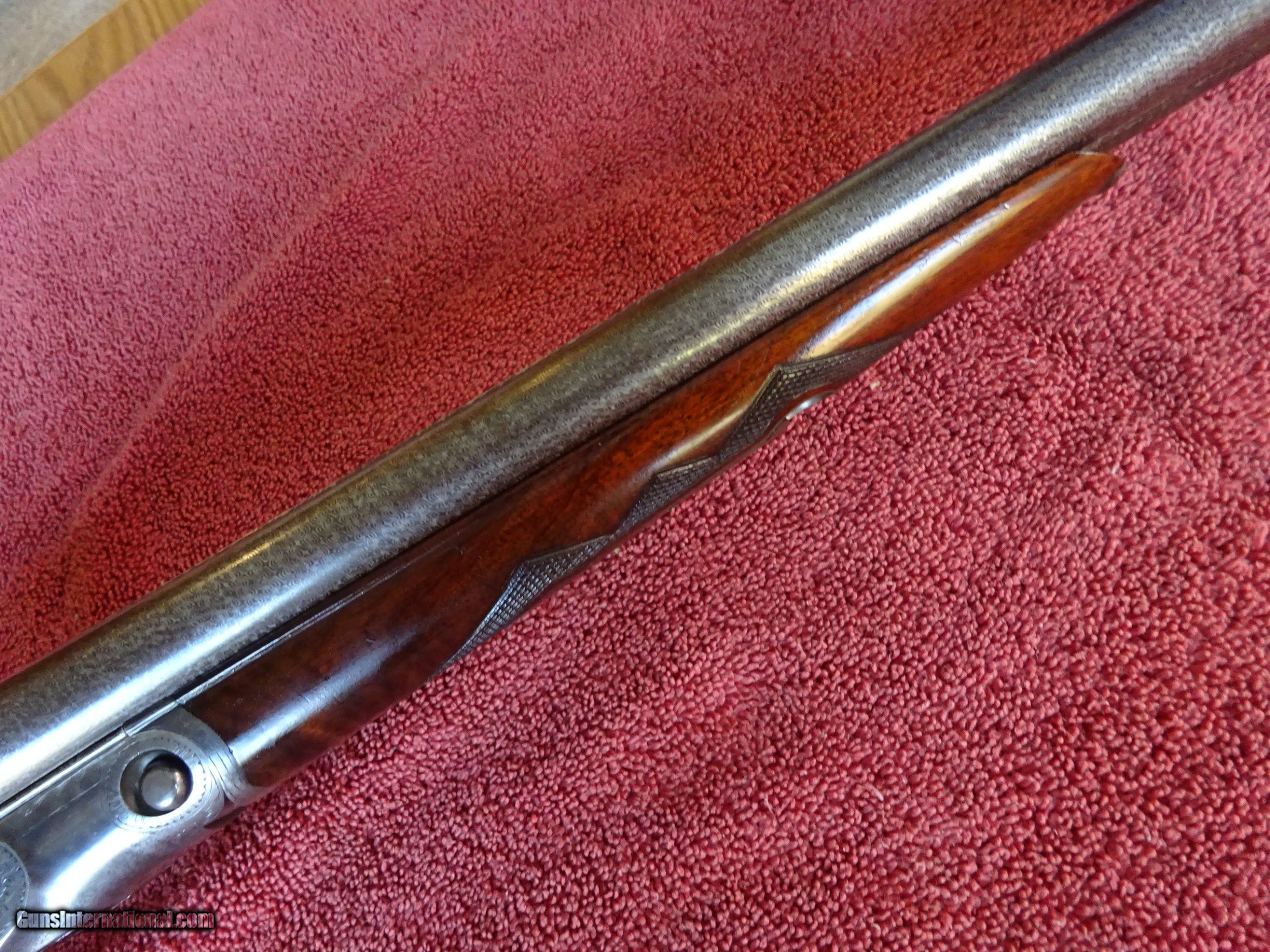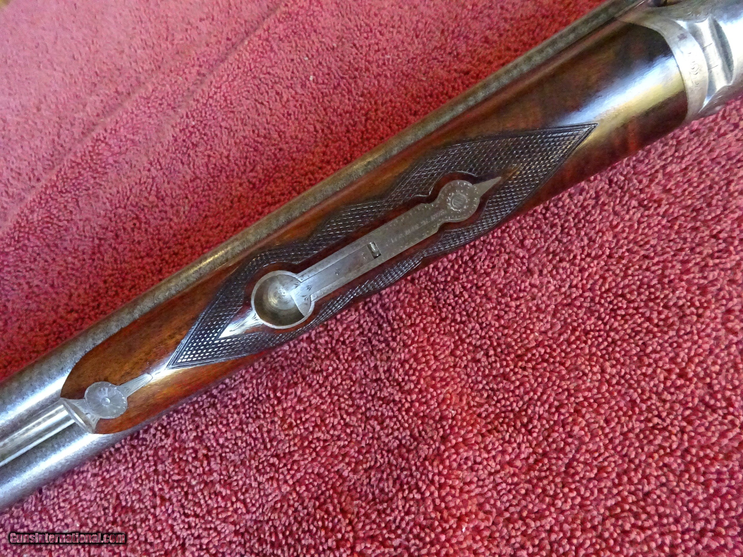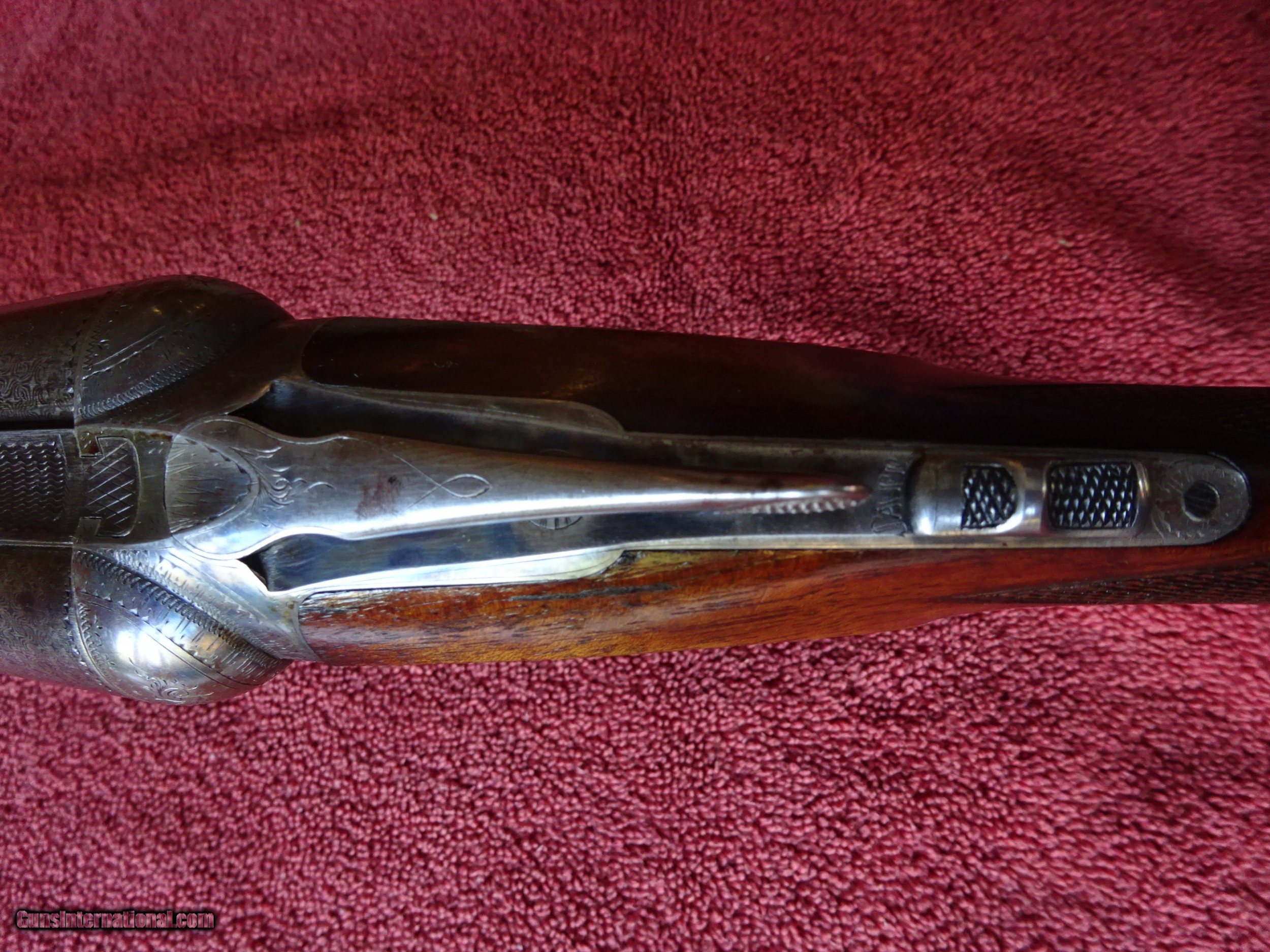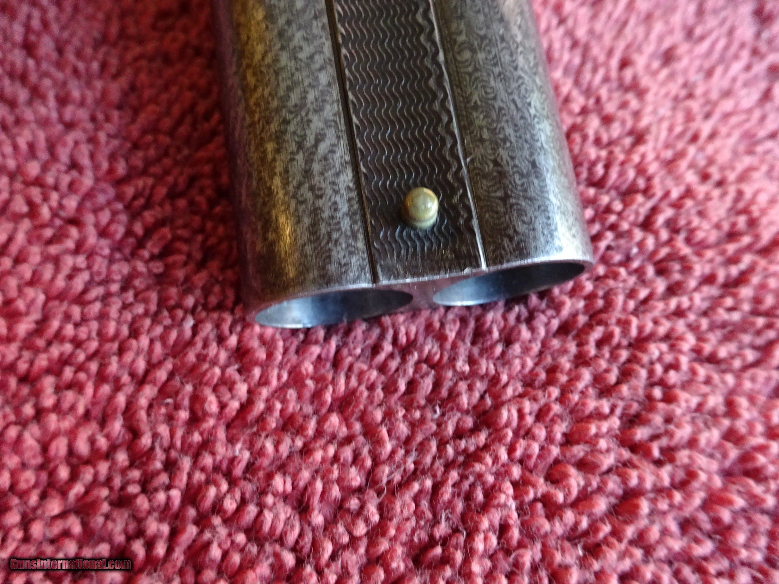 Description: PARKER GH GRADE 20 GAUGE. 28" DAMASCUS BARRELS, MODIFIED AND FULL, 2 5/8" CHAMBERS, MIRROR BRIGHT BORES, GORGEOUS DAMASCUS PATTERN, 100% COVERAGE WITH NO DINGS OR DENTS, BARRELS RING BEAUTIFULLY. NO. 0 FRAME, TYPICAL ENGRAVING PATTERN WITH GAME BIRDS ON BOTH SIDES AND THE BOTTOM PLUS FINE SCROLL WORK AND BORDERS, BOLD VIVID CASE COLOR ON ENTIRE FRAME INCLUDING THE FLOOR PLATE, PERFECT UNTURNED ENGRAVED SCREWS, TIGHT ON FACE. PISTOL GRIP STOCK, SPLINTER FOREARM, EXCELLENT CHECKERING AND WOOD FINISH, ORIGINAL GRIP CAP AND BUTTPLATE, EXCELLENT TRIGGERGUARD BLUE. GREAT DIMENSIONS, 1 1/2" X 2 1/2" X 14 1/4", 6 POUNDS 6 OUNCES. THIS IS THE NICEST ORIGINAL CONDITION PARKER 20 GA DAMASCUS GUN I'VE EVER SEEN. MADE IN 1903. $5500.00 + $50.00Insured shipping to an FFL address. See all Pats gun listings on this site! We also have hundreds of pieces of ORIGINAL gun company advertising & memorabilia available for sale on our site SPORTINGCOLLECTIBLES. We have no reprints or reproductions. Email for more information. SOLD Curio/Relic: Yes |
