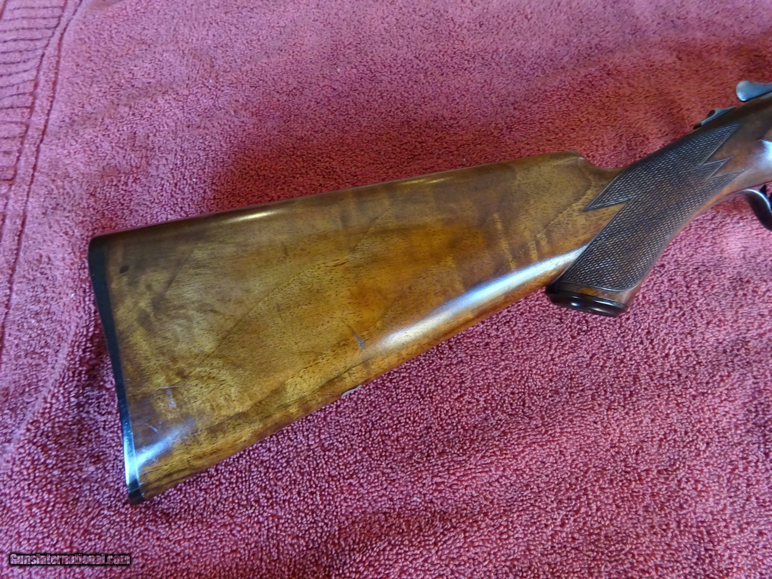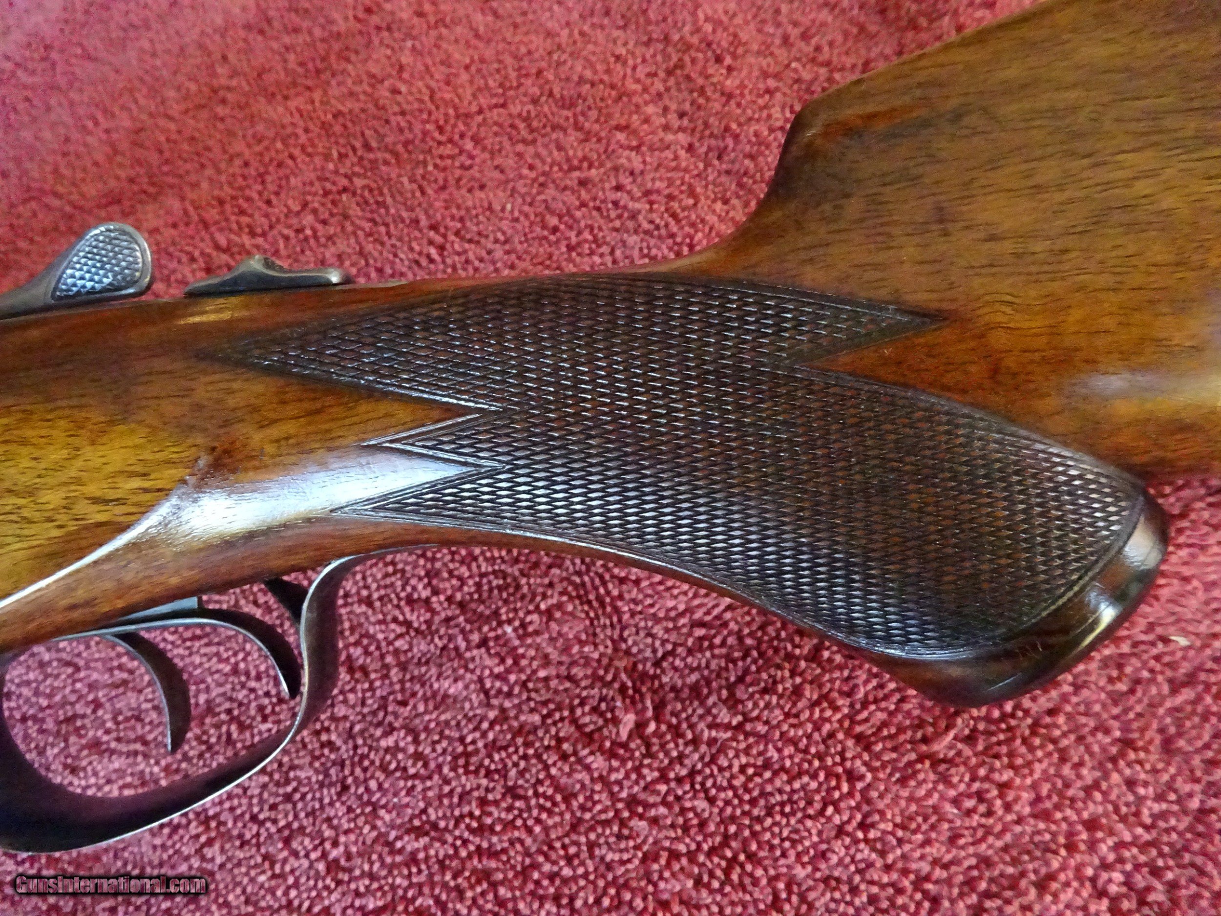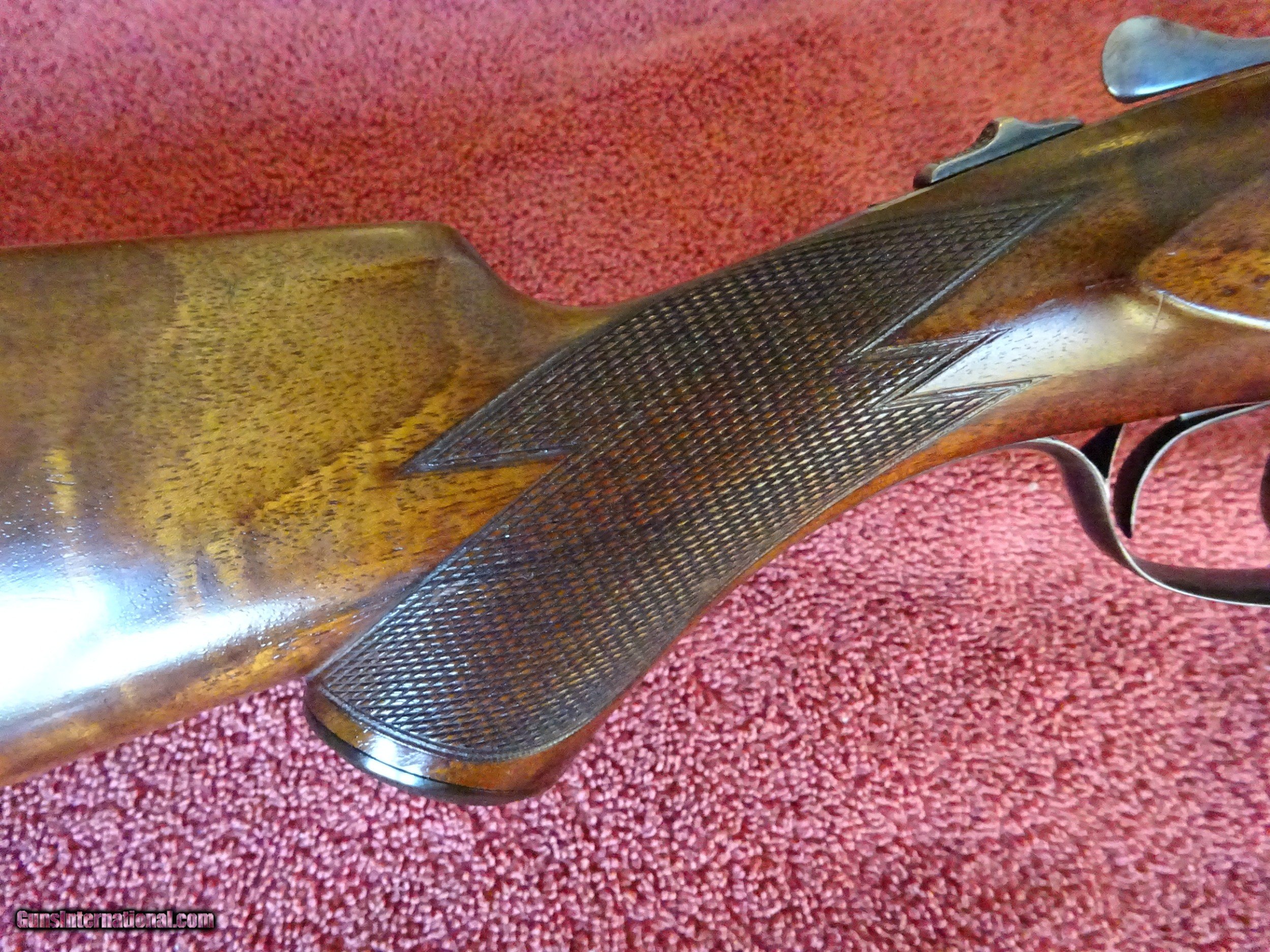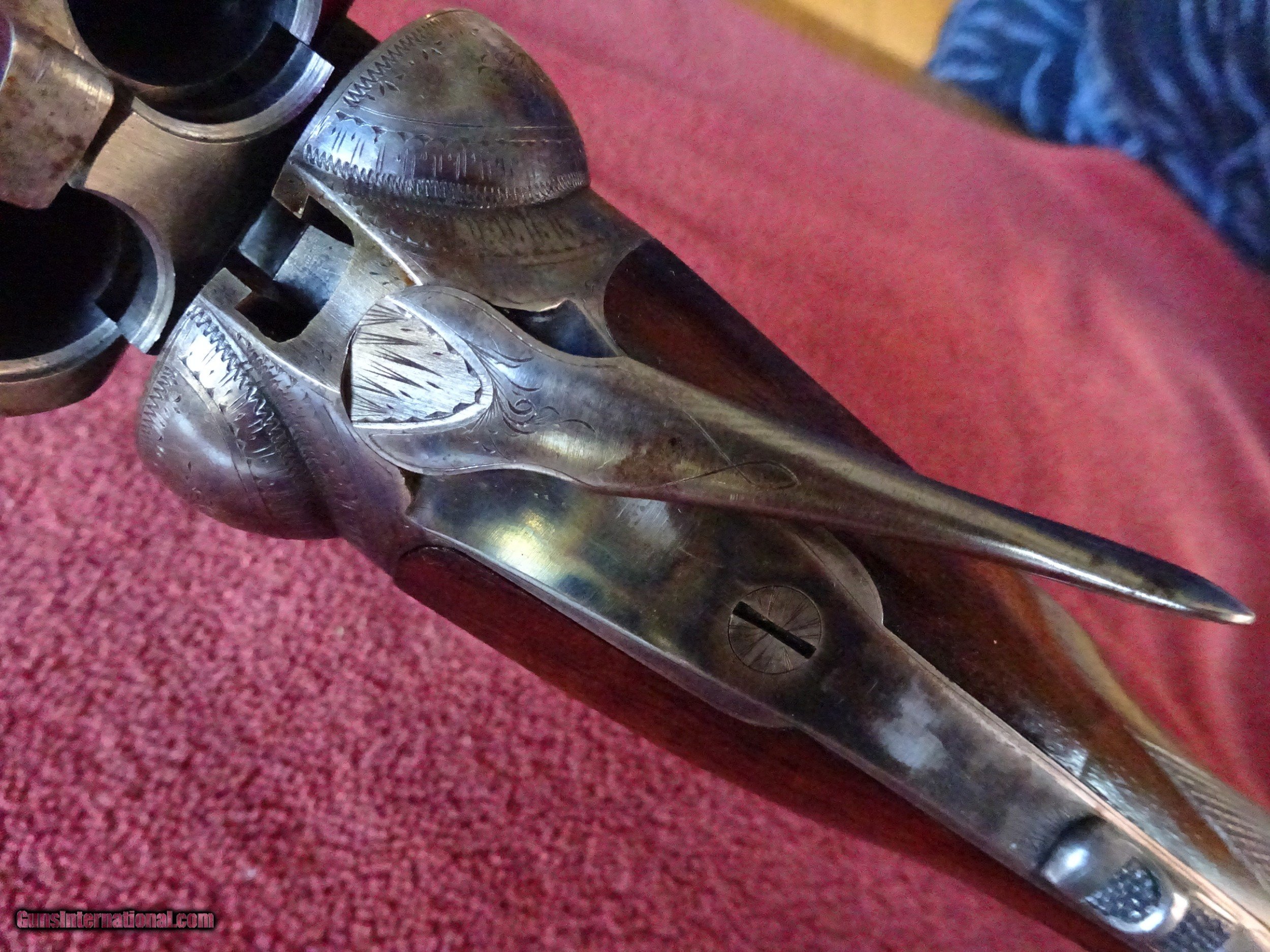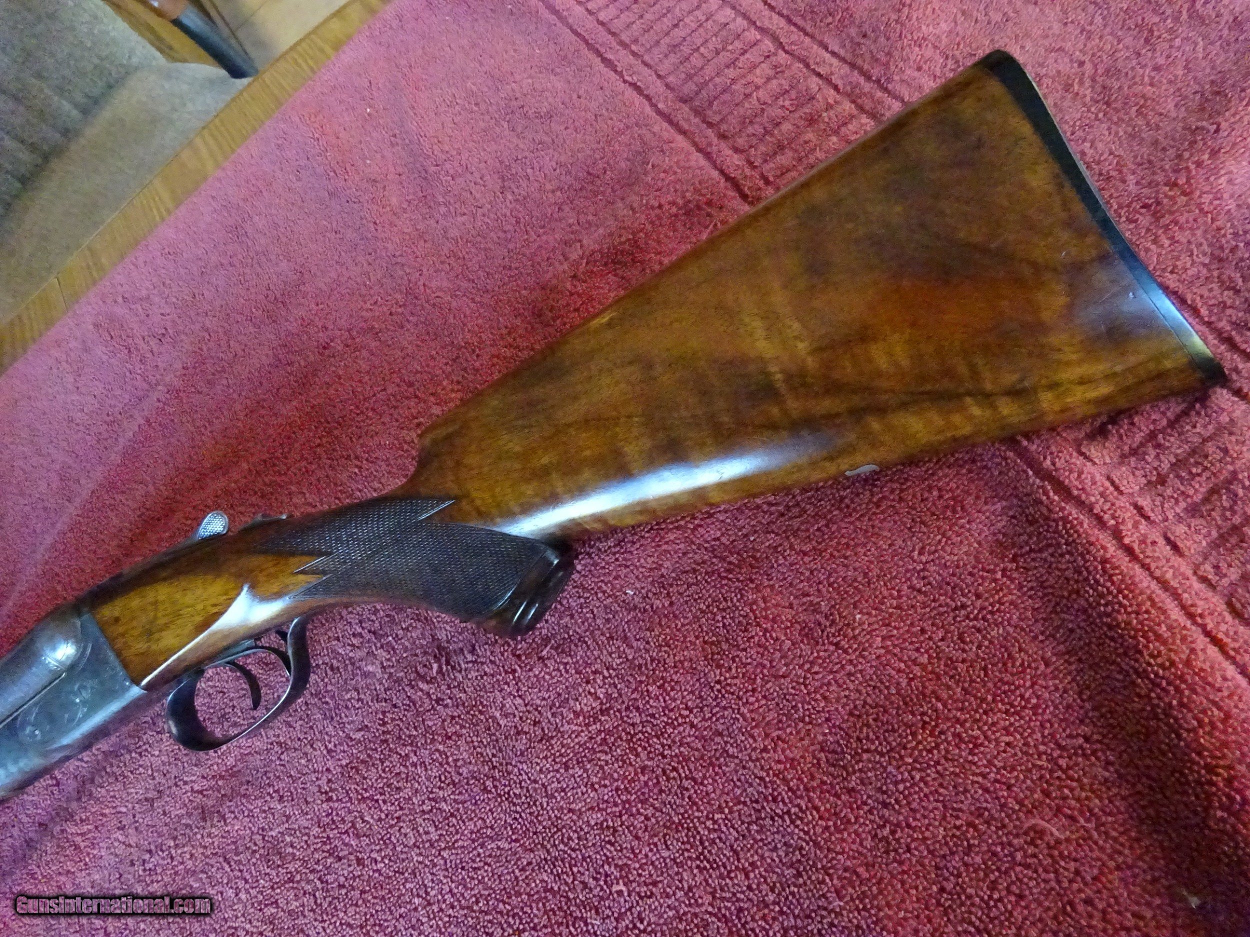 Description: PARKER GH GRADE 20 GAUGE. 28" DAMASCUS BARRELS, MODIFIED AND FULL, 2 5/8" CHAMBERS, MIRROR BRIGHT BORES, GORGEOUS DAMASCUS PATTERN, 100% COVERAGE WITH NO DINGS OR DENTS, BARRELS RING BEAUTIFULLY. NO. 0 FRAME, TYPICAL ENGRAVING PATTERN WITH GAME BIRDS ON BOTH SIDES AND THE BOTTOM PLUS FINE SCROLL WORK AND BORDERS, BOLD VIVID CASE COLOR ON ENTIRE FRAME INCLUDING THE FLOOR PLATE, PERFECT UNTURNED ENGRAVED SCREWS, TIGHT ON FACE. PISTOL GRIP STOCK, SPLINTER FOREARM, EXCELLENT CHECKERING AND WOOD FINISH, ORIGINAL GRIP CAP AND BUTTPLATE, EXCELLENT TRIGGERGUARD BLUE. GREAT DIMENSIONS, 1 1/2" X 2 1/2" X 14 1/4", 6 POUNDS 6 OUNCES. THIS IS THE NICEST ORIGINAL CONDITION PARKER 20 GA DAMASCUS GUN I'VE EVER SEEN. MADE IN 1903. $5500.00 + $50.00Insured shipping to an FFL address. See all Pats gun listings on this site! We also have hundreds of pieces of ORIGINAL gun company advertising & memorabilia available for sale on our site SPORTINGCOLLECTIBLES. We have no reprints or reproductions. Email for more information. SOLD Curio/Relic: Yes |