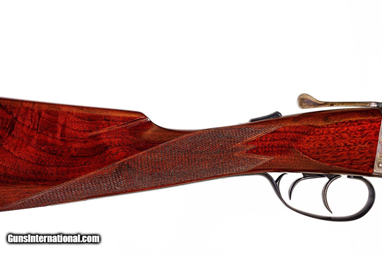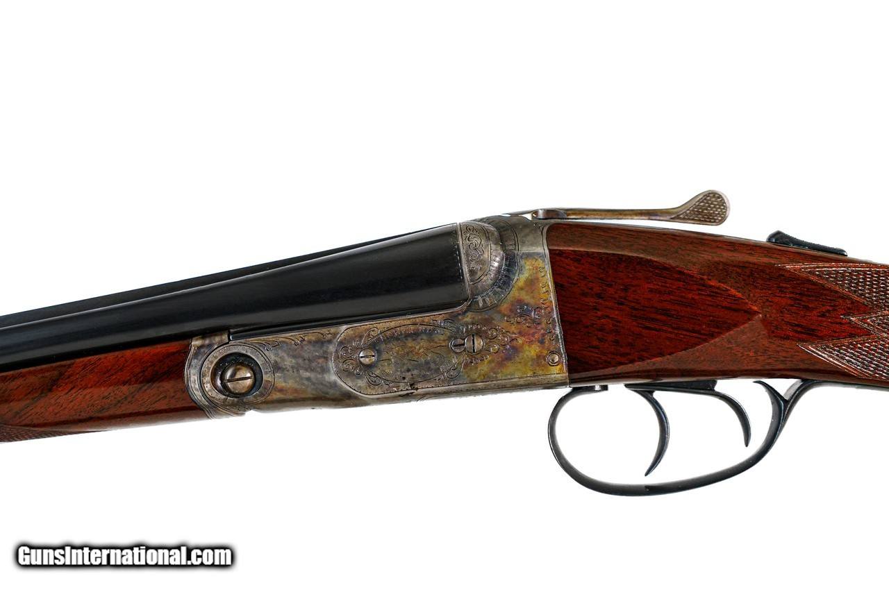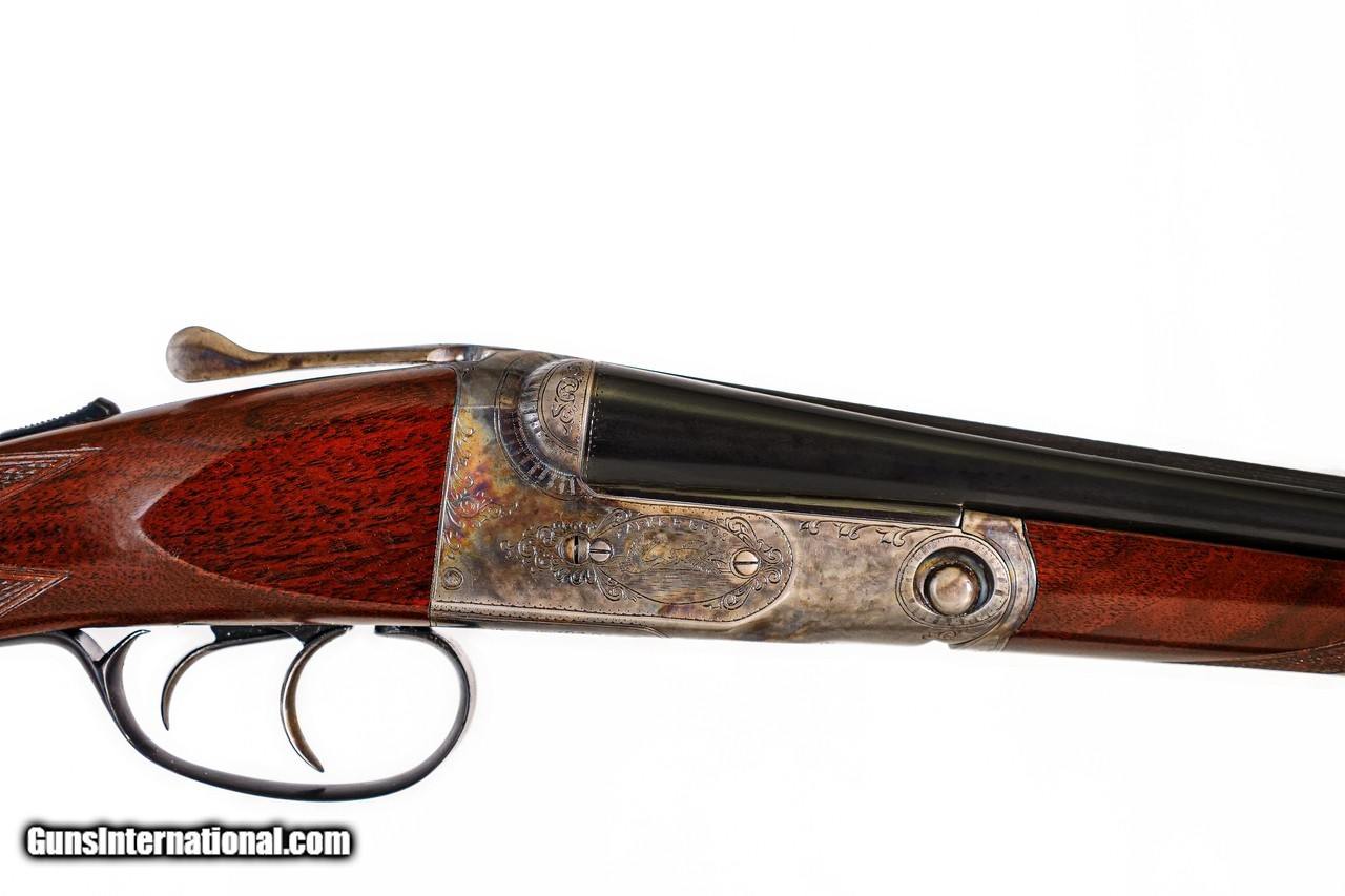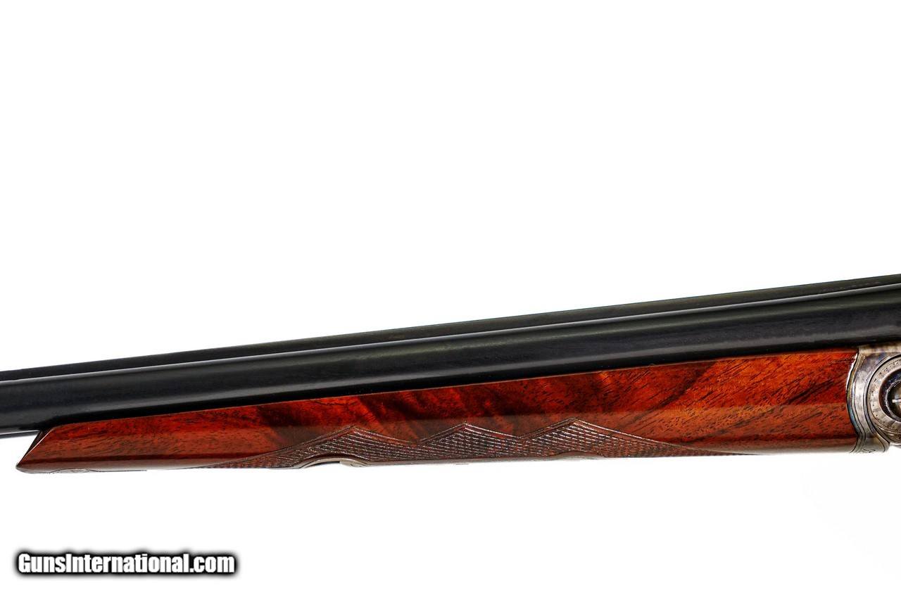 Description: Parker - GH Grade, .410. 26" Barrels Choked M/IM. Highly figured feathercrotch straight grip stock, dogs head butt plate, double trigger, extractor, 219,xxx serial number, 000 frame, sharp engraving, perfect screws, splinter forend, 85% case coloring, near perfect bluing and wood finish, great configuration, ultra rare G grade in a 410, available for immediate delivery. Connecticut Shotgun/Galazan are experts at buying, selling and manufacturing Parker Shotguns. We have handled the largest collection of Parker shotguns including all 3 Invincible grades, and many of the milestone guns, too numerous to list. We can assure the guns that we sell for shooting or collecting are simply the best. We also maintain many styles, hunting presentation cases and accessories. Inv: 51499 5 lbs. 8 oz. 14 3/8“ x 1 ½“ x 2 3/8“ $27,999.00 SOLD |