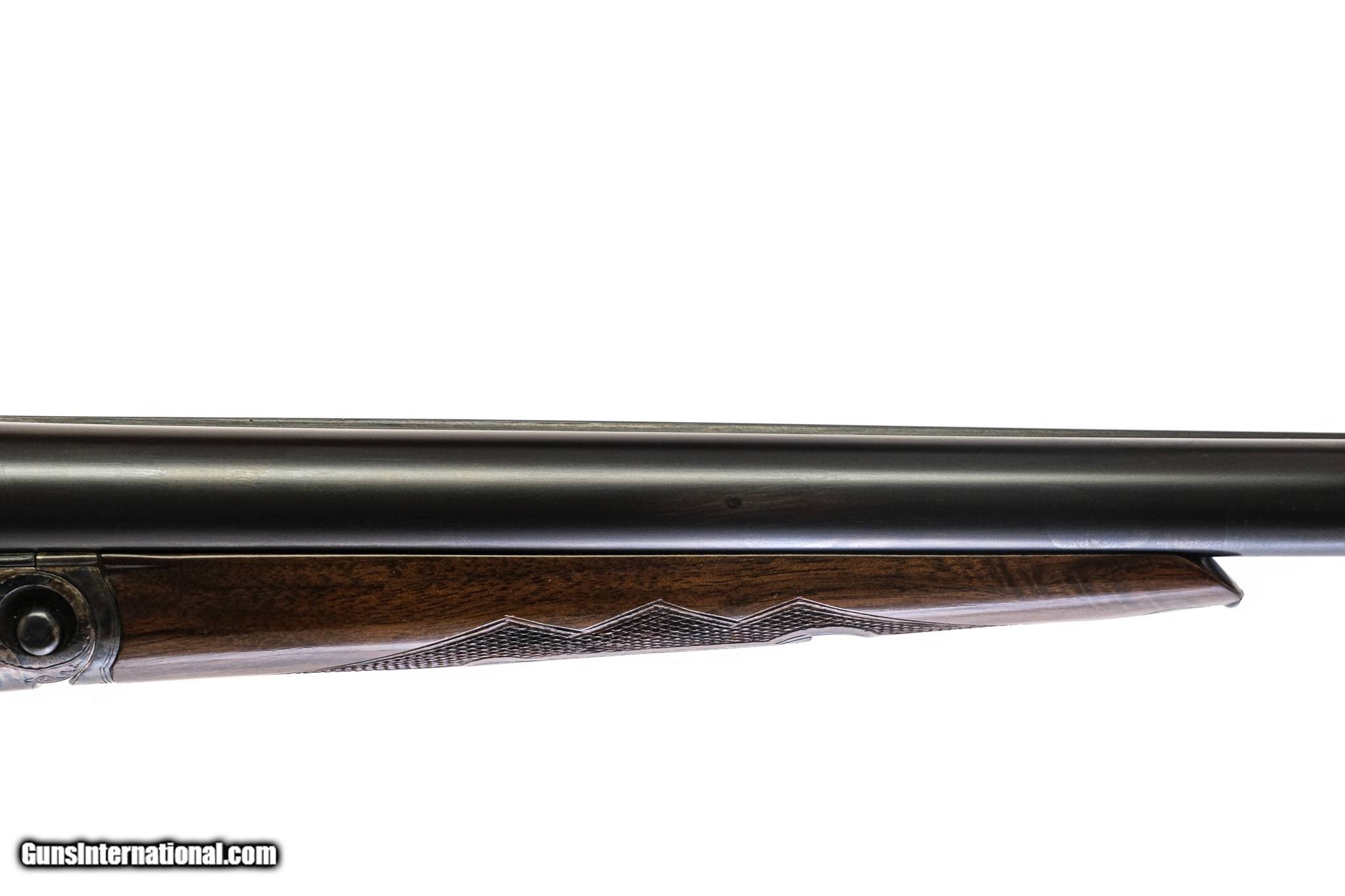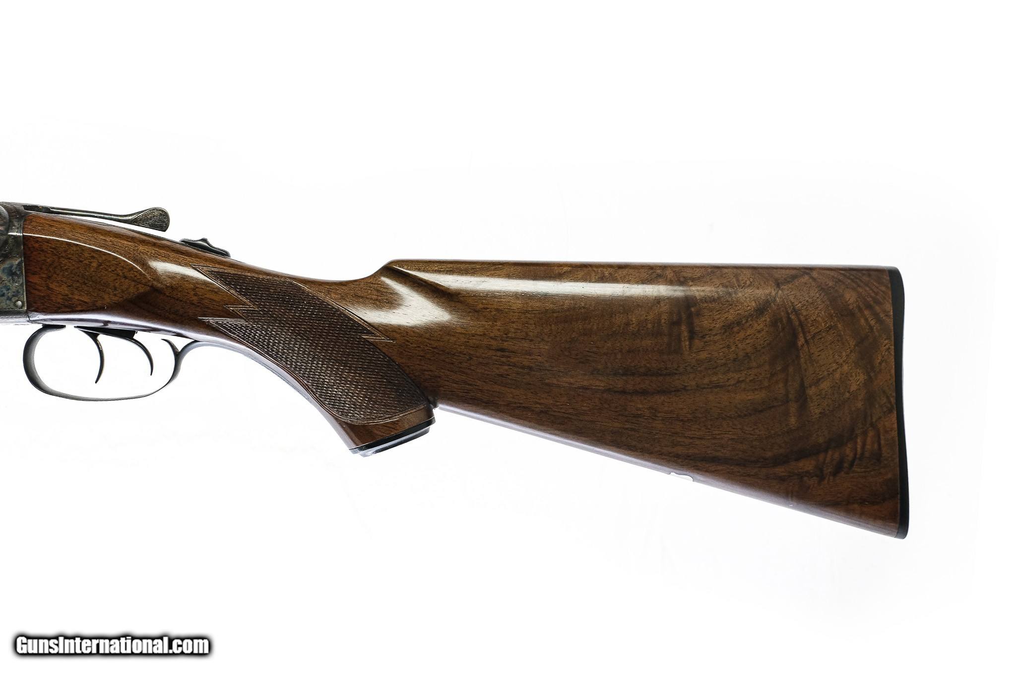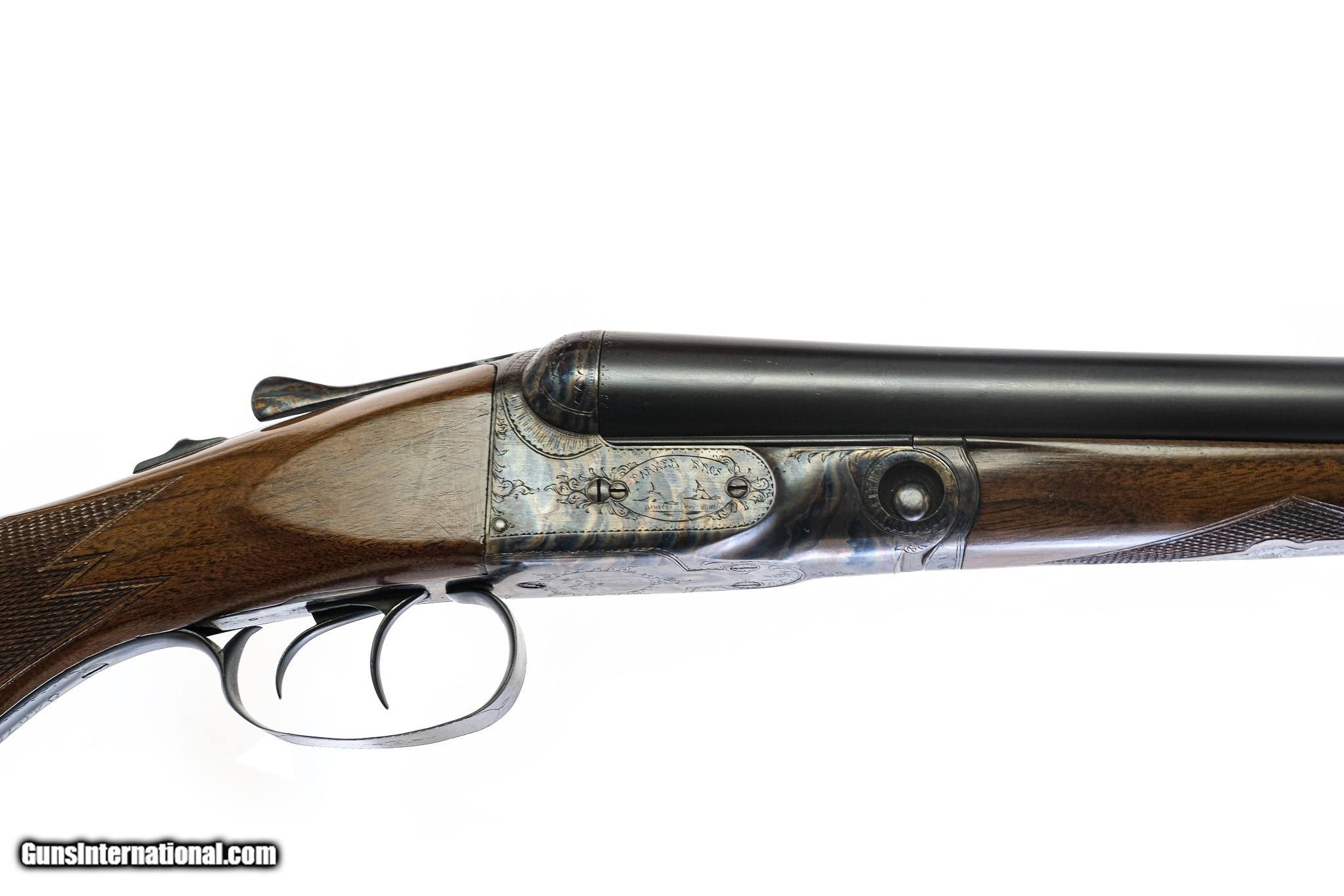 Description: Parker - GH Grade, SxS, 12ga. 28" Barrels Choked M/M. Pistol grip, dogs head buttplate, double trigger extractor, 2 ivory sights, This gun is 100% brand new! From Delgreco and has been unfired since! The gun is in as new condition! Barrels are perfectly, undetectably sleeved. Inv: 81730 7 lbs. 12 oz. 14 3/8" x 1 3/8" x 2 ½' $2,995.00 SOLD |