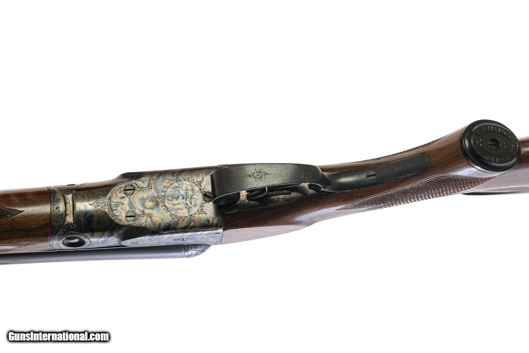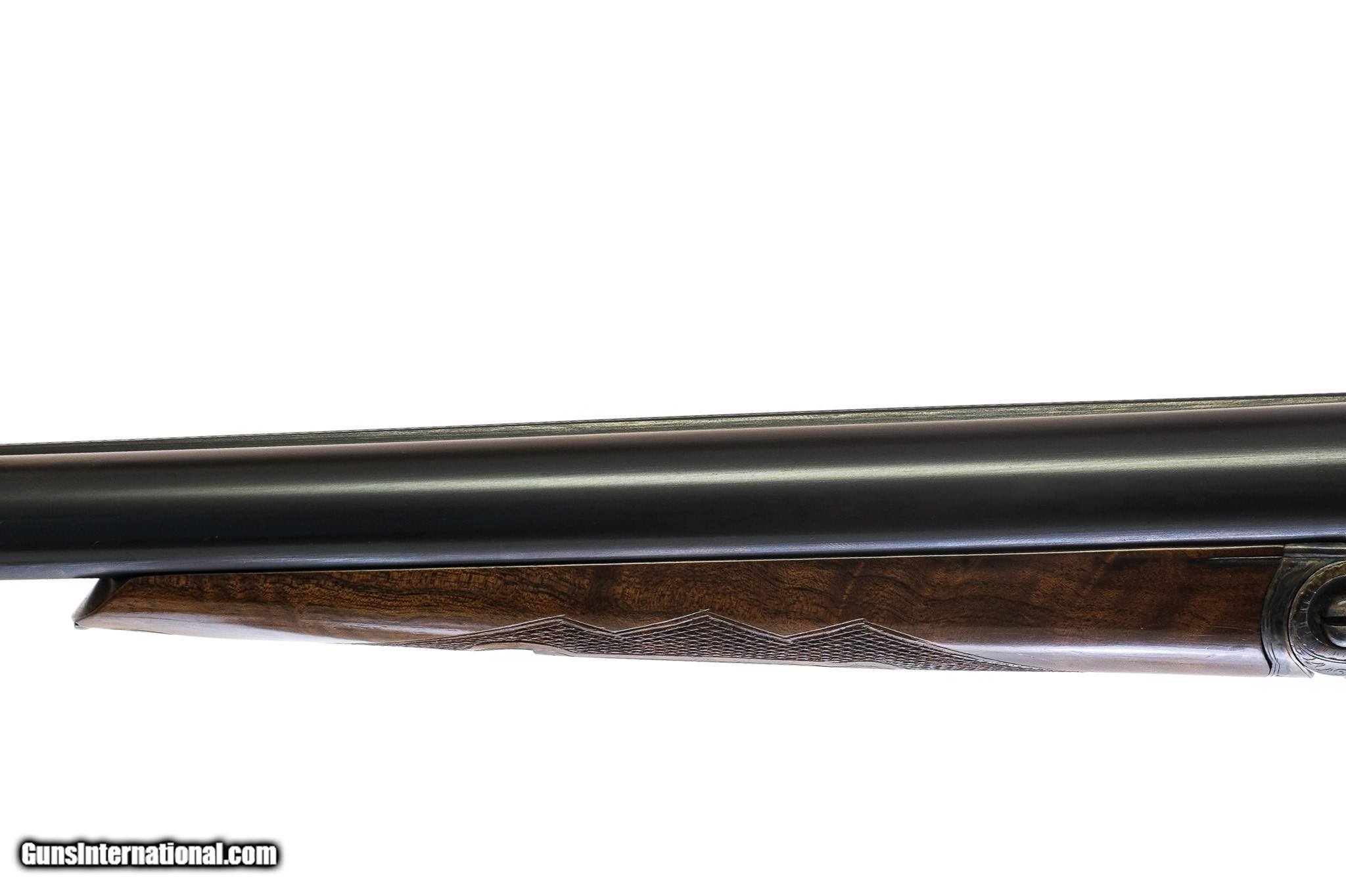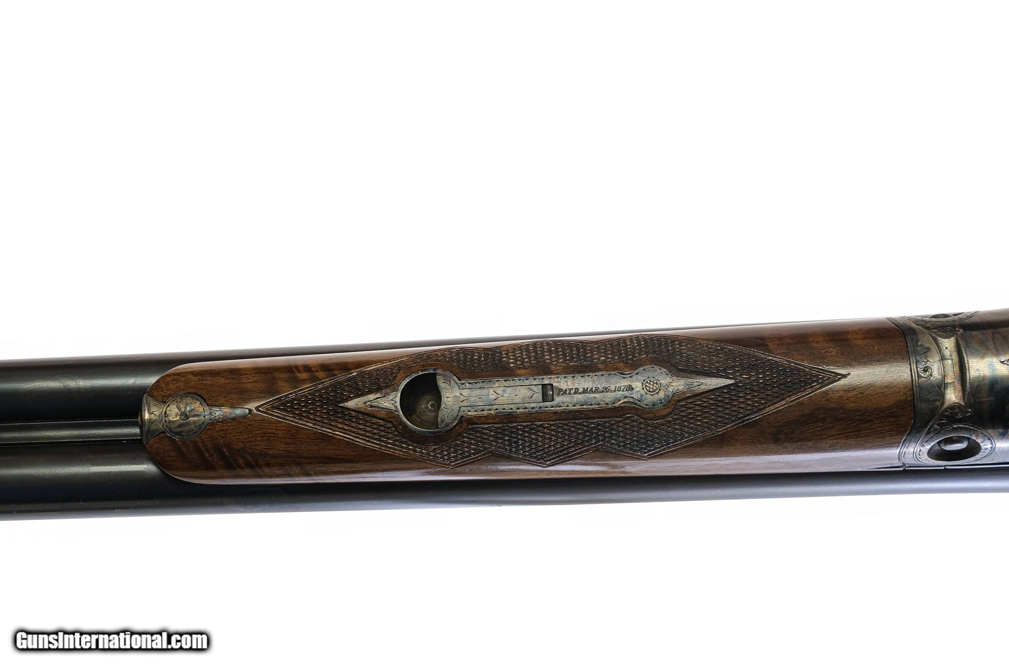 Description: Parker - GH Grade, SxS, 12ga. 28" Barrels Choked M/M. Pistol grip, dogs head buttplate, double trigger extractor, 2 ivory sights, This gun is 100% brand new! From Delgreco and has been unfired since! The gun is in as new condition! Barrels are perfectly, undetectably sleeved. Inv: 81730 7 lbs. 12 oz. 14 3/8" x 1 3/8" x 2 ½' $2,995.00 SOLD |