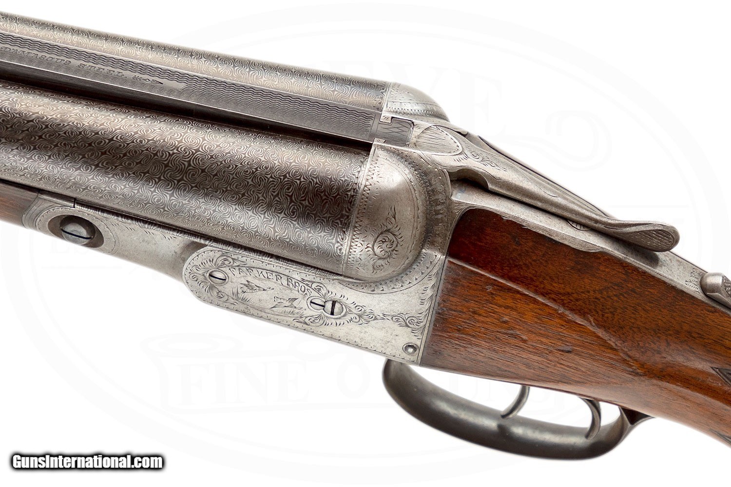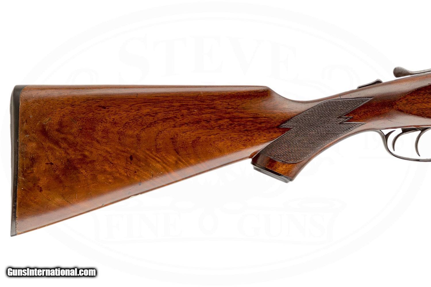 Description: SN# 198839 2 FRAME 30" DAMASCUS STEEL SOLID RIB BARRELS (.032 AND .038 CONSTRICTIONS) 2 1/2" CHAMBERS DOUBLE TRIGGERS EJECTORS SPLINTER FOREARM CAPPED PISTOL GRIP DOGS HEAD BUTT EXCELLENT CONDITION WITH SOME LIGHT HANDLING 7LBS 14 OZ 2 11/16" DAH 1 5/8" DAC 14 1/4" LOP SOLD |