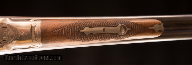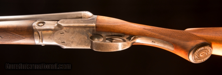 Description: Traces of case color and good screws on the classic. This Parker has really good dimensions, unusually high. The 32" barrels and weight with the full chokes would make this a super sporting clays or live pigeon gun. SOLD Curio/Relic: Yes Manufacturer: Parker GHE 12g. with 32" barrels Serial Number: 210846 Ejectors: Yes Barrels: 32 Barrel Type: Steel Action: boxlock Gauge Info: 12 gauge Stock Comb: 1 1/2 Stock Heel: 2 1/2 Stock Cast: 0 LOP: 14 3/8 Weight: 8 lbs. 2 oz. Choke Left: .037 extra full Choke Right: .037 extra full Proof:Nitro: 2 5/8 Minimum Wall Thickness Left: .032 Minimum Wall Thickness Right: .032