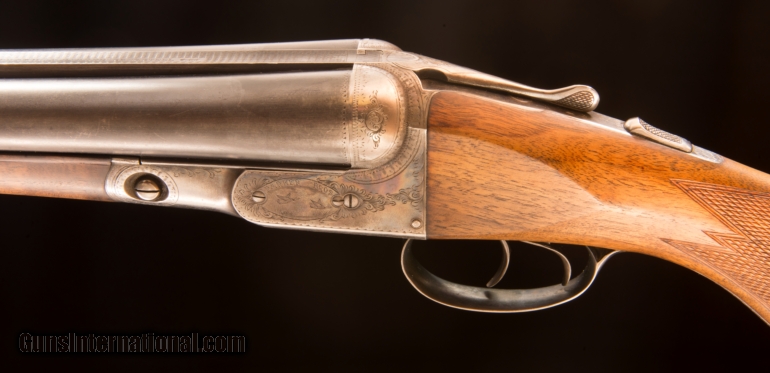 Description: Traces of case color and good screws on the classic. This Parker has really good dimensions, unusually high. The 32" barrels and weight with the full chokes would make this a super sporting clays or live pigeon gun. SOLD Curio/Relic: Yes Manufacturer: Parker GHE 12g. with 32" barrels Serial Number: 210846 Ejectors: Yes Barrels: 32 Barrel Type: Steel Action: boxlock Gauge Info: 12 gauge Stock Comb: 1 1/2 Stock Heel: 2 1/2 Stock Cast: 0 LOP: 14 3/8 Weight: 8 lbs. 2 oz. Choke Left: .037 extra full Choke Right: .037 extra full Proof:Nitro: 2 5/8 Minimum Wall Thickness Left: .032 Minimum Wall Thickness Right: .032 |