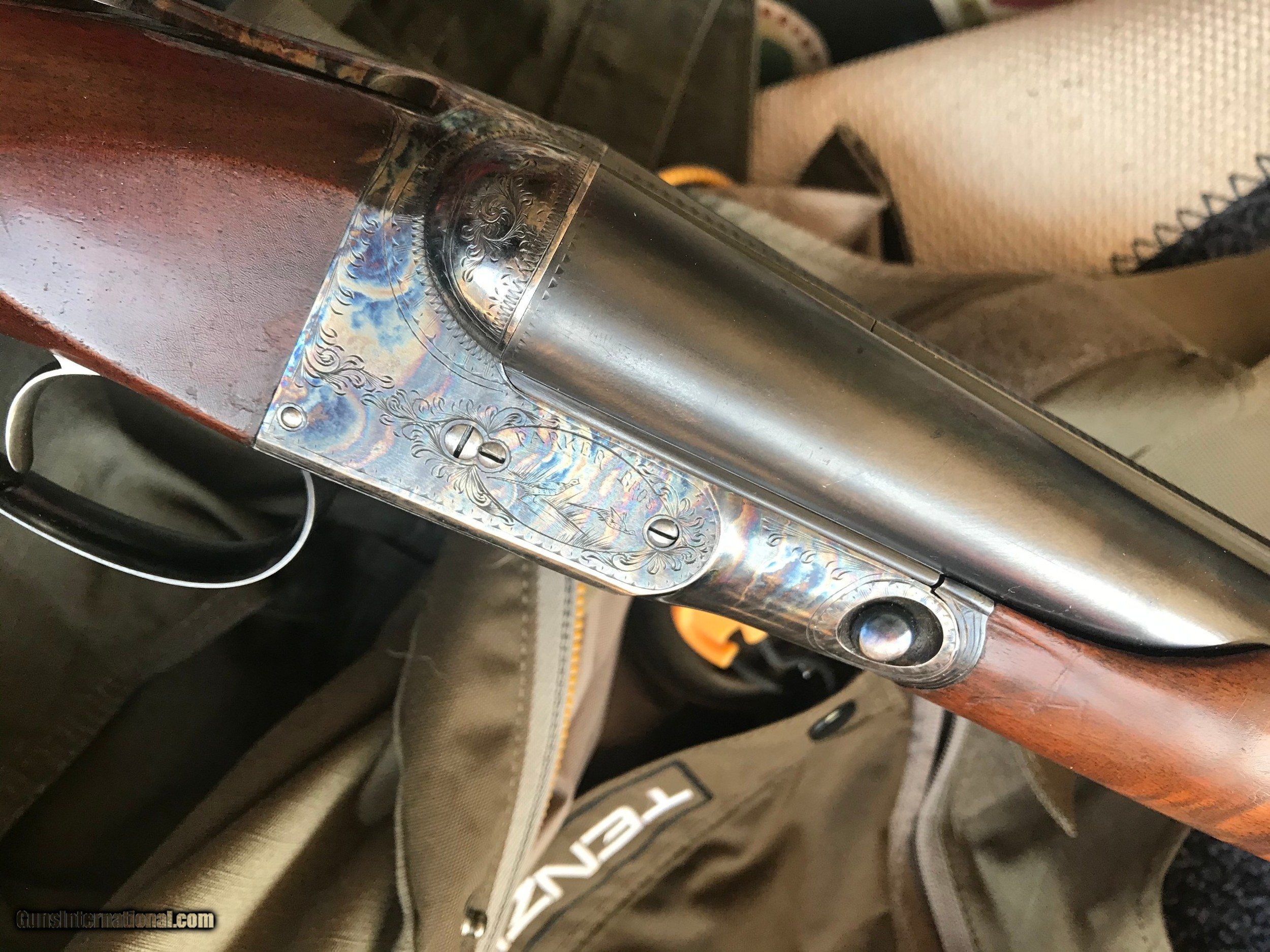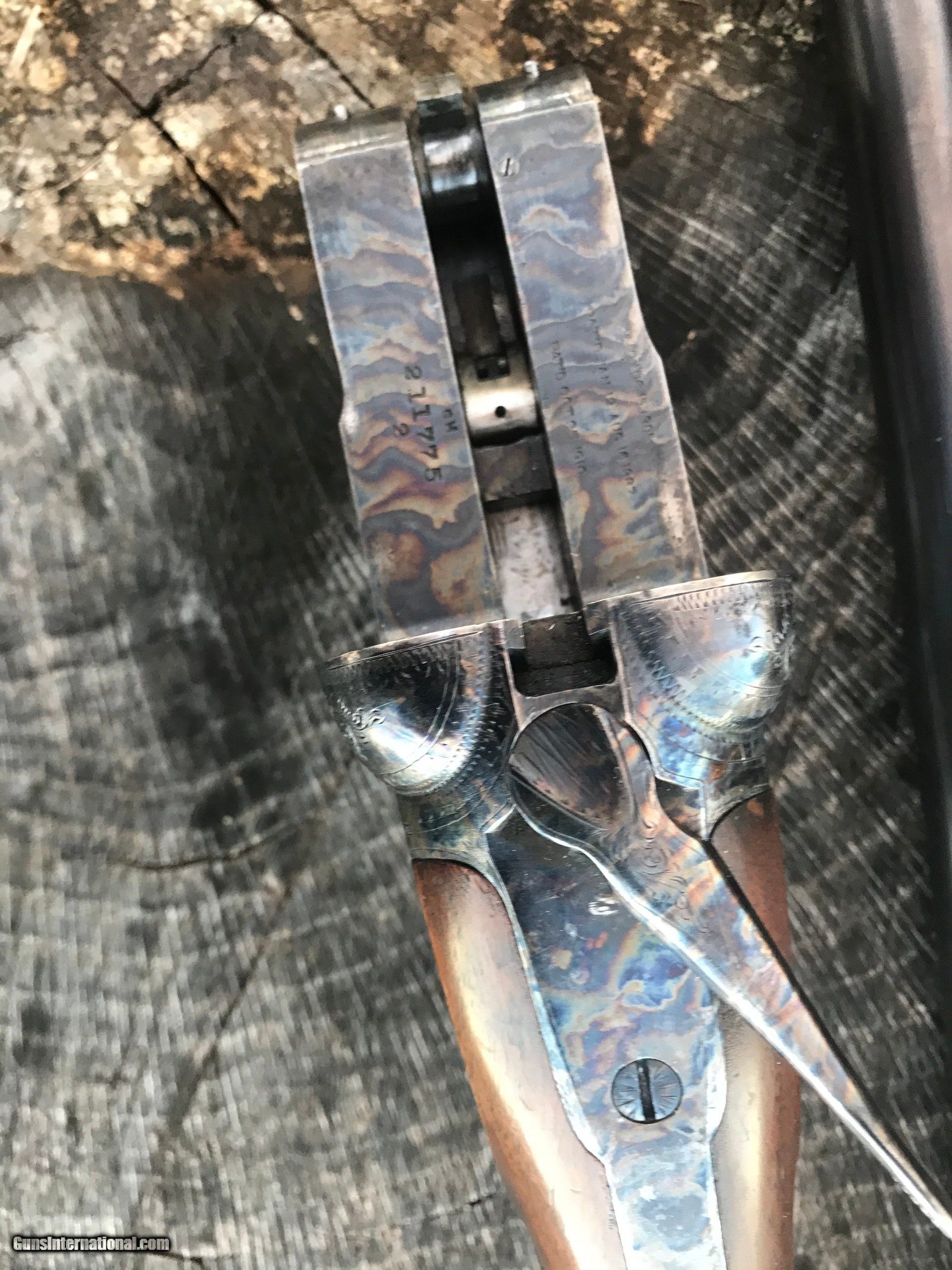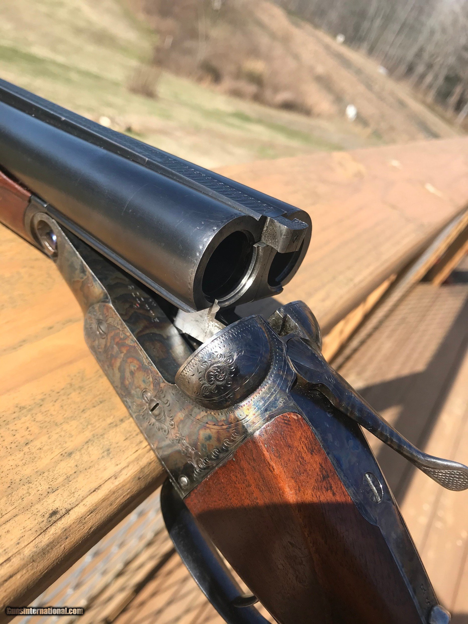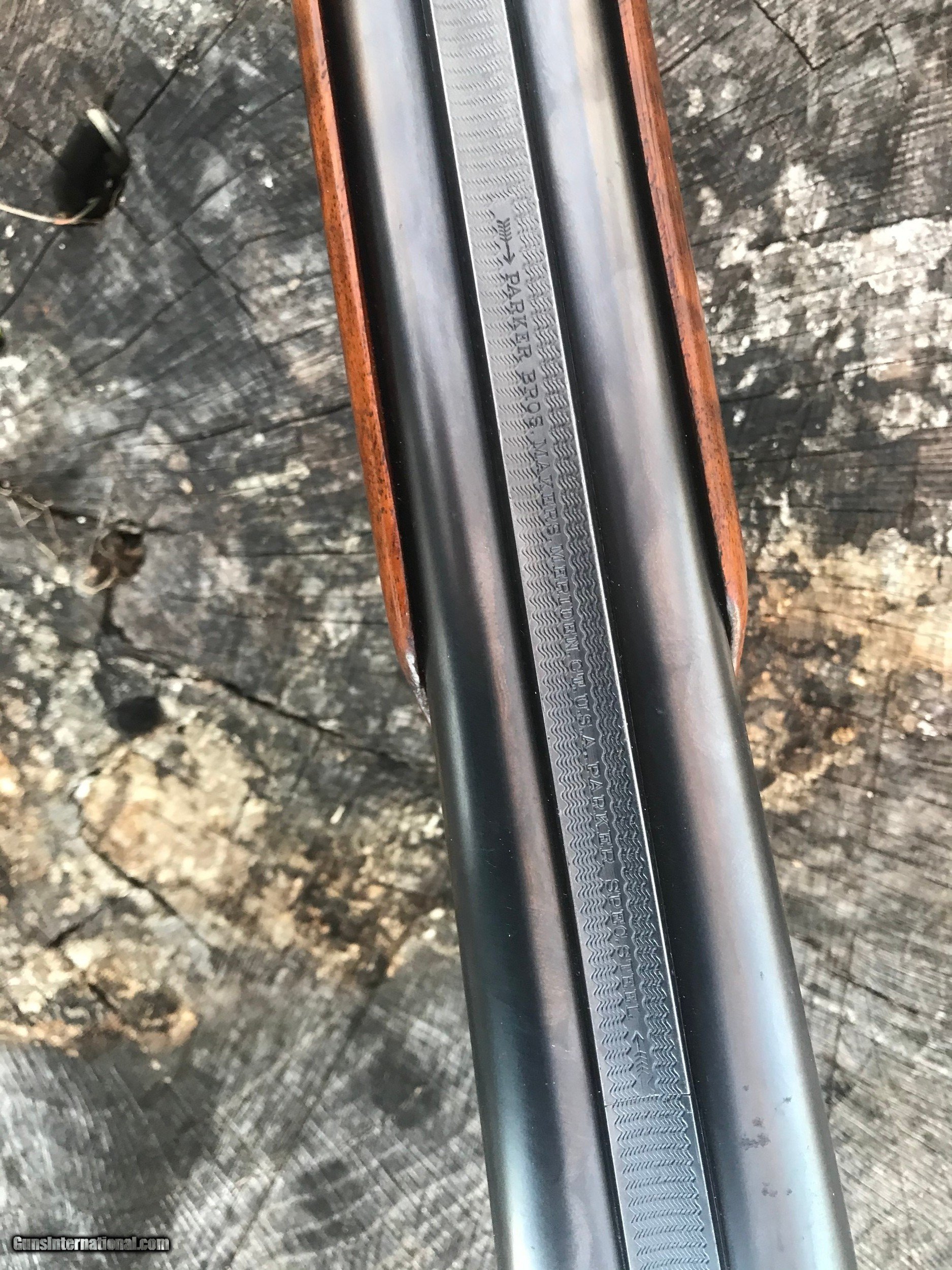Description: Very nice Parker GHE 16 gauge on #1 frame in skeet configuration. 26" Parker Special Steel barrels choked .005/.006 with two bead sights. Bores measure .664 with 2 9/16" chambers. Straight grip English stock with a 13 5/8" LOP over a Silvers Pad. DAC is 1 1/2" and DAH is 2 3/4". Miller SST, BTF, and ejectors. Gun functions flawlessly, colors are brilliant and engraving is crisp. Weight is 7.5 pounds. A wood spacer was removed and a 1 1/2" pad has been added. SOLD Curio/Relic: Yes Manufacturer: Parker Model: GHE Serial Number: 211775 Bore: 16 Chambers: 2 9/16 Ejectors: yes Condition: very good Metal Condition: very good Wood Condition: very good Bore Condition: excellent Barrels: 90% Barrel Type: Parker Special Steel Triggers: Miller Single Trigger Gauge Info: 16 Stock: straight Stock Comb: 1 1/2 Stock Heel: 2 3/4 Stock Cast: neutral Fore End: BTF Butt Pad: Silvers LOP: 13 5/8” Choke Left: .006 Choke Right: .005 Engraving: GH Engraving |