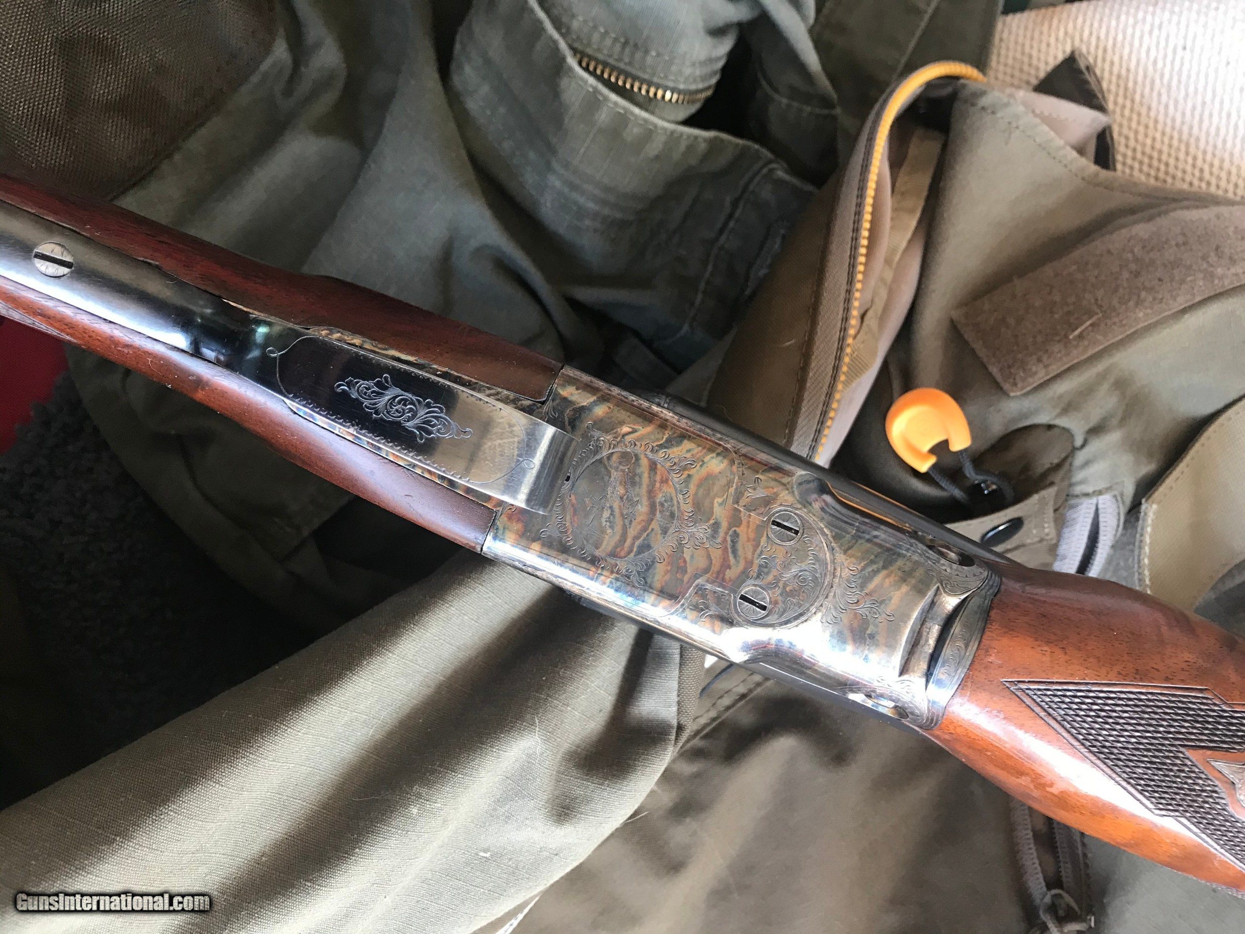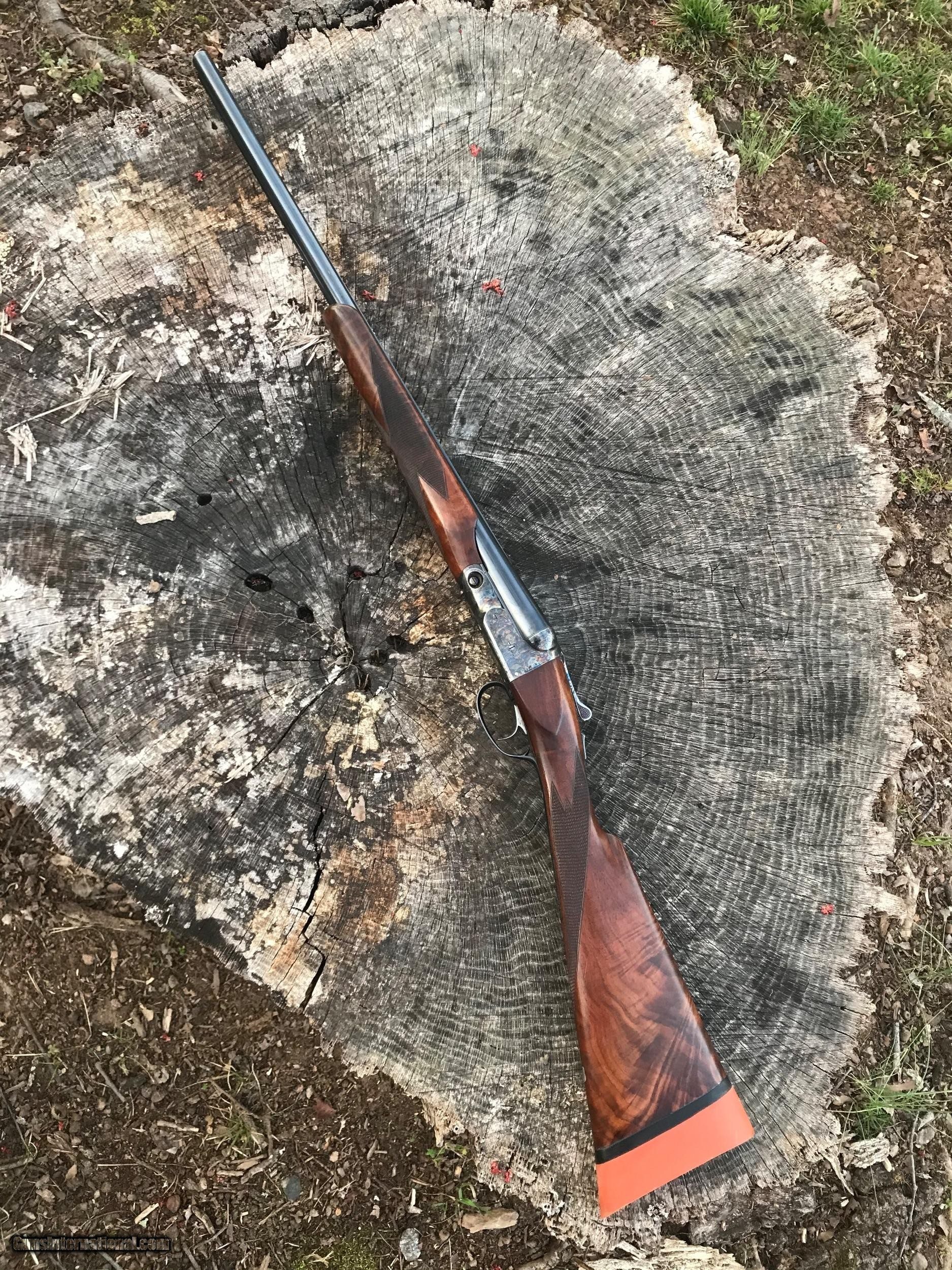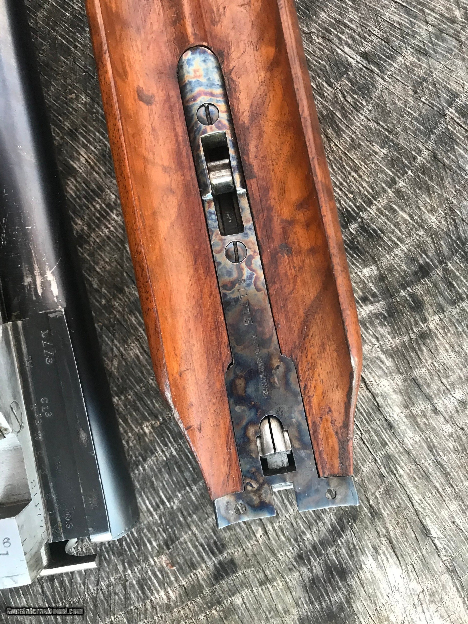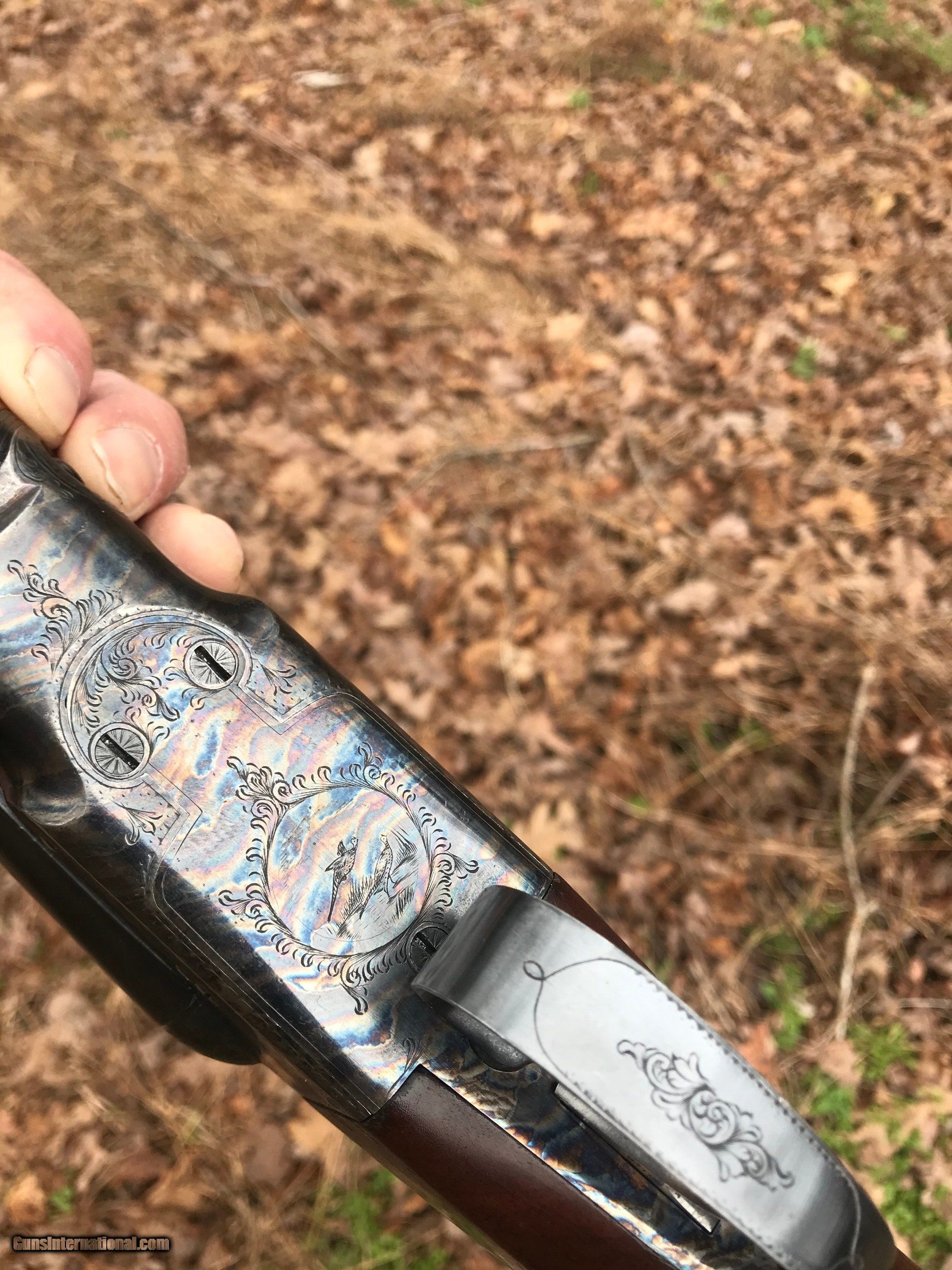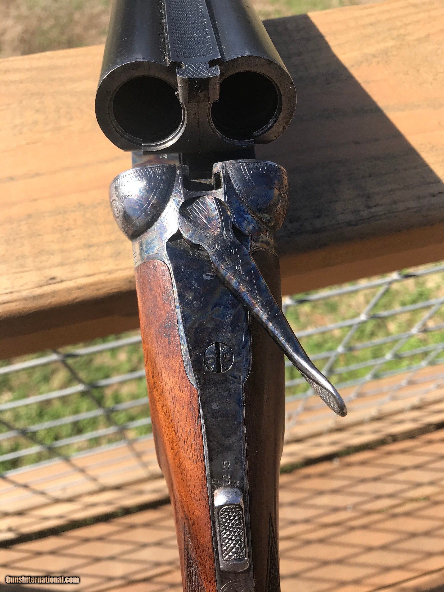 Description: Very nice Parker GHE 16 gauge on #1 frame in skeet configuration. 26" Parker Special Steel barrels choked .005/.006 with two bead sights. Bores measure .664 with 2 9/16" chambers. Straight grip English stock with a 13 5/8" LOP over a Silvers Pad. DAC is 1 1/2" and DAH is 2 3/4". Miller SST, BTF, and ejectors. Gun functions flawlessly, colors are brilliant and engraving is crisp. Weight is 7.5 pounds. A wood spacer was removed and a 1 1/2" pad has been added. SOLD Curio/Relic: Yes Manufacturer: Parker Model: GHE Serial Number: 211775 Bore: 16 Chambers: 2 9/16 Ejectors: yes Condition: very good Metal Condition: very good Wood Condition: very good Bore Condition: excellent Barrels: 90% Barrel Type: Parker Special Steel Triggers: Miller Single Trigger Gauge Info: 16 Stock: straight Stock Comb: 1 1/2 Stock Heel: 2 3/4 Stock Cast: neutral Fore End: BTF Butt Pad: Silvers LOP: 13 5/8” Choke Left: .006 Choke Right: .005 Engraving: GH Engraving |