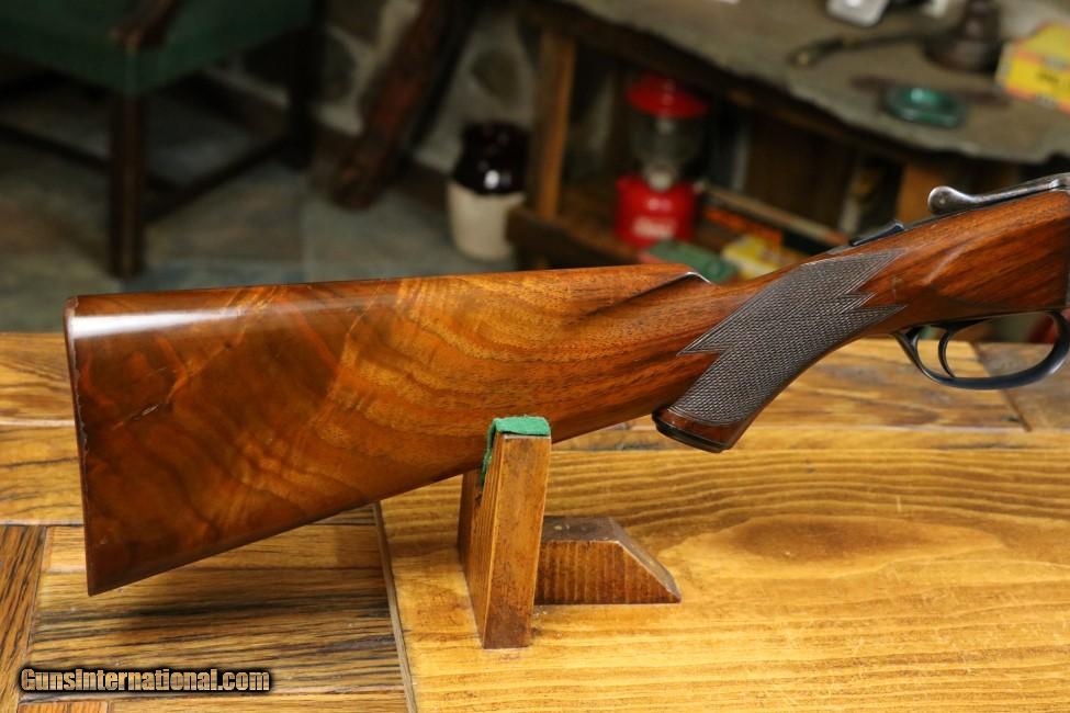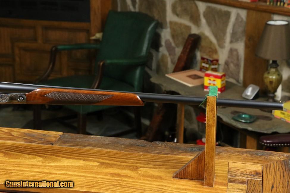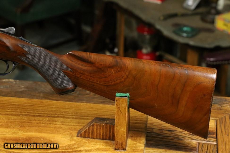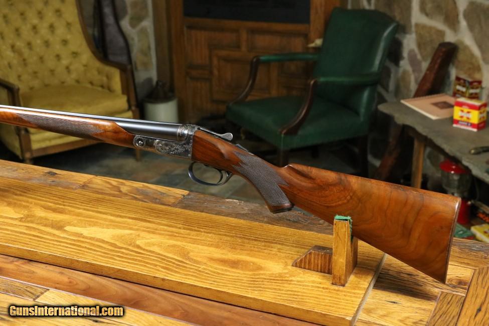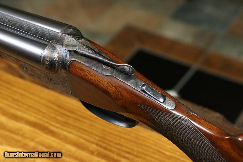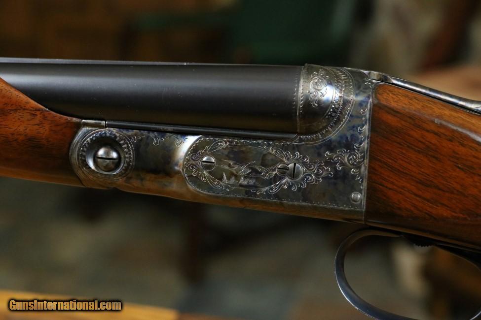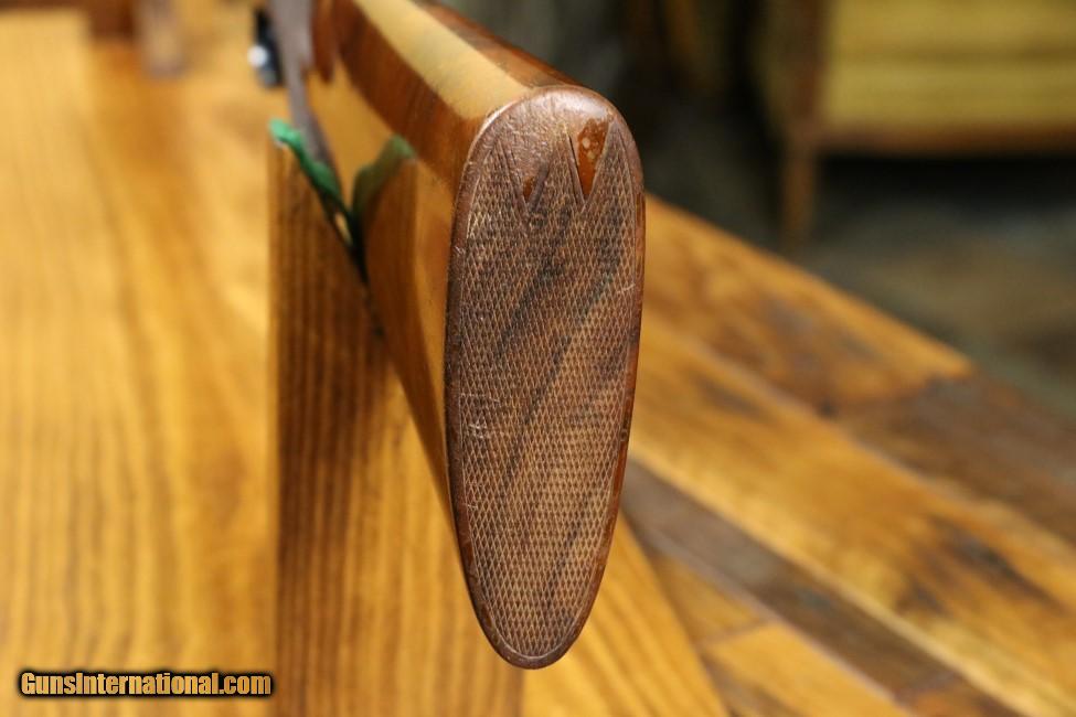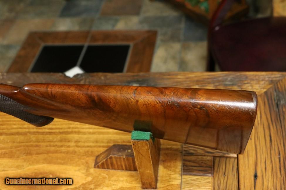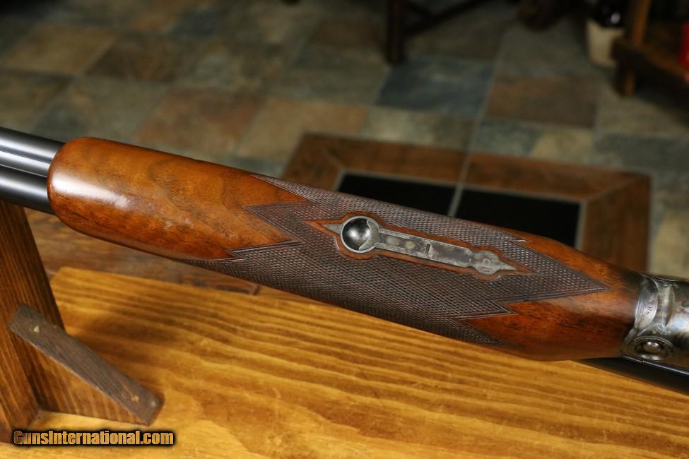 Description: SOLD Offered is Parker GHE 20 Gauge serial number 236485 made circa 1934 very near the transiton of Parker shotgun manufacture from Meriden Connecticut to Illion New York and Remington. It is a 20 Gauge GHE with 26 inch IC and Modified Parker Special Steel Barrels. Also of interest are the factory Parker single trigger, large fore end and skeet style checkered butt. This shotgun was certainly made in the skeet style as 1934 was early in the days of skeet shooting. Condition is excellent to nearly new looking overall. Either a DelGrego Sr early restoration or a Remington factory job. All finishes are nearly 100% and all mechanics as well as the bores are excellent. Very pretty wood and great dimensions; Length of pull is 14 inches, drop at comb is 1 1/2 inches and drop at heel is 2 3/8 inches. Weight is 7 lbs. Chambers are 2 3/4 inches. This is a fantasic optioned up Parker small bore in nearly new condition. Go to ironmenarms . c o m for additionl picture. SOLD Curio/Relic: Yes Manufacturer: Parker Brothers Model: GHE 20 Gauge Serial Number: 236485 |