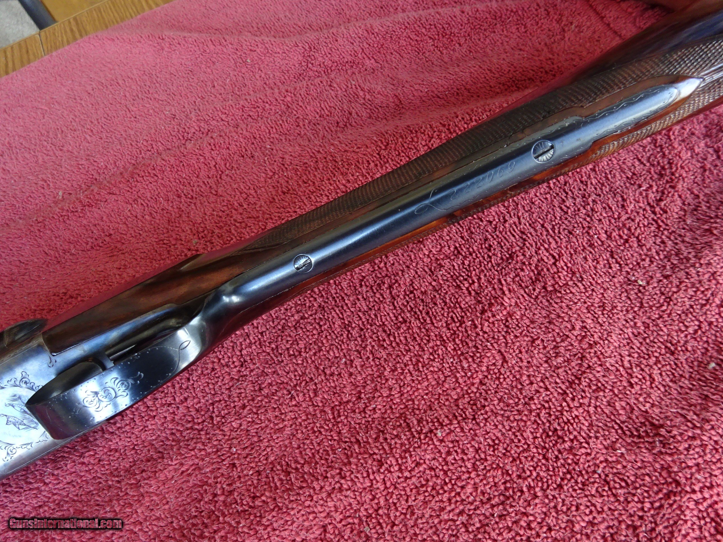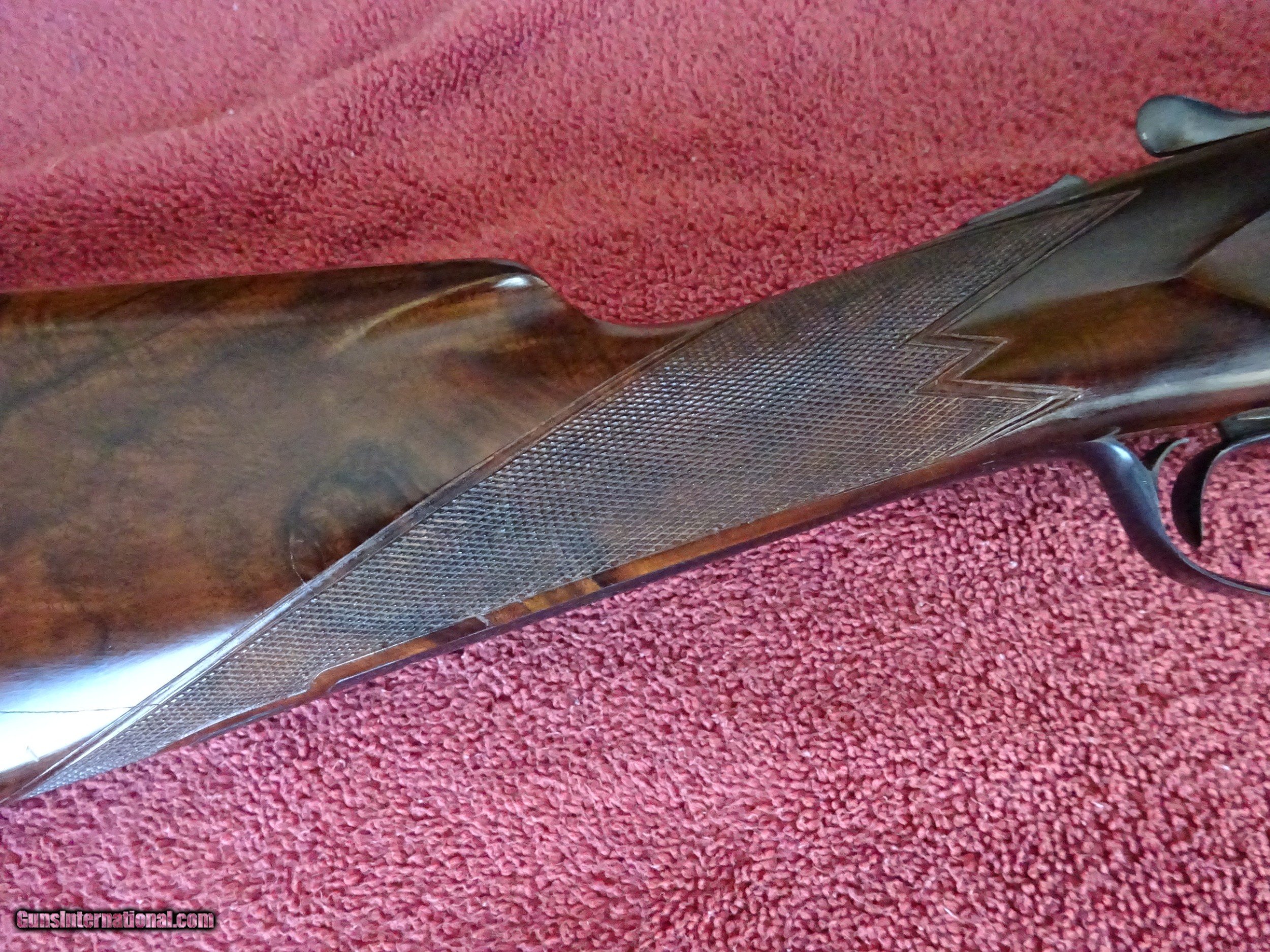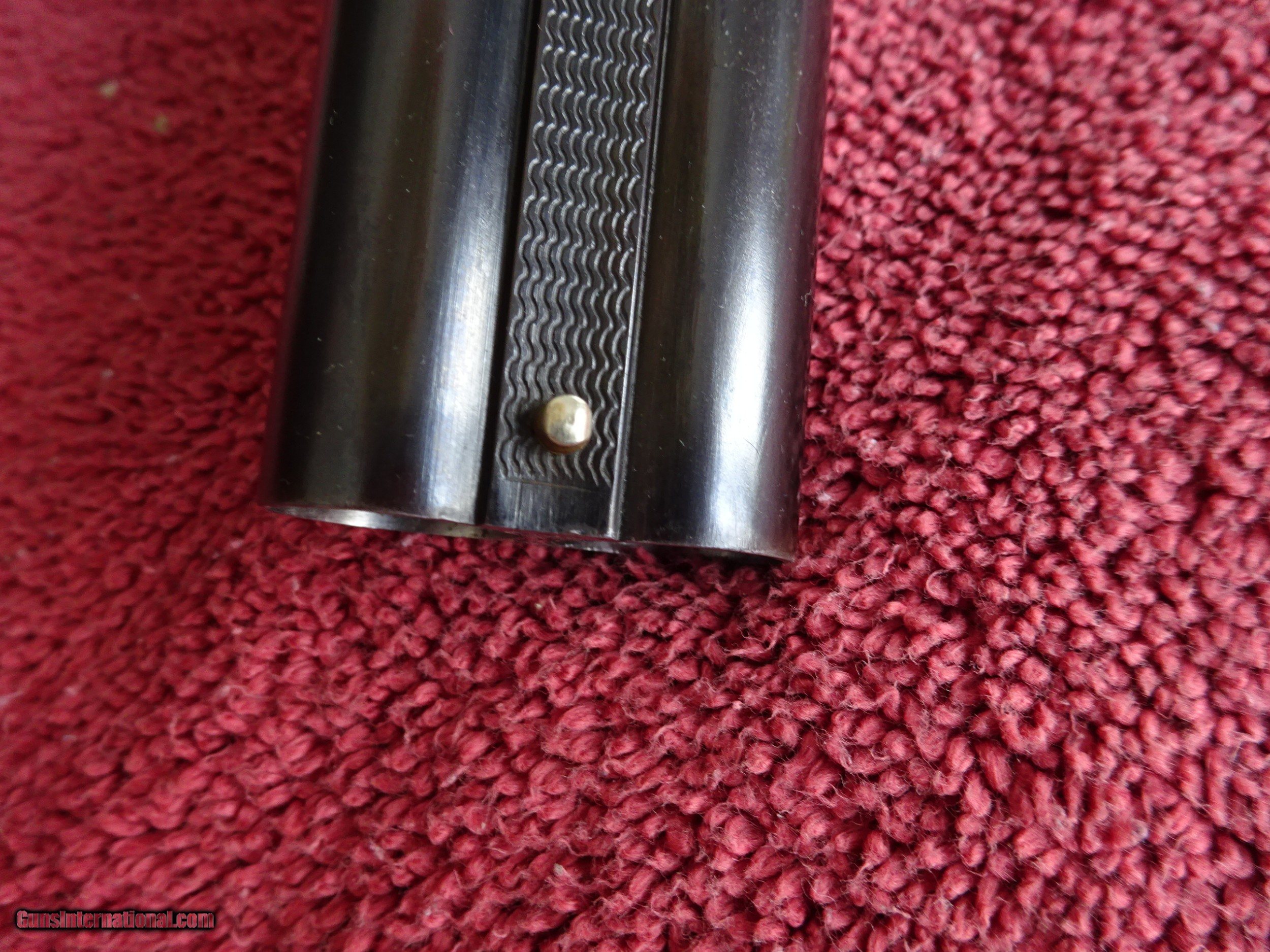 Description: PARKER GHE GRADE 20 GAUGE. 26" PARKER SPEC. STEEL BARRELS, IMCYL. AND IMCYL., MIRROR PERFECT BORES, 2 3/4" CHAMBERS, SINGLE SIGHT, 99% BRIGHT BLUE, BARRELS RING BEAUTIFULLY. NUMBER 0 FRAME, MARKED "OVERLOAD PARKER BROS. PROVED", STANDARD ENGRAVING PATTERN WITH A PAIR OF PHEASANTS ON THE RIGHT SIDE, A PAIR OF DUCKS ON THE LEFT SIDE AND PAIR OF PHEASANTS ON THE FLOOR PLATE PLUS FINE SCROLLWORK AND BORDERS, GORGEOUS BOLD VIVID CASE COLOR, TOP LEVER TO THE RIGHT, TIGHT ON FACE. STRAIGHT GRIP STOCK, SPLINTER FOREARM, SPECTACULAR WOOD WITH GORGEOUS FIGURE AND COLOR, 24 LINES PER INCH CHECKERING WITH THE MULLERED BORDER, TRULY OUTSTANDING WOOD. DIMENSIONS 1 1/2" X 2 1/2" X 14 5/8", ORIGINAL DOGHEAD BUTTPLATE. 6 POUNDS 3 OUNCES. GREAT CLOSE COVER UPLAND GAME GUN MADE IN 1927. $5950.00 + $50.00Insured shipping to an FFL address. See all Pats gun listings on this site! We also have hundreds of pieces of ORIGINAL gun company advertising & memorabilia available for sale on our site SPORTINGCOLLECTIBLES. We have no reprints or reproductions. Email for more information. / SOLD Curio/Relic: Yes |
