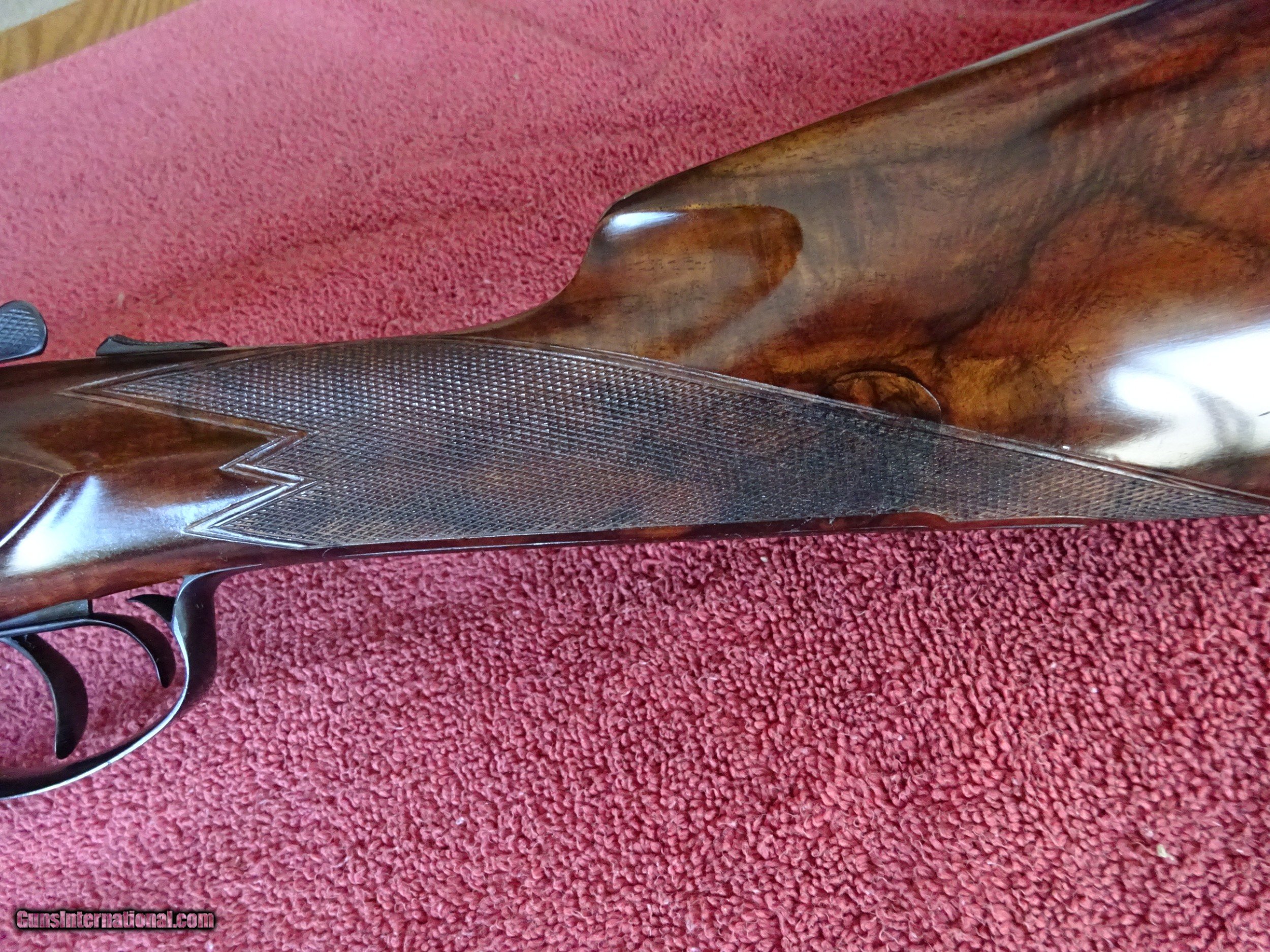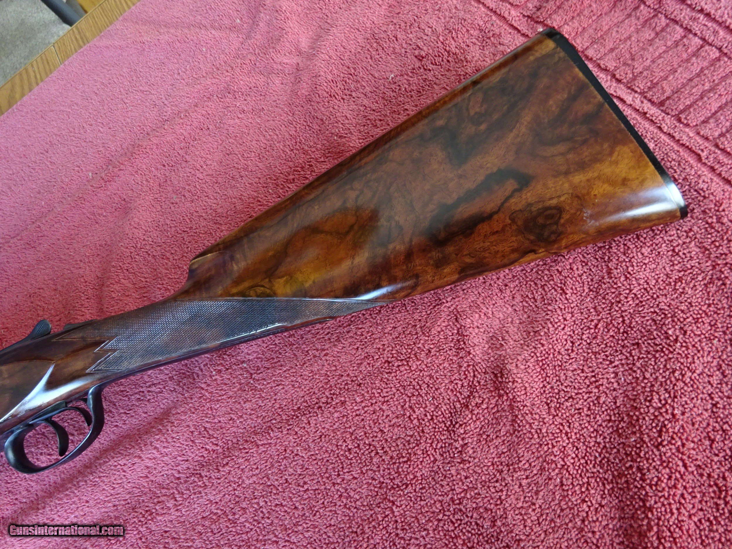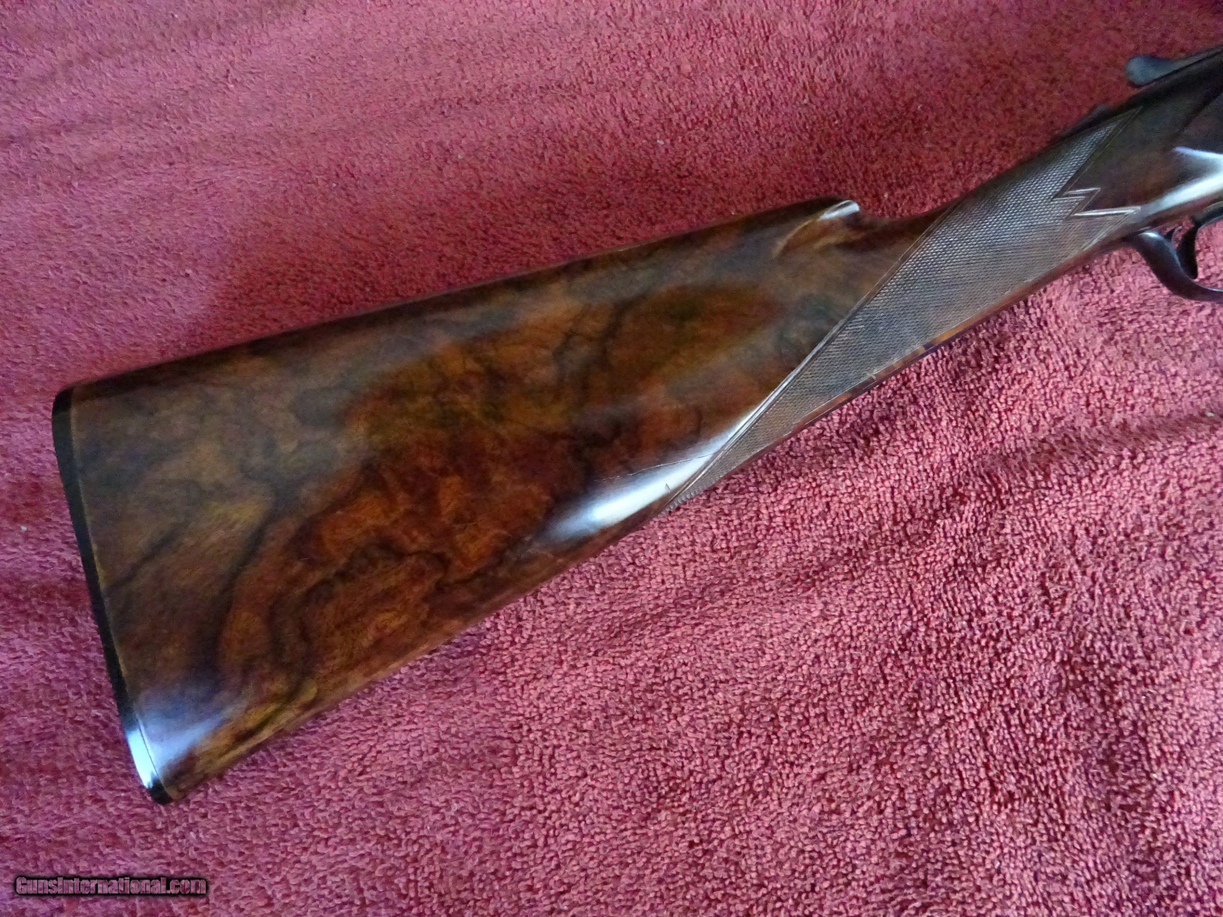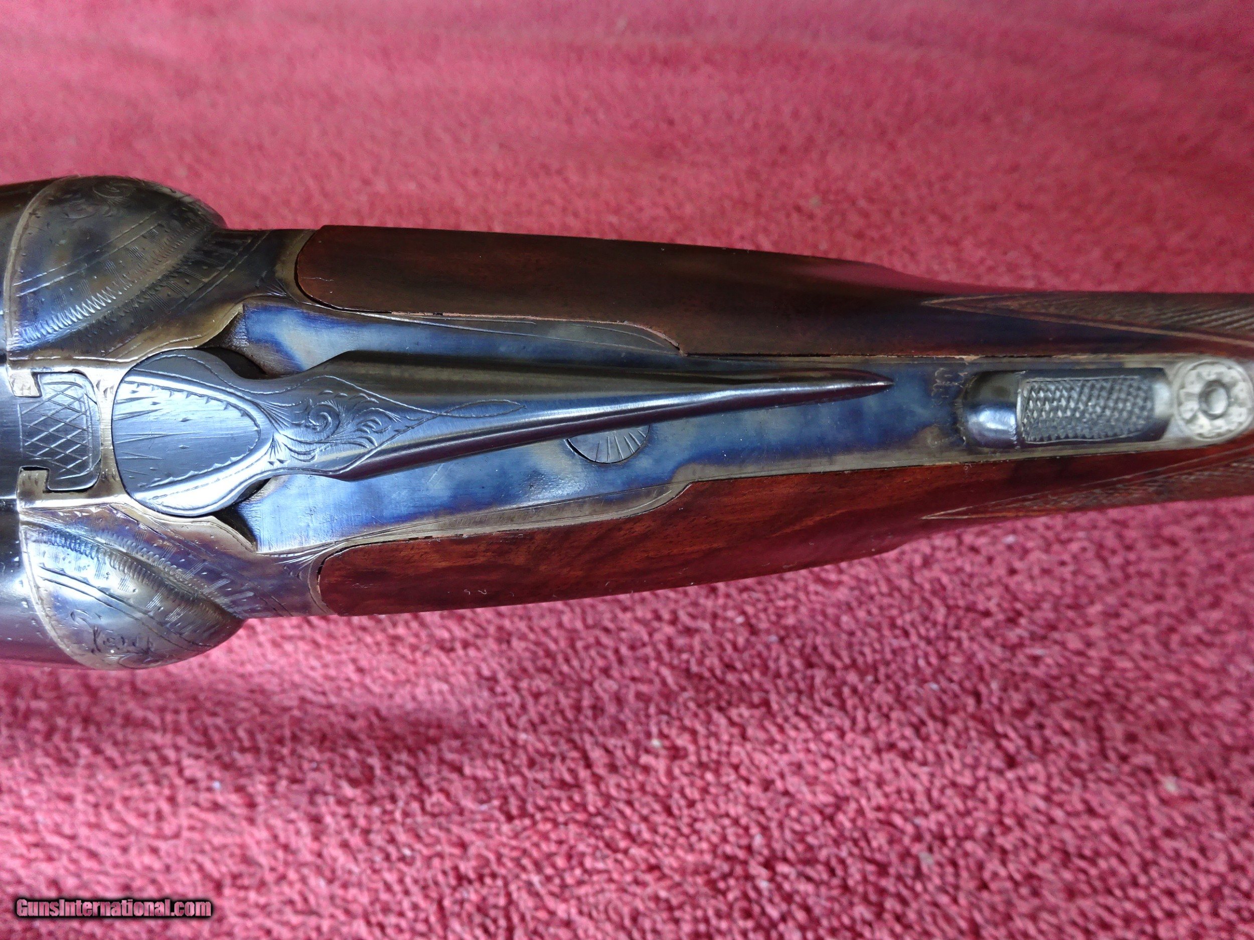 Description: PARKER GHE GRADE 20 GAUGE. 26" PARKER SPEC. STEEL BARRELS, IMCYL. AND IMCYL., MIRROR PERFECT BORES, 2 3/4" CHAMBERS, SINGLE SIGHT, 99% BRIGHT BLUE, BARRELS RING BEAUTIFULLY. NUMBER 0 FRAME, MARKED "OVERLOAD PARKER BROS. PROVED", STANDARD ENGRAVING PATTERN WITH A PAIR OF PHEASANTS ON THE RIGHT SIDE, A PAIR OF DUCKS ON THE LEFT SIDE AND PAIR OF PHEASANTS ON THE FLOOR PLATE PLUS FINE SCROLLWORK AND BORDERS, GORGEOUS BOLD VIVID CASE COLOR, TOP LEVER TO THE RIGHT, TIGHT ON FACE. STRAIGHT GRIP STOCK, SPLINTER FOREARM, SPECTACULAR WOOD WITH GORGEOUS FIGURE AND COLOR, 24 LINES PER INCH CHECKERING WITH THE MULLERED BORDER, TRULY OUTSTANDING WOOD. DIMENSIONS 1 1/2" X 2 1/2" X 14 5/8", ORIGINAL DOGHEAD BUTTPLATE. 6 POUNDS 3 OUNCES. GREAT CLOSE COVER UPLAND GAME GUN MADE IN 1927. $5950.00 + $50.00Insured shipping to an FFL address. See all Pats gun listings on this site! We also have hundreds of pieces of ORIGINAL gun company advertising & memorabilia available for sale on our site SPORTINGCOLLECTIBLES. We have no reprints or reproductions. Email for more information. / SOLD Curio/Relic: Yes |
