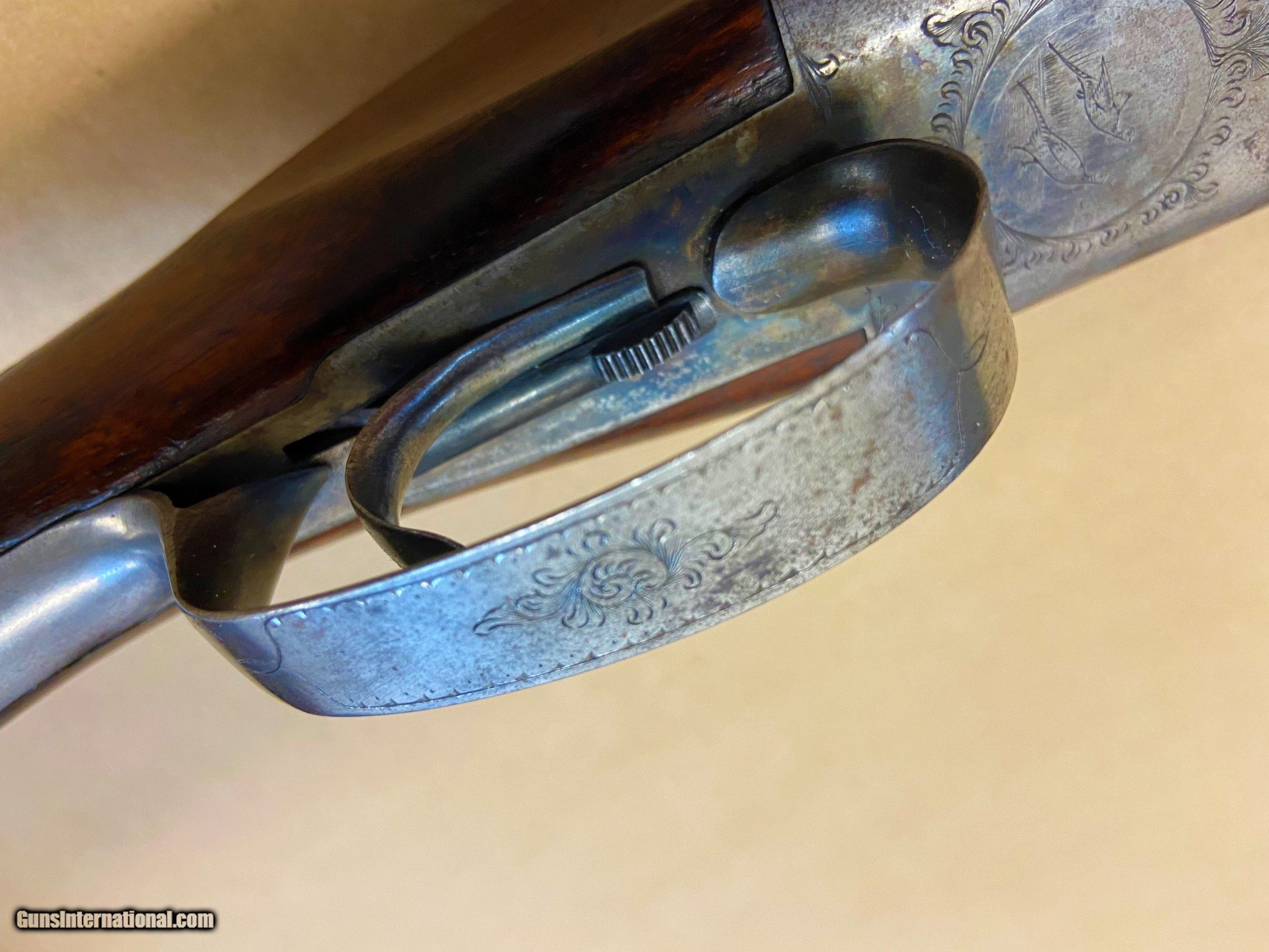 Description: SOLD PENDING FUNDS!!!!!!!!! PARKER BROTHERS GHE 20GA WITH A FACTORY SINGLE TRIGGER -- NICE LITTLE GUN THAT RETAINS ITS ORIGINAL FINISHES -- SUPER NICE SHOOTER WITH GREAT MODERN DIMENSIONS 1 1/2 X 2 1/2 X 14 1/4 TO ITS ORIGINAL DHBP -- EXCELLENT ORIGINAL SCREWS -- PISTOL GRIP CAPPED -- CASE COLORS PRESENT AT ABOUT 30% AND PLEASANTLY VIBRANT -- ORIGINAL BARREL BLUE AT APPROX. 85%++ -- A REAR POSITION SINGLE TRIGGER AT 14 1/4 GIVES THIS GUN A GREAT FEEL -- GUN IS TIGHT AND ON FACE -- WOOD VARNISH IS STRONG ON STOCK WITH SOME DARKENING OF FOREND AT HANDLING POINTS -- VERY NICE ORIGINAL CHECKERING THAT IS CLEAN AND FREE FROM DULLING OR SHECK FILLING -- EXCELLENT ORIGINAL BIRD SCENES AND SCROLL WORK -- DOUBLE BEADS -- GUN IS FACTORY CHOKED AT MOD/FULL -- A PERFECT FALL COMPANION FOR THE PINEY WOODS OR CORN FIELDS -- GUN IS BALANCED AND LIGHT AT 6LBS 6OZ AS A GUN THIS YEAR SHOULD BE -- BUILT DURING THE PINNACLE OF PARKER PRODUCTION -- 14 1/4 1 1/2 X 2 1/2 -- REAR POSITION SINGLE TRIGGER TO FACTORY DHBP 6LBS 6OZ SOLD Shotgun Gauge: 20 Gauge Manufacturer: PARKER Model: GHE Barrel Length: 28 Bore: 20 Chambers: 2 3/4 Ejectors: YES Triggers: SINGLE Stock: PISTOL Stock Comb: 1 1/2 Stock Heel: 2 1/2 Fore End: SPLINTER Butt Pad: PLATE LOP: 14 1/4 Rib: SOLID Weight: 6 LBS 6 OZ Sights: 2 Choke Left: FULL Choke Right: MOD Engraving: YES |