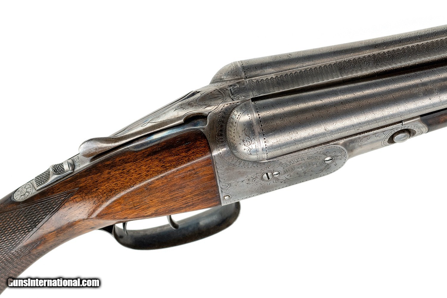 Description: #152576 #1 FRAME 28" SOLID RIB DAMASCUS BARRELS (.008 AND .015) 2 1/2" CHAMBERS DOUBLE TRIGGERS EJECTORS SPLINTER FOREND CAPPED PISTOL GRIP EXCELLENT CONDITION WITH SOME LIGHT HANDLING PARKER LETTER STATES GUN SHIPPED 1911 DOGS HEAD BUTT 6LBS 10 OZ 2 7/8" DAH 1 5/8" DAC 14 1/4" LOP SOLD |