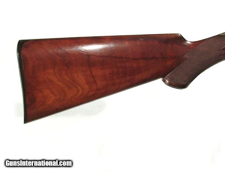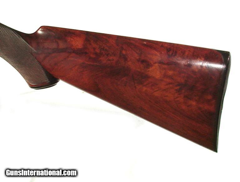 Description: PARKER GHE DOUBLE SHOTGUN .12 gauge, 32" damascus steel barrels choked full & full. Auto ejector's, double triggers, and deluxe checkered wood. LOP: 14 3/8" to a dogs head buttplate. COMB: 1 1/2" HEEL: 2 1/2" Weight: 8lbs 6oz. Retaining 97% plus original barrel finish and pattern. The frame showing 95-97% original case colors. Triggerguard bow and tang 97% plus original bright blue. Super wood and checkering. Bores are mint. SOLD Antique: Yes |