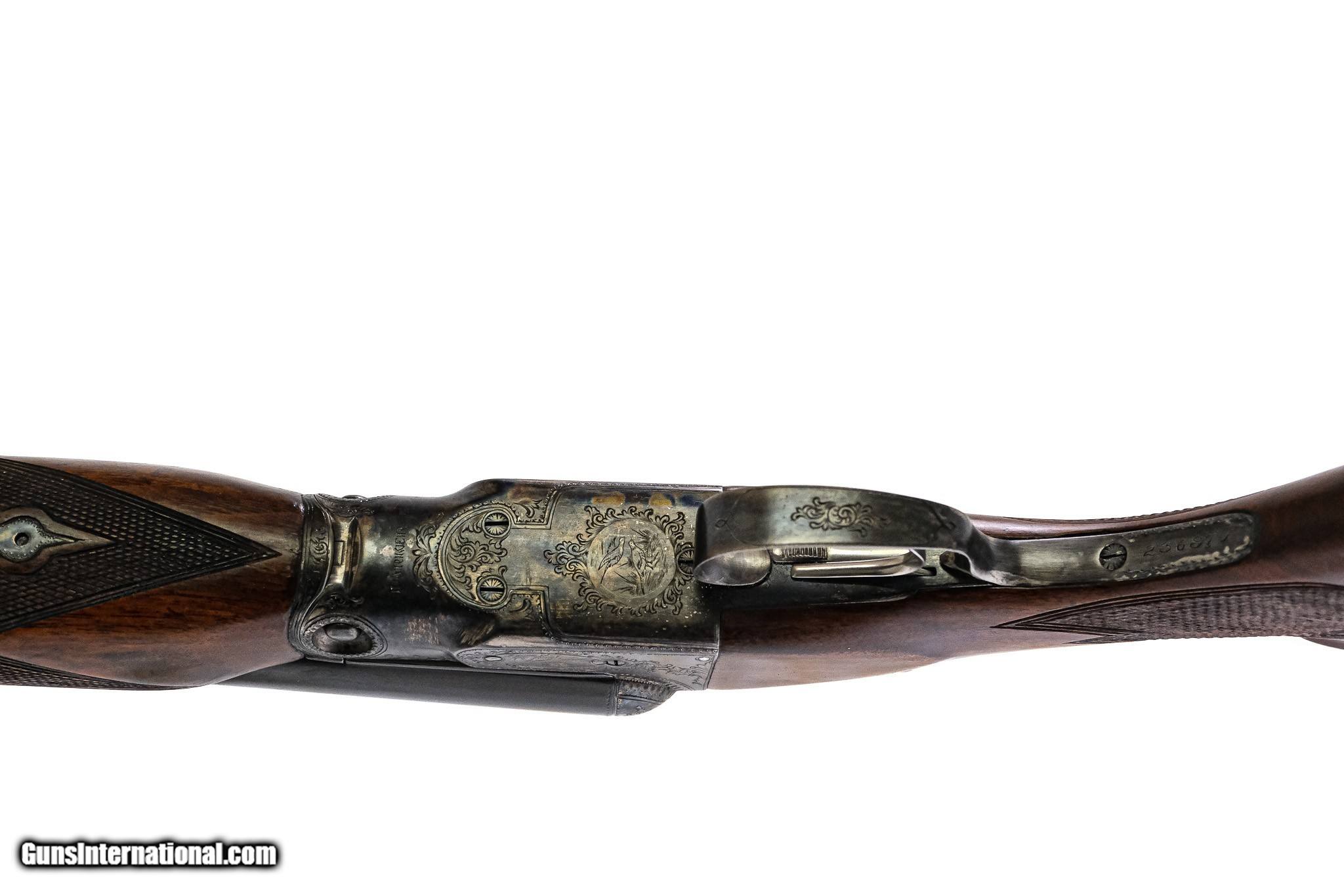 Description: Parker - GHE Grade, SxS, 1 ½ Frame, Skeet Gun, 12ga. 26" Special Steel Barrels Choked IC/M. Special Steel Barrels choked and marked on barrels flat IC/M , 1 ½ Frame, after market front sight, Remington day codes, factory beavertail forend, Parker single selective trigger, matte rib, capped pistol grip, checkered butt, shield in stock, 95% late style case colors, perfect screws, “Parker” written on bottom of frame. 99% barrel blue and wood finish, sharp checkering and engraving, with perfect screws.. rare skeet gun, beautifully figured American Walnut, automatic ejector, non auto safety, outstanding gun, very hard to find configuration. Inv: 70173 6 lbs. 9 oz. 14 3/4" x 1 5/8" x 2 3/4" $10,500.00 SOLD |
