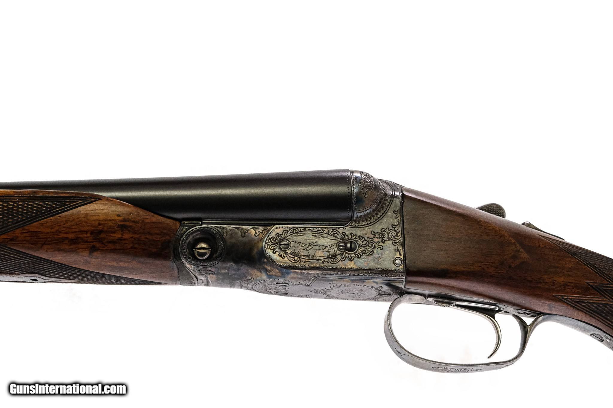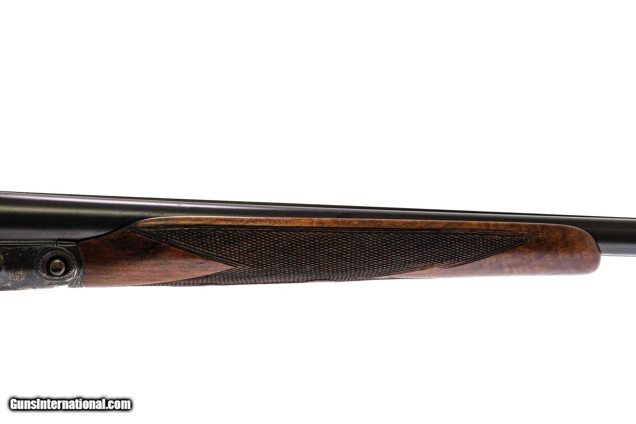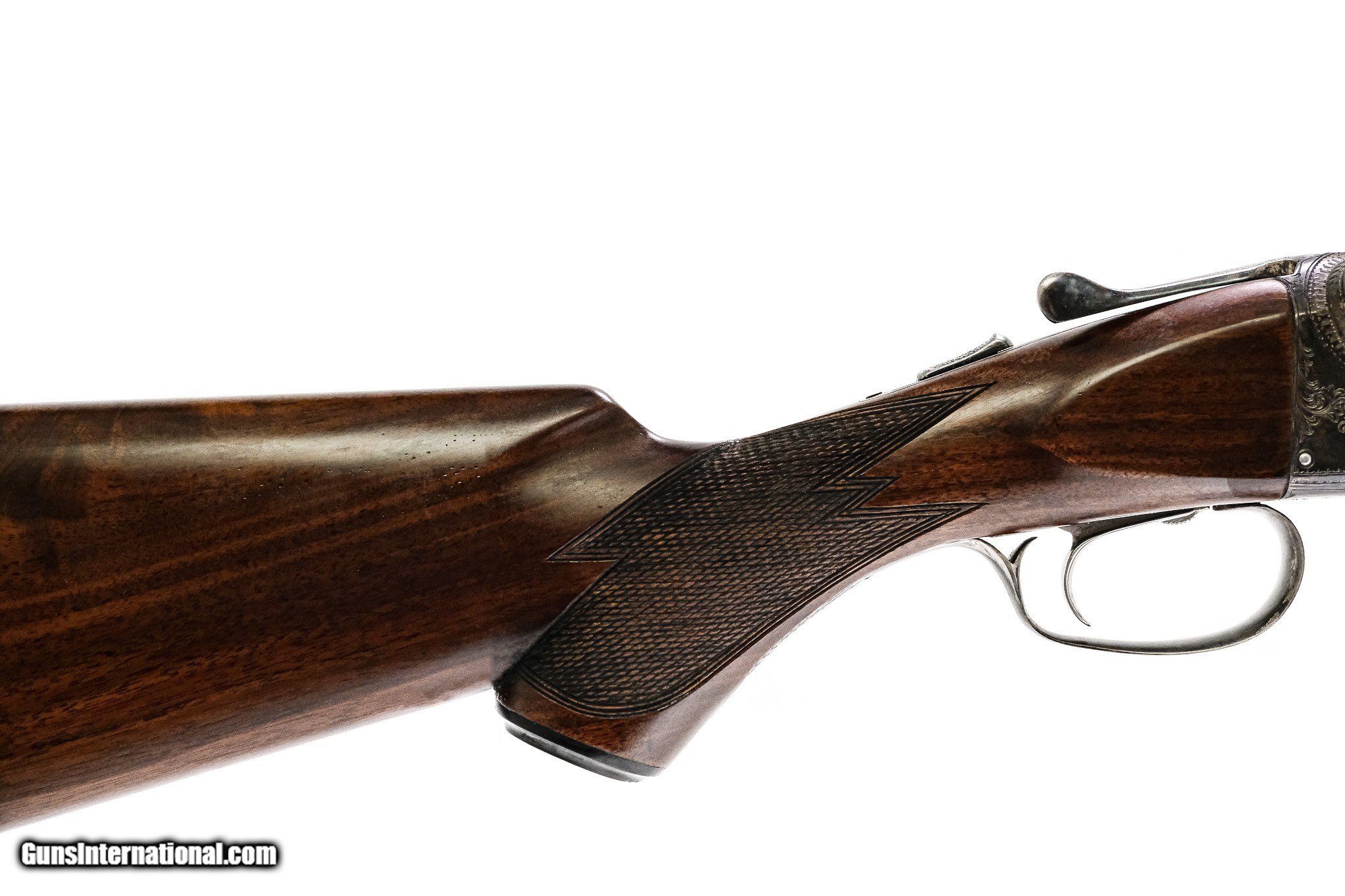 Description: Parker - GHE Grade, SxS, 1 ½ Frame, Skeet Gun, 12ga. 26" Special Steel Barrels Choked IC/M. Special Steel Barrels choked and marked on barrels flat IC/M , 1 ½ Frame, after market front sight, Remington day codes, factory beavertail forend, Parker single selective trigger, matte rib, capped pistol grip, checkered butt, shield in stock, 95% late style case colors, perfect screws, “Parker” written on bottom of frame. 99% barrel blue and wood finish, sharp checkering and engraving, with perfect screws.. rare skeet gun, beautifully figured American Walnut, automatic ejector, non auto safety, outstanding gun, very hard to find configuration. Inv: 70173 6 lbs. 9 oz. 14 3/4" x 1 5/8" x 2 3/4" $10,500.00 SOLD |