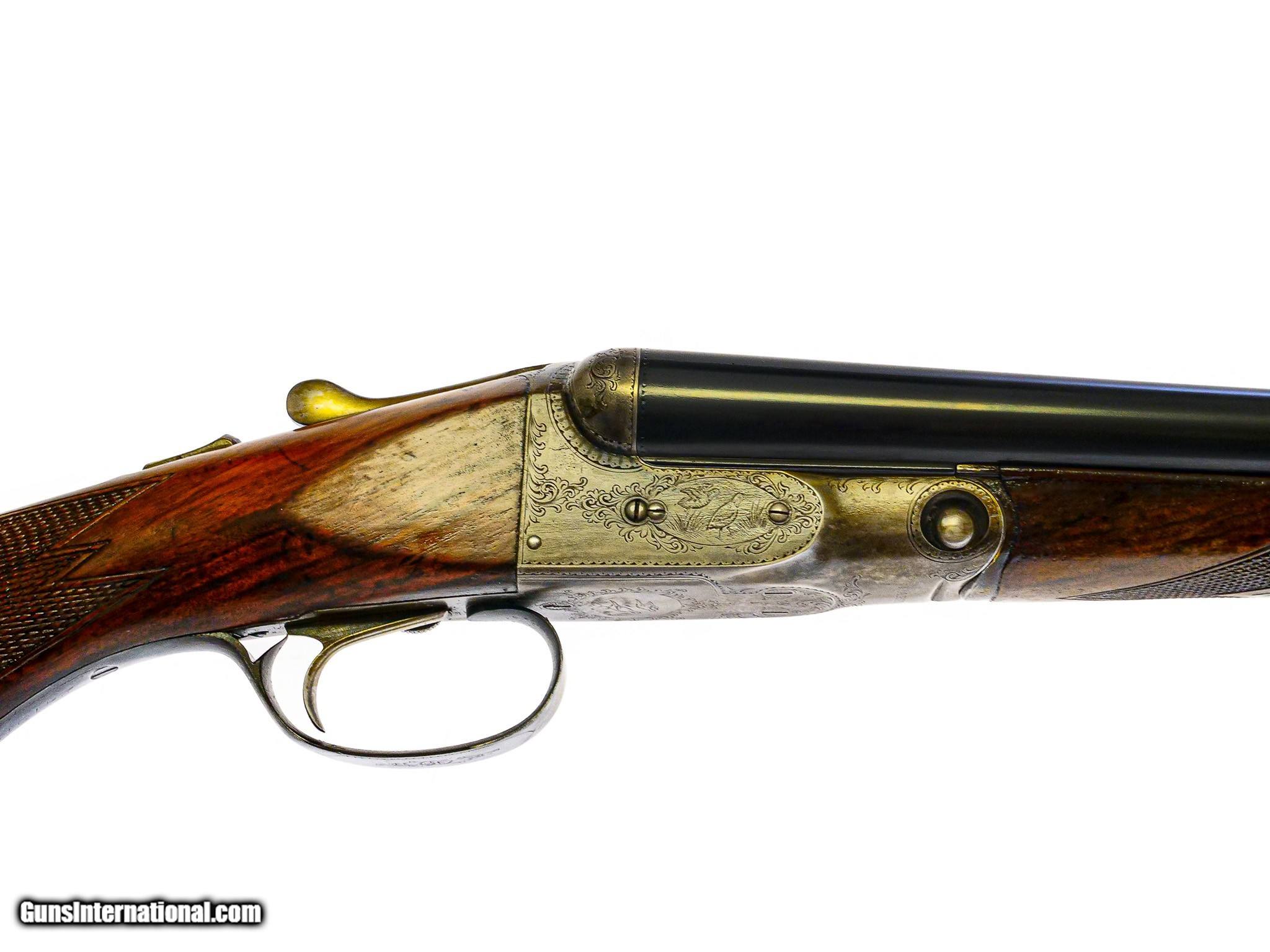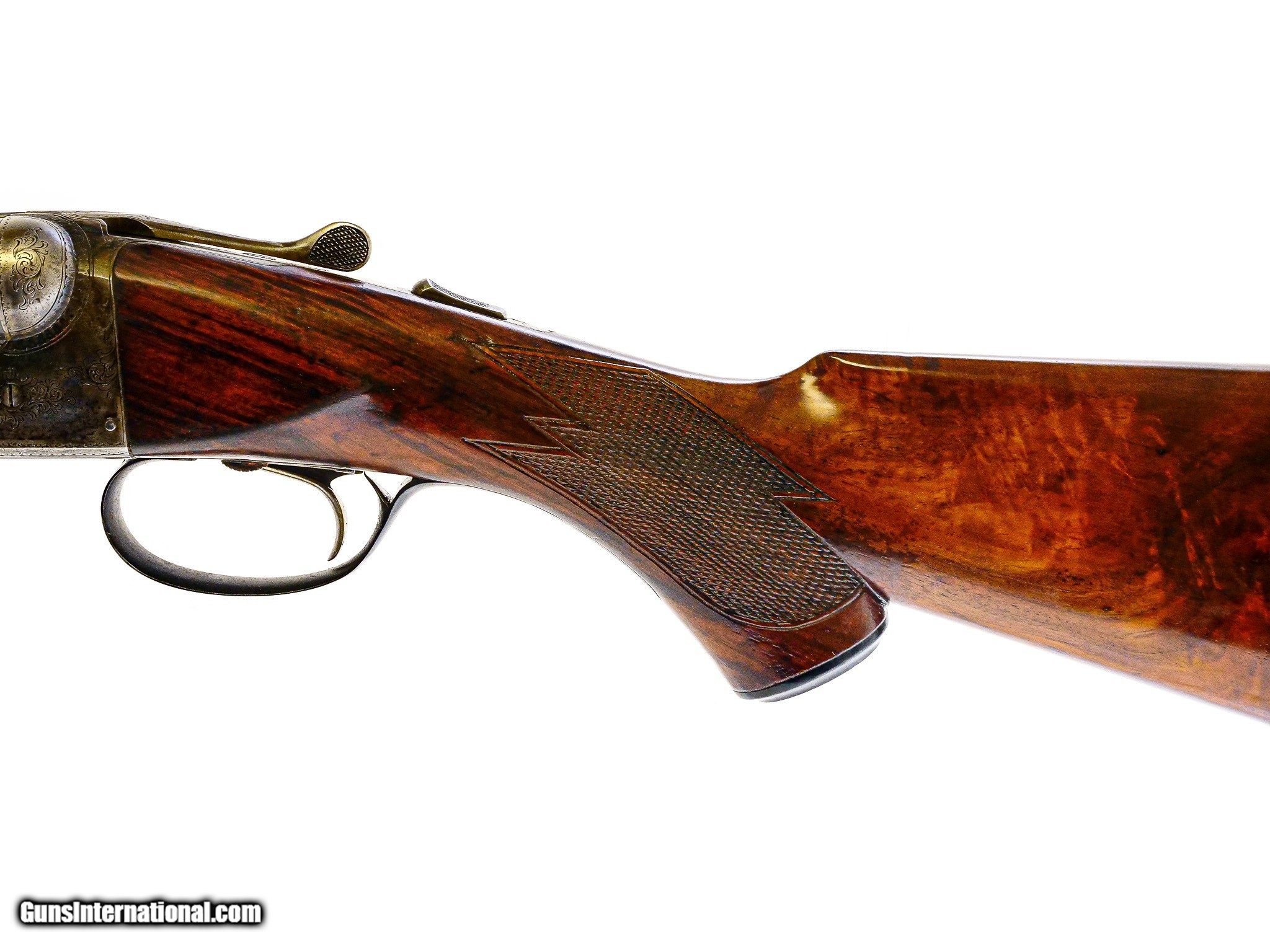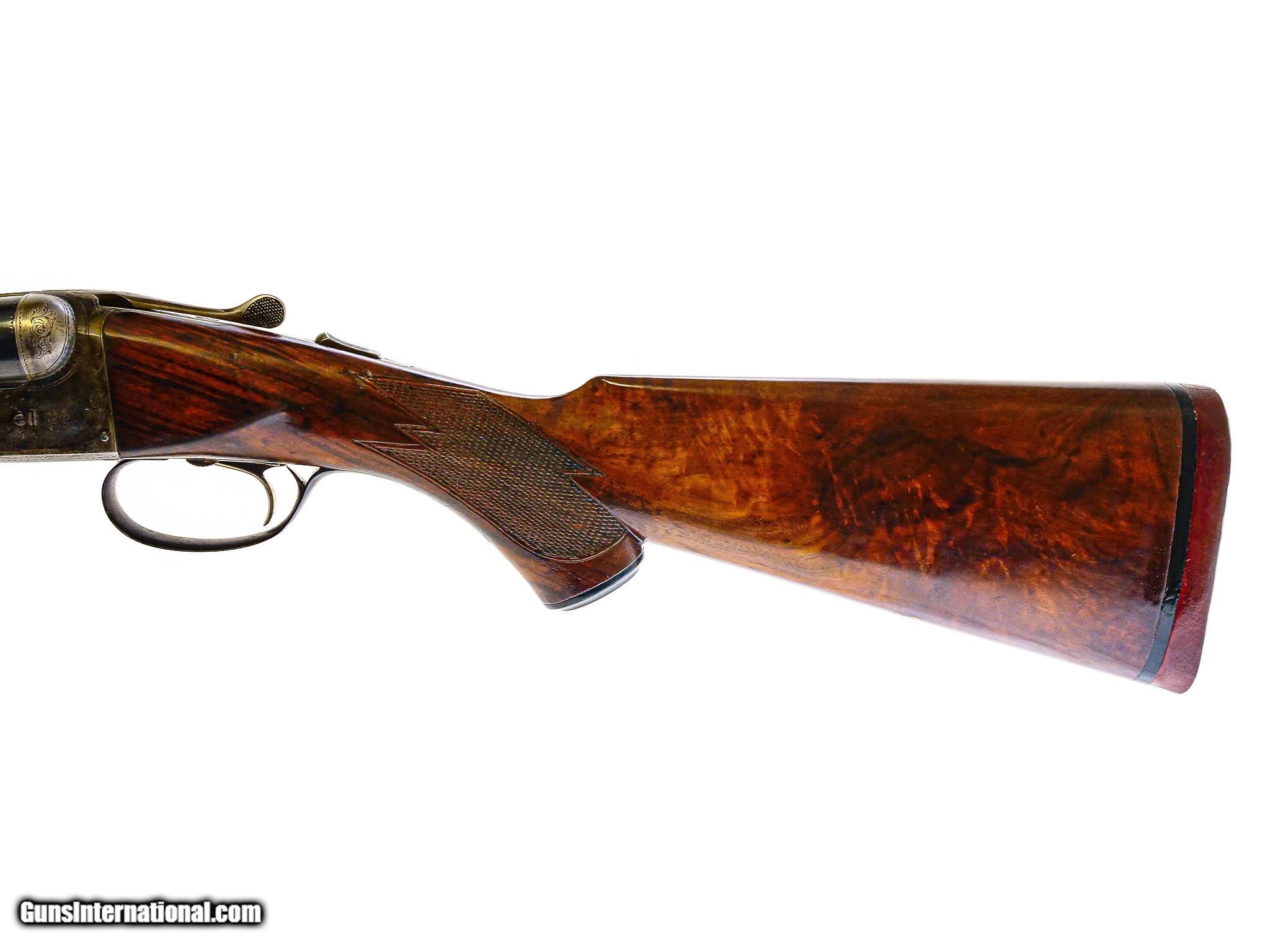 Description: Parker - GHE Grade, SxS, ***RARE ½ Frame***, 12ga. 28" Barrels Choked M/IM. Parker single selective trigger, auto ejector, capped pistol grip, Noshoc pad. Ilion, NY address. 95% wood finish, barrel blue and checkering. Perfect screws, good trigger guard blue and quite a bit of case color, no barrel marking, very tight, and very sought after configuration. Inv: 67854 6 lbs. 11 oz. 14 1/8" x 1 ¾" x 2 ¾" $10,995.00 CALL 860-225-6581 FOR FURTHER INFORMATION ABOUT THIS GUN & THE INSPECTION PERIOD. Connecticut Shotgun / Galazan buying, selling and manufacturing Parker Shotguns. With 47 years of experience, we have handled the largest collections of Parkers shotguns. Every grade, style, and era including the ultra-rare 3 invincible grades that are currently in the NRA Museum. And many of the milestone guns including SN 100,000 Annie Oakley gun and many more too numerous to list, We have bought and sold more A1 specials then any other firm when Remington wanted to reintroduce the gun they came to CT Shotgun/ Galazan We believe we have had and maintained the finest collection of Parker Shotguns that are available for purchase or trade, all of the guns that we sell are inspected and thoroughly cleaned as we maintain the only inventory of replacement parts for these guns, We can assure the guns that we sell for shooting or collecting are simply the best. So, when you are looking for your best collectible Parker Shotgun or your next favorite hunting gun look no further than CT Shotgun/ Galazan. We also maintain many styles, hunting and presentation case with accessories. SOLD |