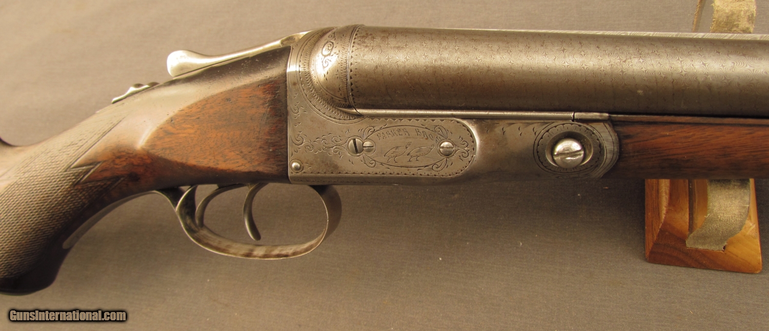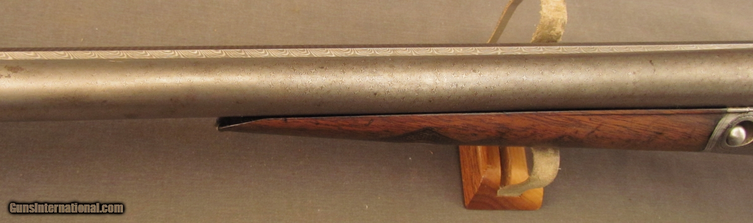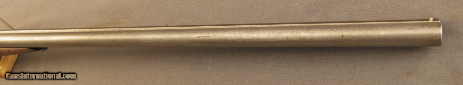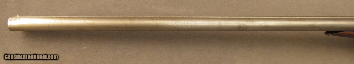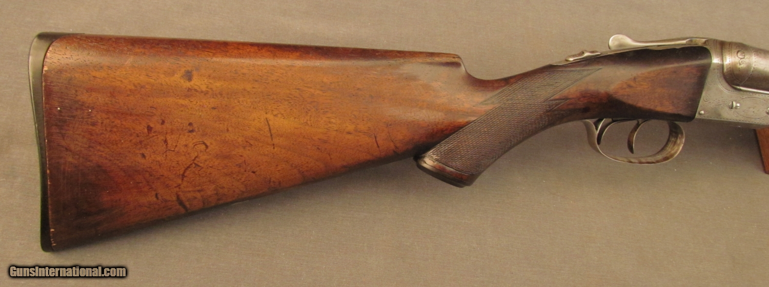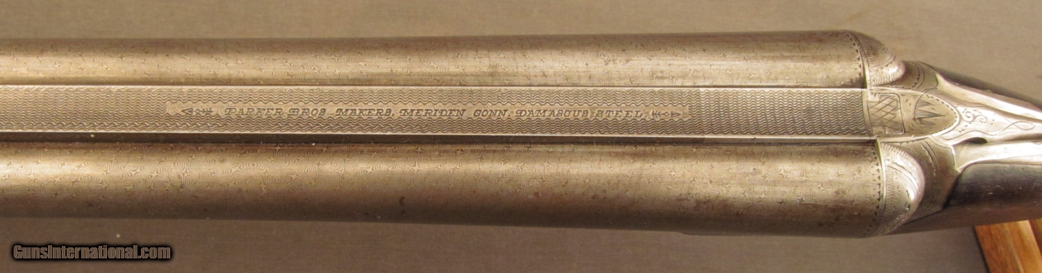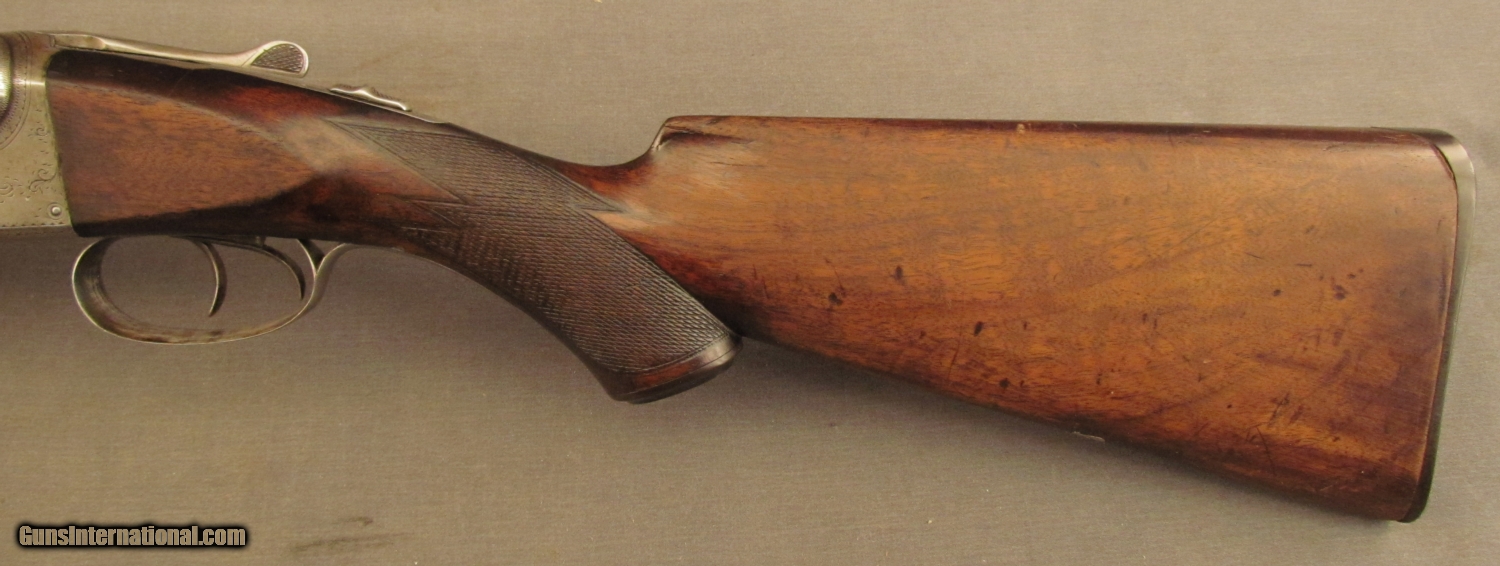 Description: Serial #144217, 12 ga., 30” barrels with fine, bright bores that have small specks of mild freckling in spots along their length. This 1907 gun is built on a G-frame and has an overall dull, pewter gray patina with mild brown freckling starting to appear along the edges. The barrels, which have no dents, are beginning to freckle along their entire length, but the Damascus pattern is still rather sharp. The frame has turned to a mellow gray with light scrollwork engraving and three double gamebird vignettes on the sides of the frame and underside. The walnut capped pistol grip stock and splinter forend have been lightly sanded over time, but remain sound with typical handling marks and surface blemishes from use, and a small chip at the toe on both the wood and the original hard rubber buttplate. The stock has a 14 1/8" length of pull with drops of 1 1/2" and 2 3/4". The gun is mechanically fine and rates good plus-very good overall. FFL or C&R SOLD Manufacturer: Parker Model: Double Serial Number: 144217 Caliber Info: 12ga Gauge Info: 12ga |