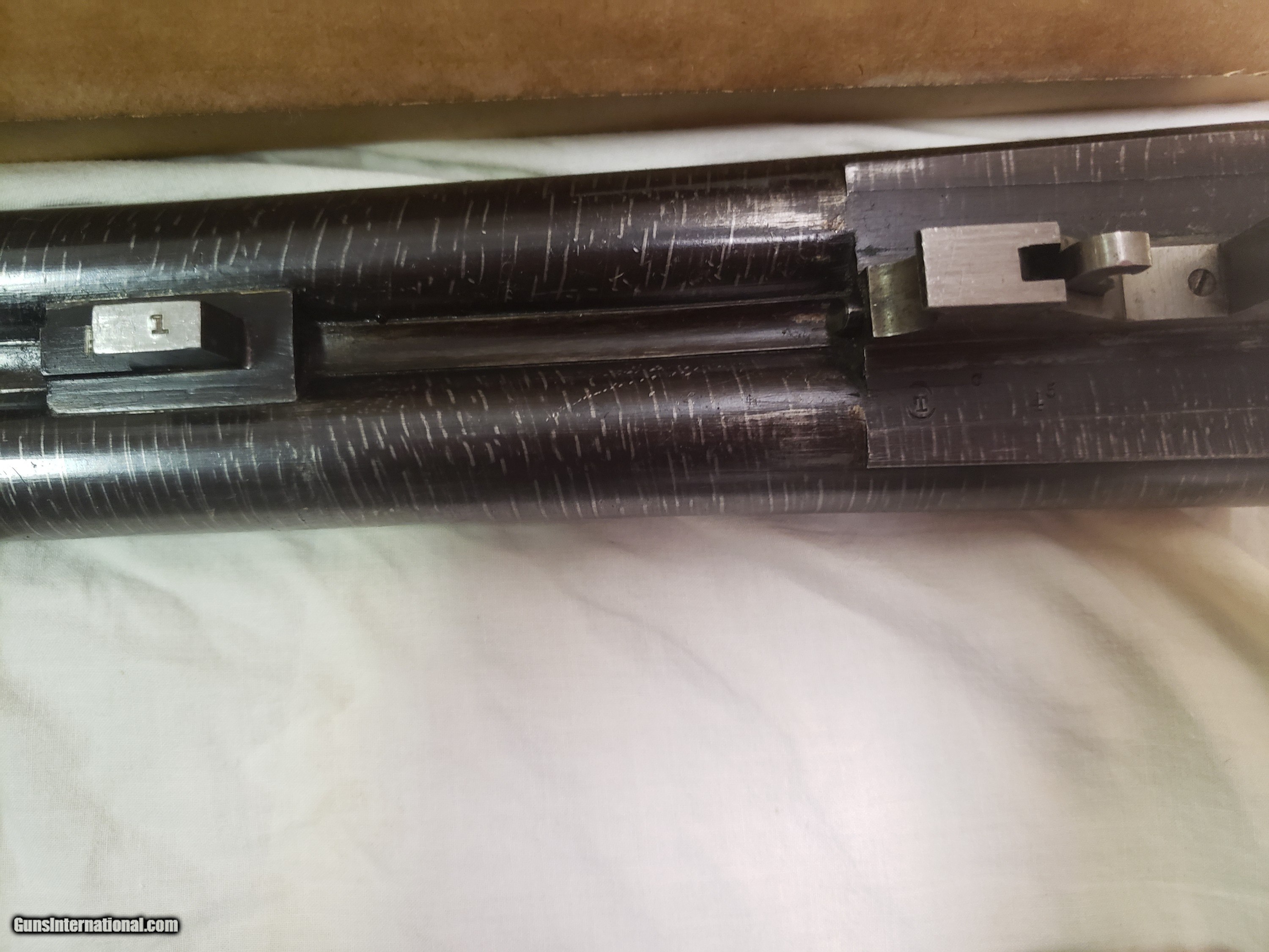 Description: WILL ENTERTAIN OFFERS. PARkER PH grade hammerless 12 ga. with two sets of barrels. one being a vulcan steel 26" VH barrel choked cylinder and full. 2nd barrel Fine twist w/ a length 30". Both have their own forends everthing w/ matching serial # 102660 SOLD Shotgun Gauge: 12 Gauge Manufacturer: Parker Model: PH Serial Number: 102660 Condition: good Metal Condition: good Wood Condition: good Bore Condition: good Manufacture Date: 1901 |