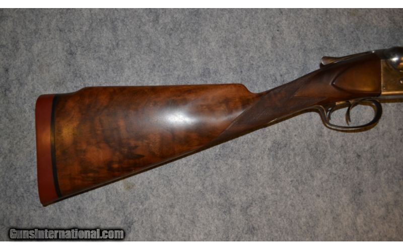 Description: Damascus Barrel SOLD Manufacturer: S/N: 811XX Caliber Info: 12 Gauge Chambers: 2 3/4 Metal Condition: Fair Wood Condition: Fair Bore Condition: Good Barrels: 30" Damascus Triggers: Double Stock: Checkered Walnut Stock Dimensions: 13 7/8" LOP Fore End: Checkered Walnut, Nice Figured Piece Butt Pad: Recoil Pad Weight: 7 lbs. Sights: Center Rib with Front bead Chokes: Full / Full Item Location: Louisville, KY |