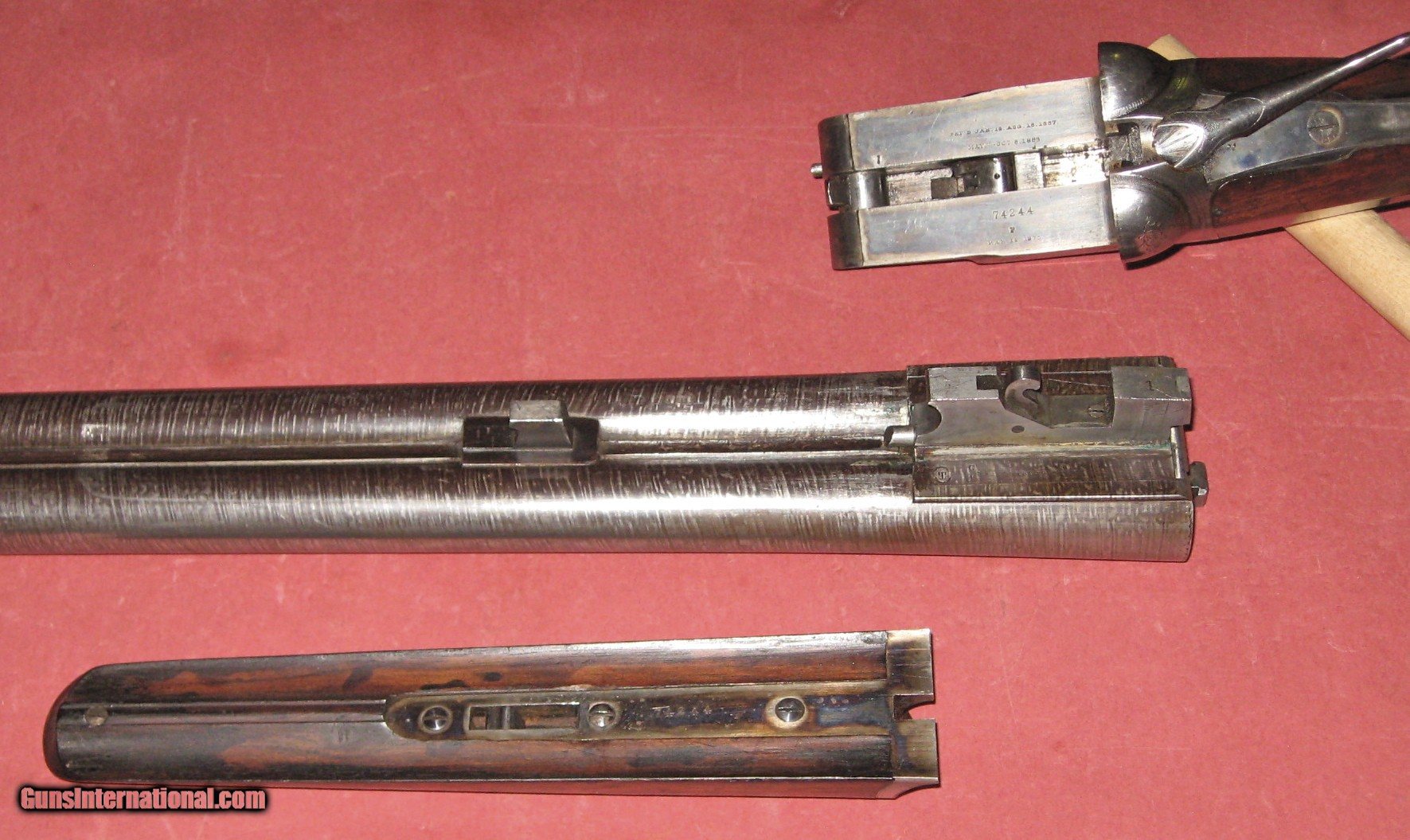 Description: Parker Bros.PH grade 12 gauge built in 1892.This gun has 30" twist steel barrels choked full (.030")and full (.035").The bores are mint and free of any rust,dents,or pits.The minimum wall thickness is .035" at the muzzle,so the gun should be safe to shoot with reasonable loads.The gun is in excellent all original condition.It retains 50% of the original case ccolors,98% of the damascus pattern,and 98% of the original wood finish.The gun is built on a #1 frame and weighs 7-8.The chambers are still the original 25/8".This gun would make a great dove or pheasant gun or a fine vintager clays buster.It is totally original and unaltered.Classified as an antique so it can be shipped direct. SOLD Antique: Yes Manufacturer: Parker Model: PH Serial Number: 74244 Chambers: 25/8 Ejectors: extractors Metal Condition: excellent Wood Condition: excellent Bore Condition: mint Barrel Type: Parker Twist Steel Action: double barrel Triggers: Double Stock Dimensions: 141/8"x2"x3 Butt Pad: facotry buttplate Weight: 7-8 Manufacture Date: 1892 Choke Left: full (.035") Choke Right: full (.030") |