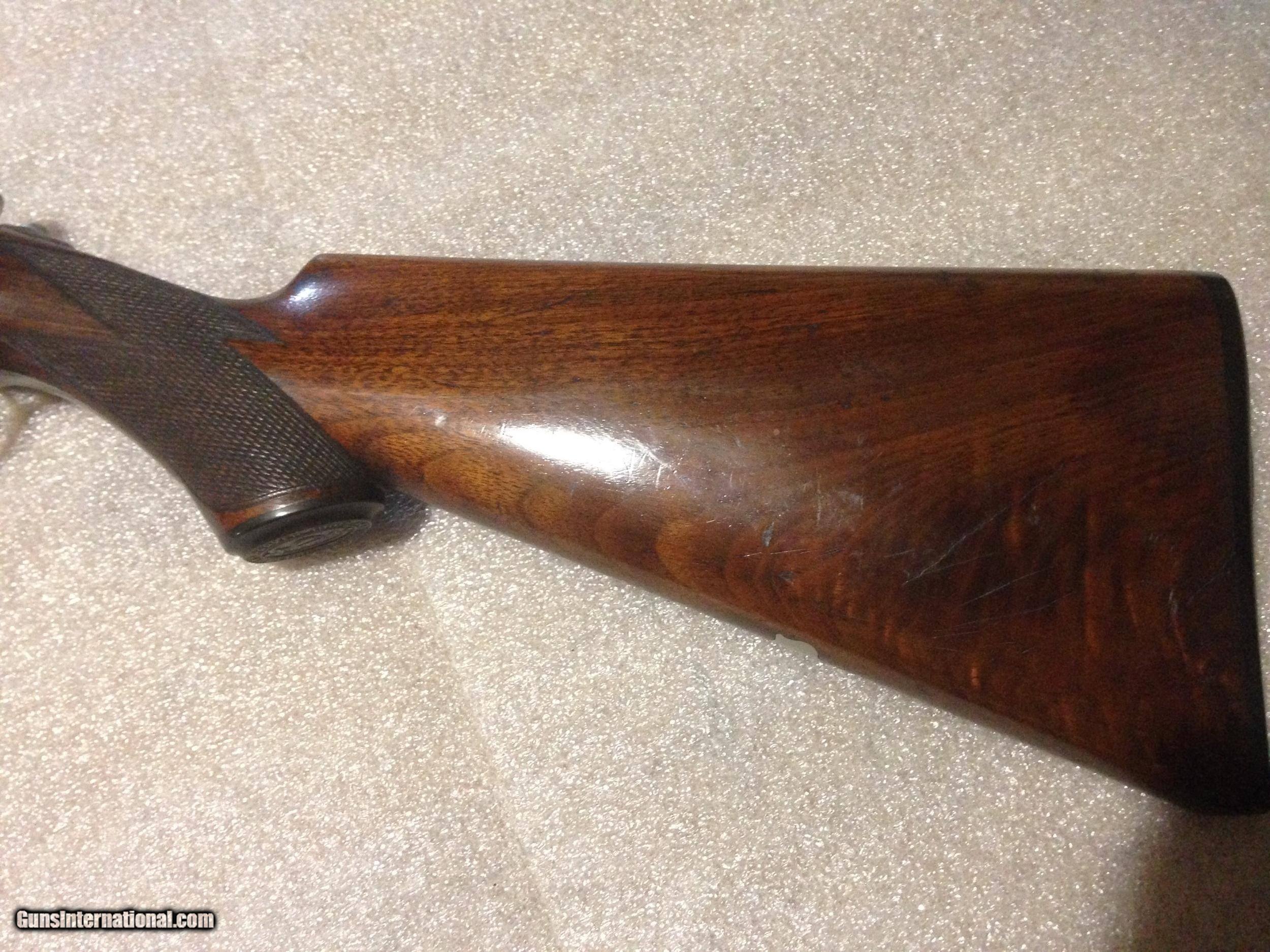 Description: Nice Parker 12ga. 30" twist barrels with nice pattern remaining. Choked mod. and full. 2 9/16" chambers,number 2 frame 7lb. 12oz. DAC 1 3/4" DAH 2 7/8" LOP 14 1/4". Mirror bores.Small chip out of toe. $35.00 shipping SOLD Curio/Relic: Yes |