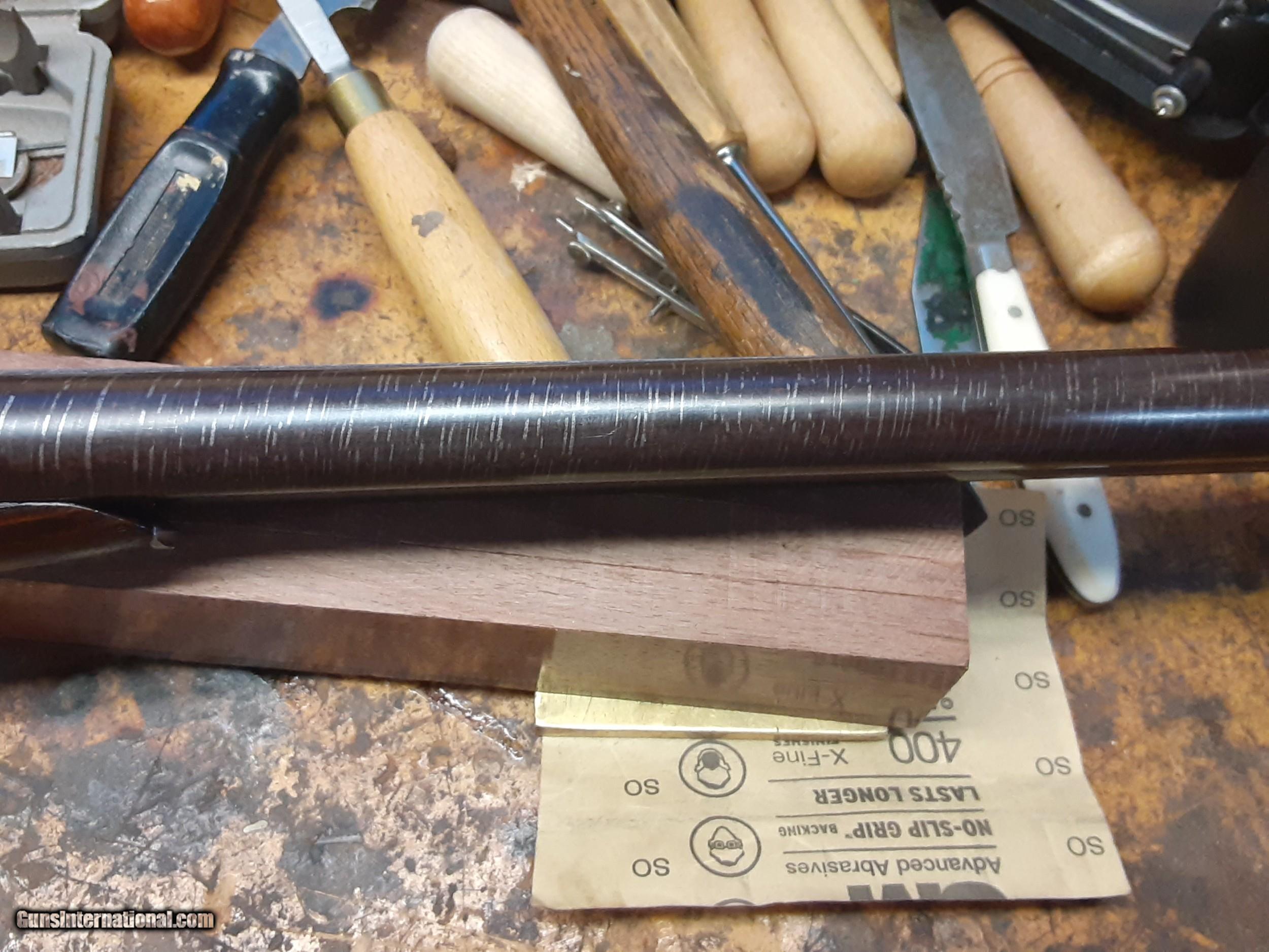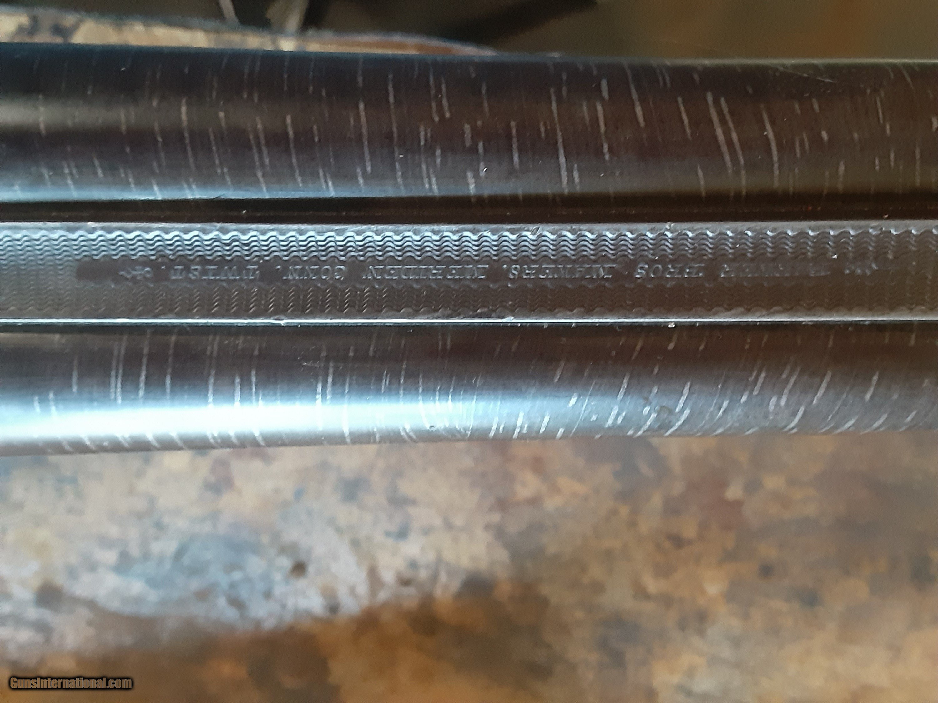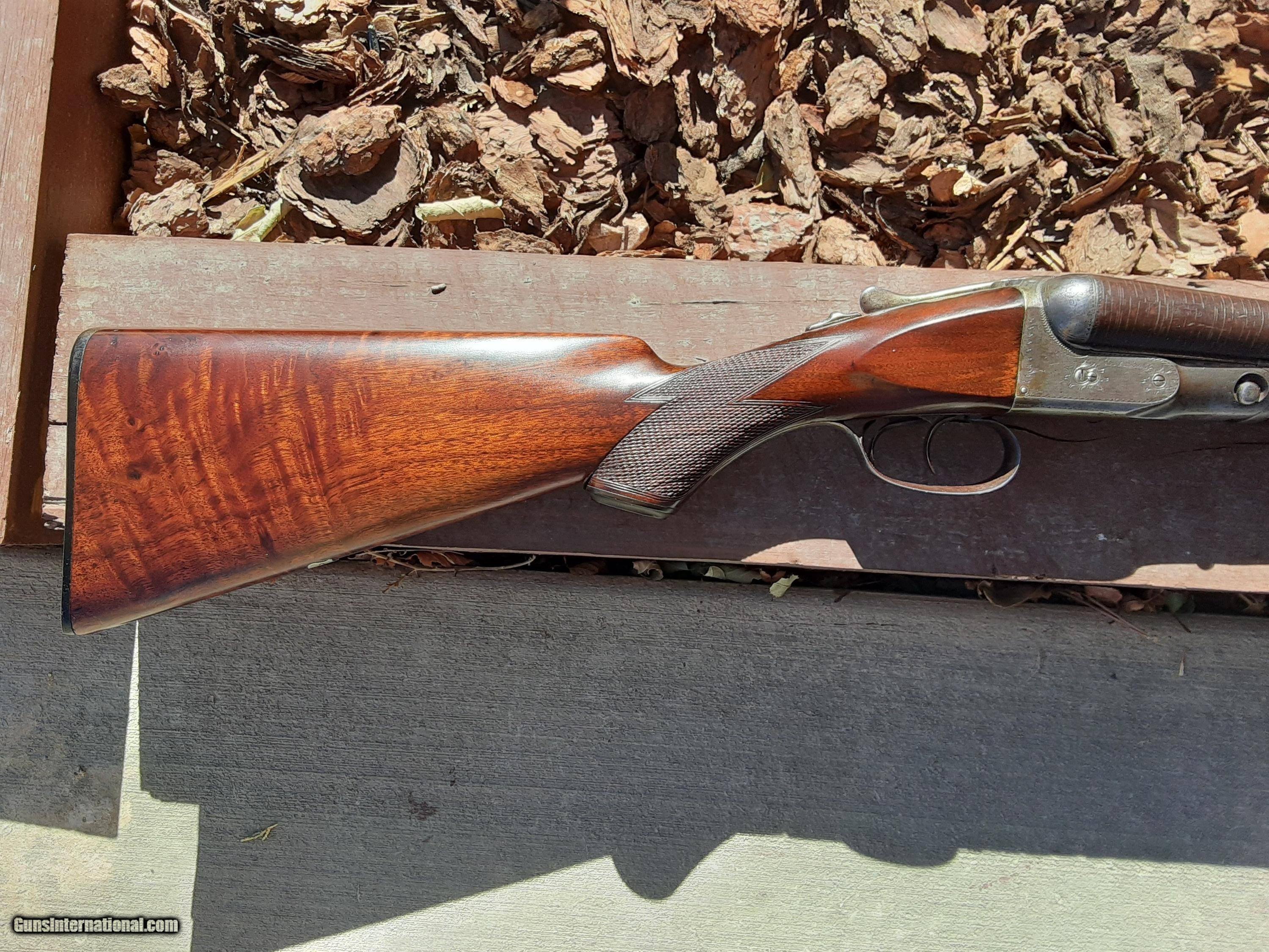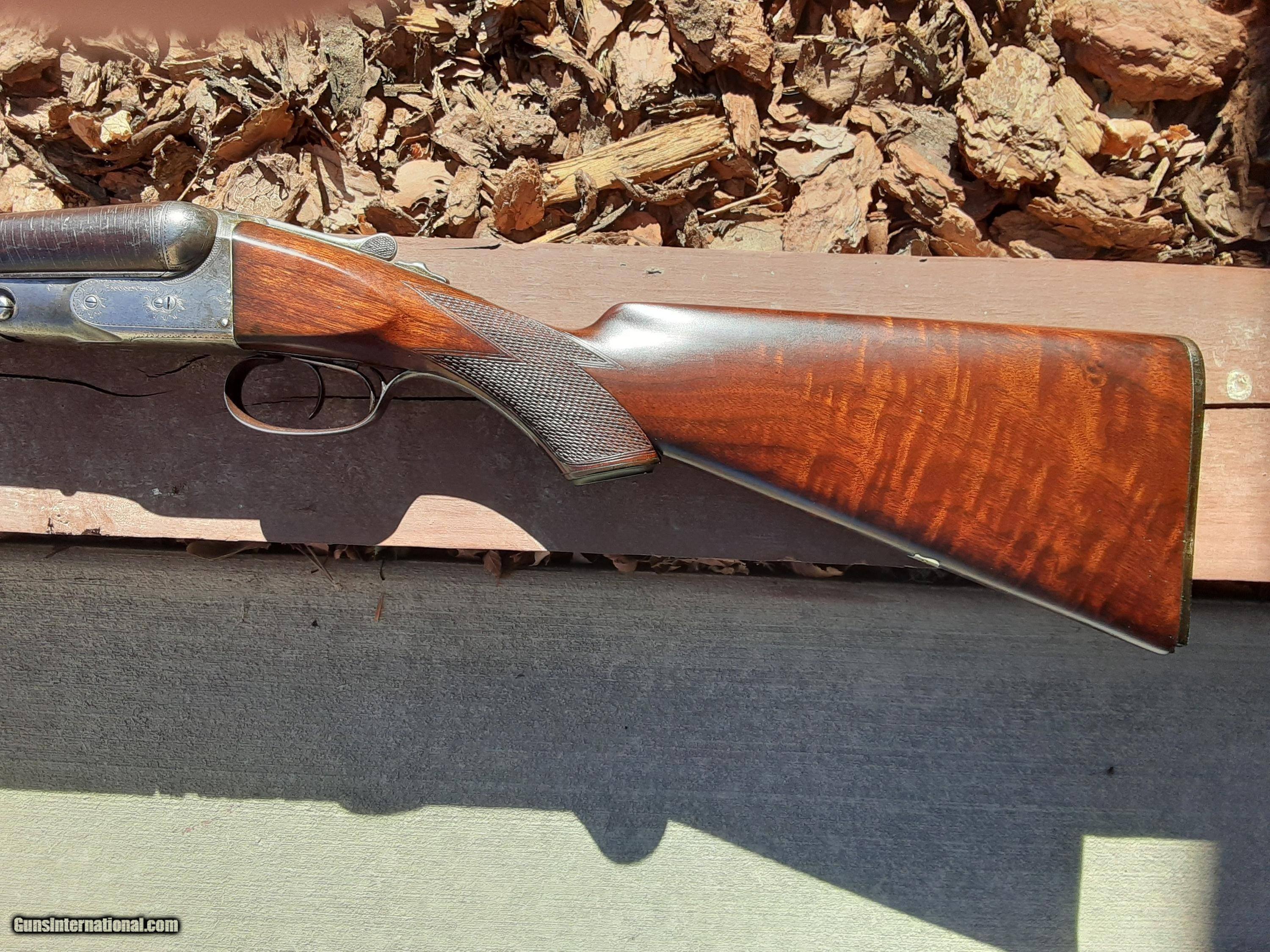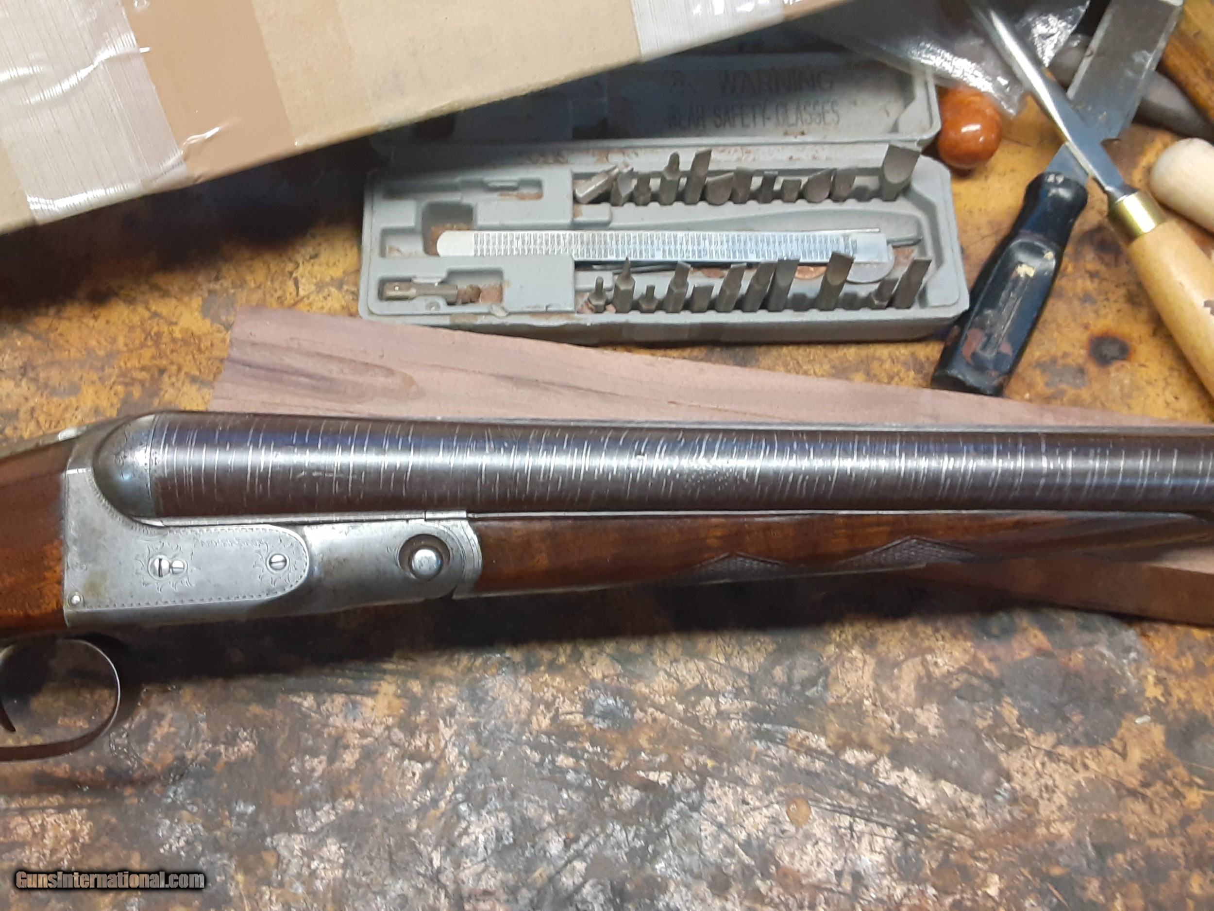 Description: Longer tubes on this 12 guage PH grade give it great balance and are without flaws, on the exterior being a beautiful chocolate brown. They are bright and shiney, chocked F and I/M. No. 2 frame with tight lockup and better wood than usually seen on this grade. Very pretty black walnut which is somewhat darker than the outdoor photos make it look. Chipped buttplate is the only flaw the gun has.This can be replaced at Vintage Gun Grips gor about $25.00 SOLD Curio/Relic: Yes |