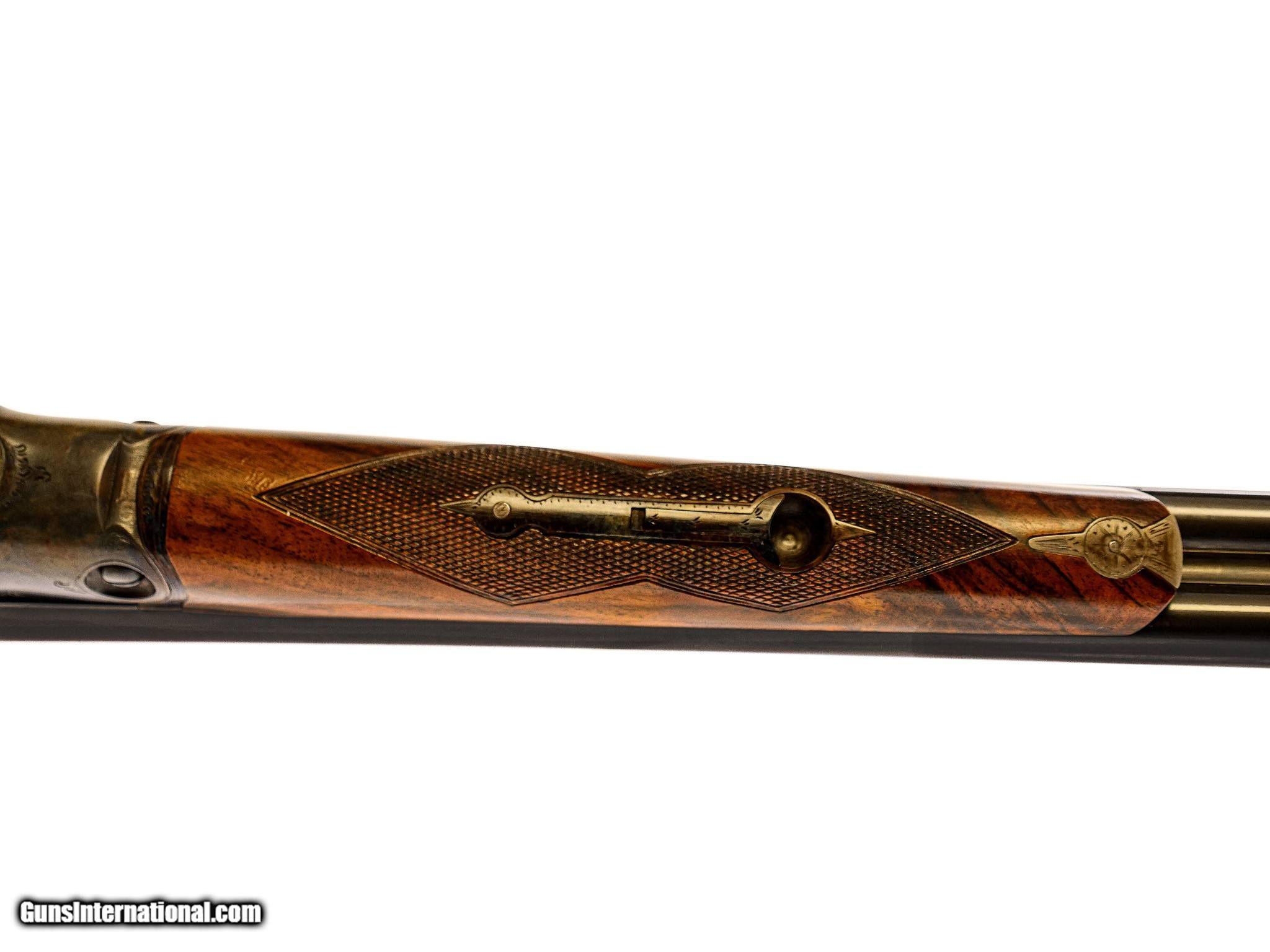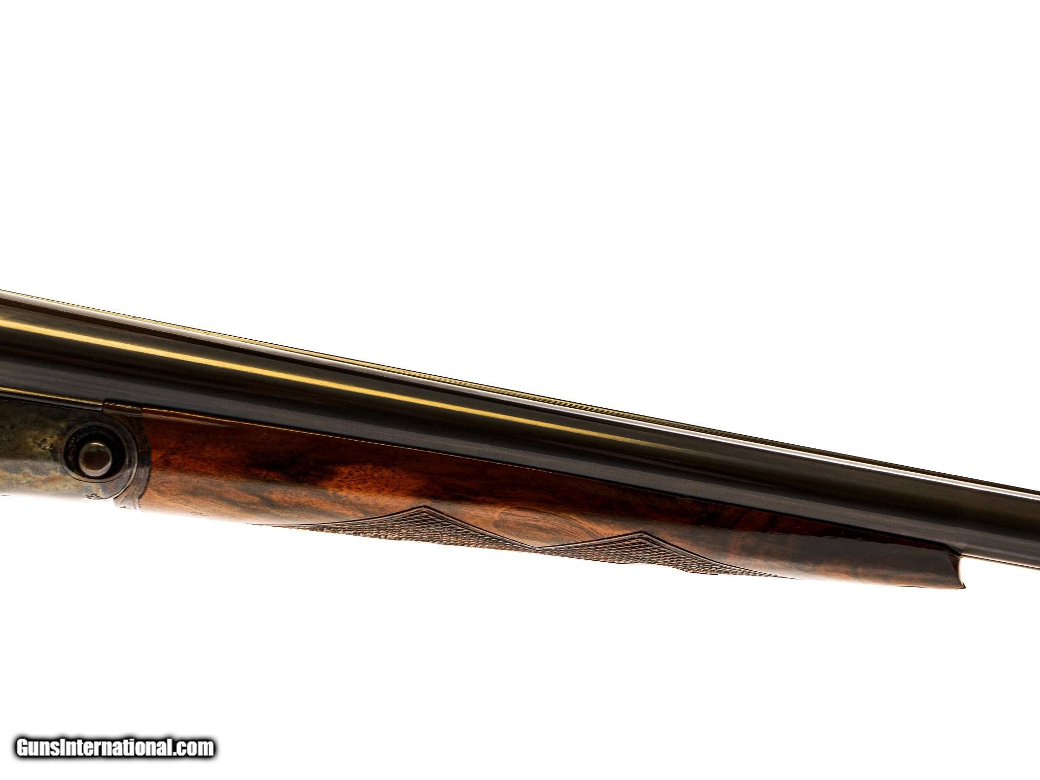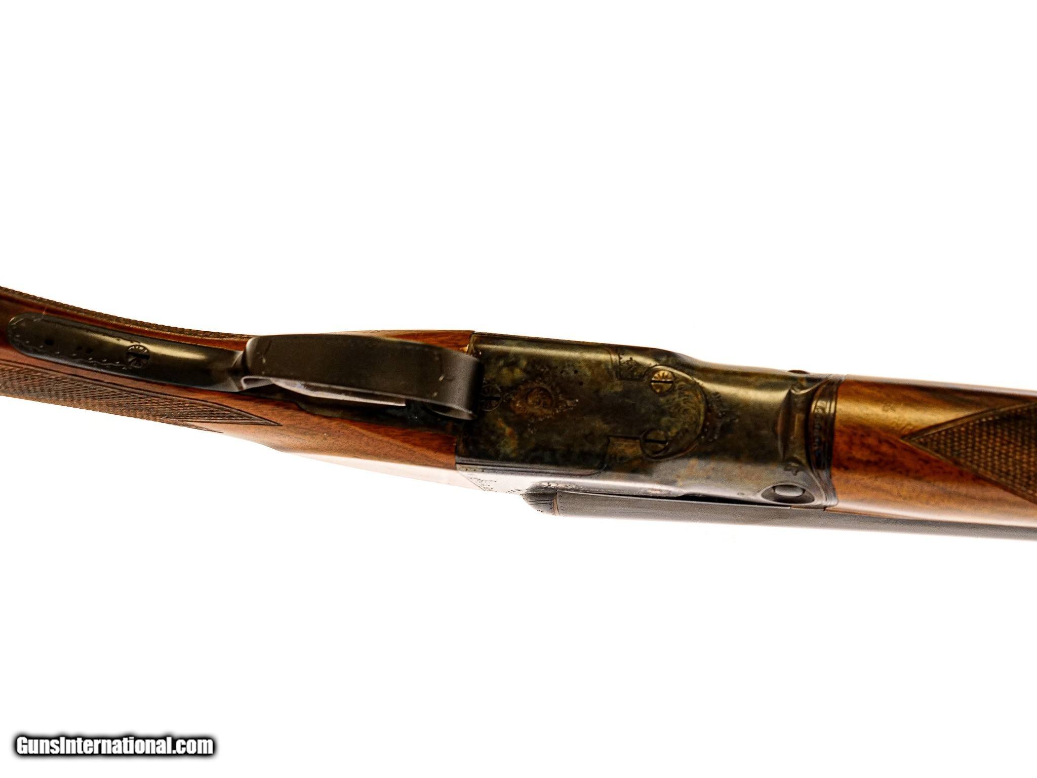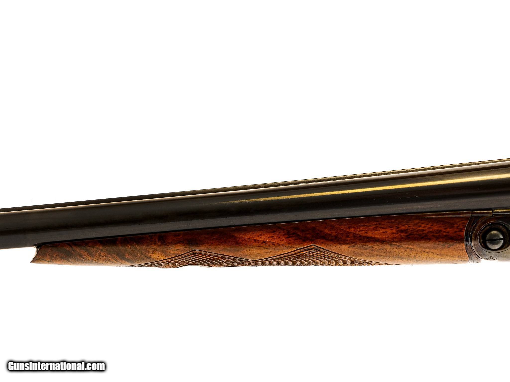 Description: Parker - PHE Grade, SxS, 20ga. 28" Barrels Choked IC/M. Beautiful highly figured wood, capped pistol grip, dogs head butt plate, double triggers, automatic ejectors, 224,xxx Meriden gun with Parker Steel solid rib barrels, splinter forend, gold shield, LONG 15” LENGTH OF PULL, restored to high condition with most people not realizing it was refinished, the work is exceptional! with 100% case coloring, 100% wood finish, 100% checkering, 100% bluing, cost of restoration probably more than our asking price, great gun with modern dimensions, perfect upland configuration, available for immediate delovery Inv: 62523 6 lbs. 2 oz. 15” x 1 ½” x 2 ¼” $6,500.00 Connecticut Shotgun / Galazan buying, selling and manufacturing Parker Shotguns. With 47 years of experience, we have handled the largest collections of Parkers shotguns. Every grade, style, and era including the ultra-rare 3 invincible grades that are currently in the NRA Museum. And many of the milestone guns including SN 100,000 Annie Oakley gun and many more too numerous to list, We have bought and sold more A1 specials then any other firm when Remington wanted to reintroduce the gun they came to CT Shotgun/ Galazan We believe we have had and maintained the finest collection of Parker Shotguns that are available for purchase or trade, all of the guns that we sell are inspected and thoroughly cleaned as we maintain the only inventory of replacement parts for these guns, We can assure the guns that we sell for shooting or collecting are simply the best. So, when you are looking for your best collectible Parker Shotgun or your next favorite hunting gun look no further than CT Shotgun/ Galazan. We also maintain many styles, hunting and presentation case with accessories. SOLD |