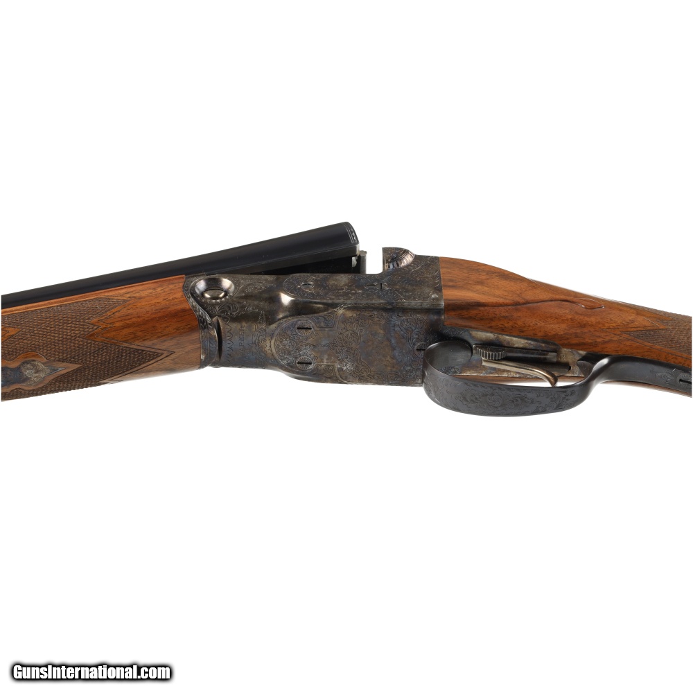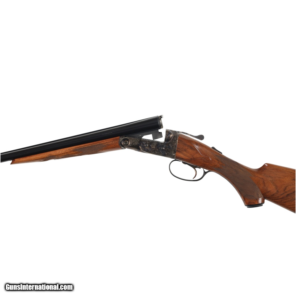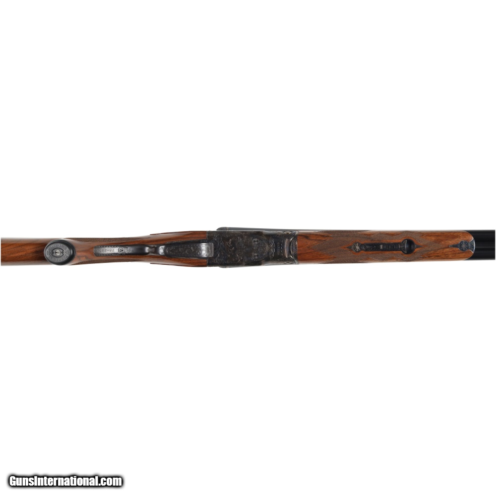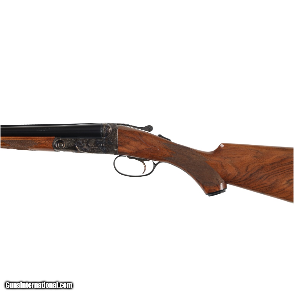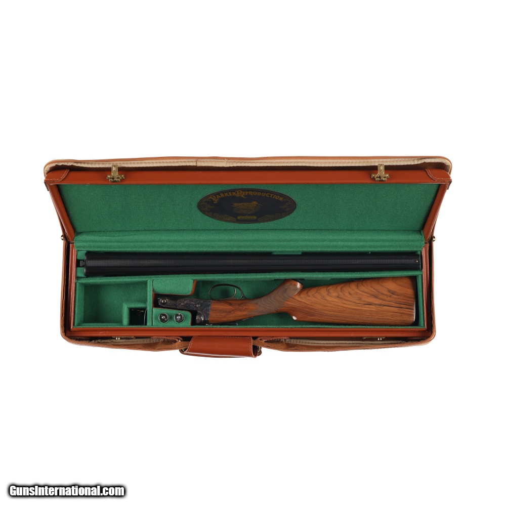Description: The "Parker Reproduction" is not simply a reproduction of the original parker shotguns, they are equal in quality or superior in every way. This used example can hardly be called used, with immaculate bores and a spotless finish, it is practically new. Aside from the near perfect condition, the quality of wood, colors of the case hardening and quality of engraving will put some original parkers to shame. Manufactured in: Japan Hand: Right Hand Action Finish: Case Colored Action Description: Side by Side Metal Finish: Original Barrel Length: 26 Inches Barrel Condition: Excellent Stock Finish: Original Stock Condition: Excellent Type of Butt: Factory Plate Grip: Pistol Forend: Checkered Splinter Cast Amount: 1/4" Extra Barrels: No. SOLD Manufacturer: Winchester Model: Parker Repro Chambers: 2 3/4 Ejectors: Yes Condition: Preowned Metal Condition: Excellent Action: Side by Side Triggers: Single Gauge Info: 28 Gauge Stock Comb: 1 5/16 Stock Heel: 2 1/8 Stock Cast: Off Fore End: Checkered Splinter LOP: 14 1/4 Rib: Matted Game Rib Finish: Original Weight: 5.6 lbs Chokes: IC/IM Extras: No. Case: Leather Luggage Case |