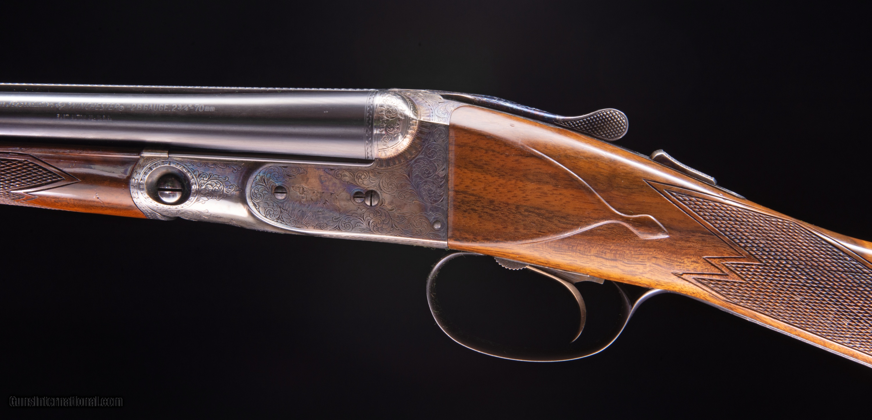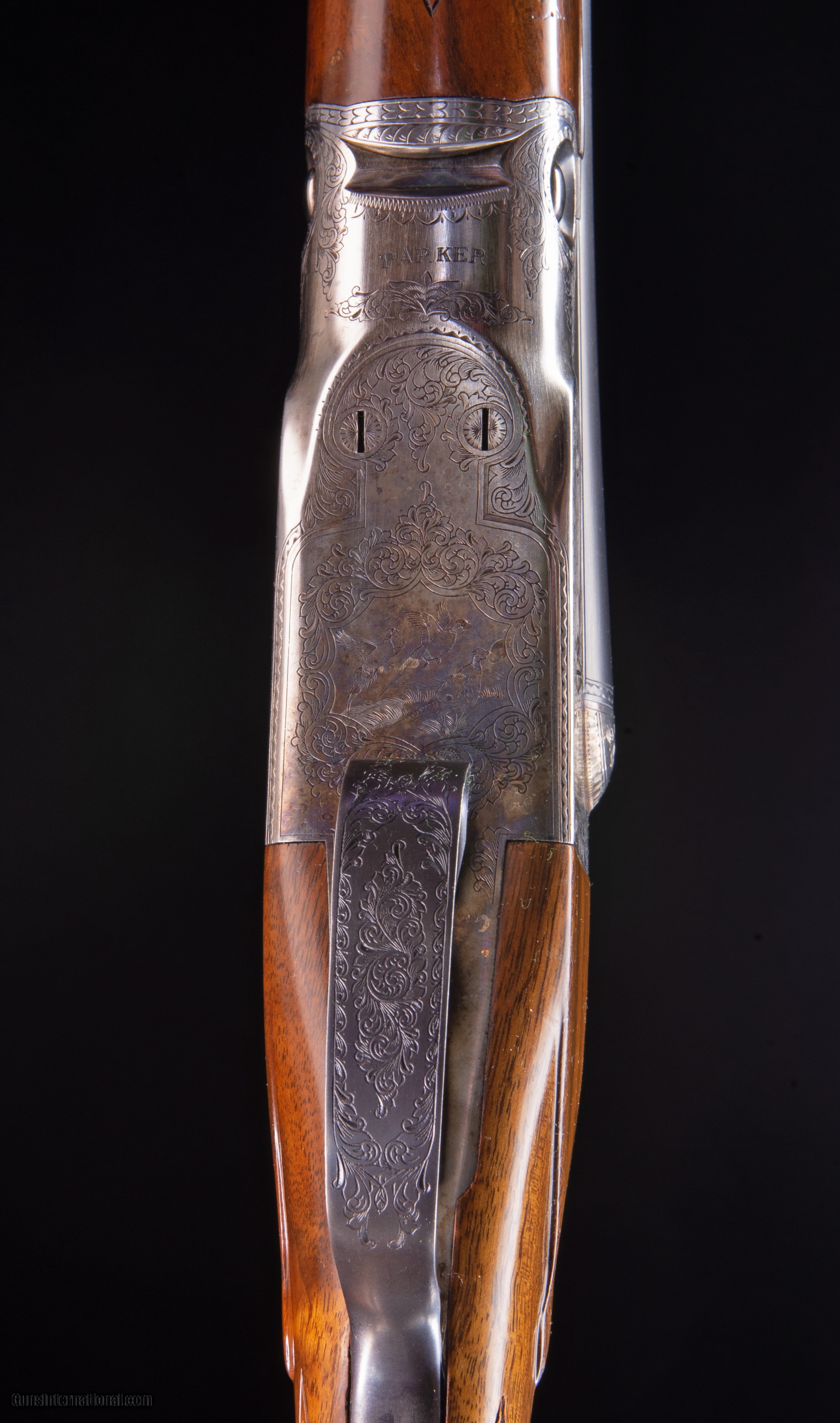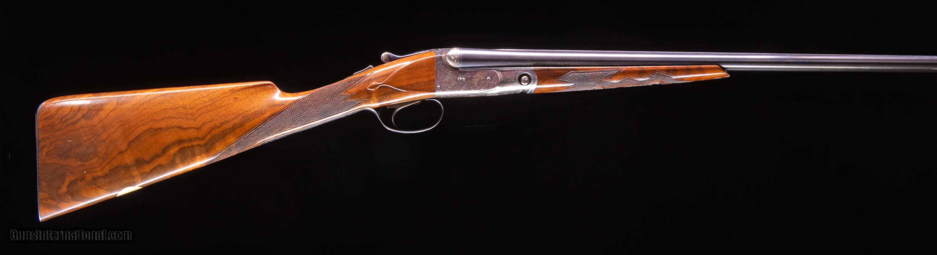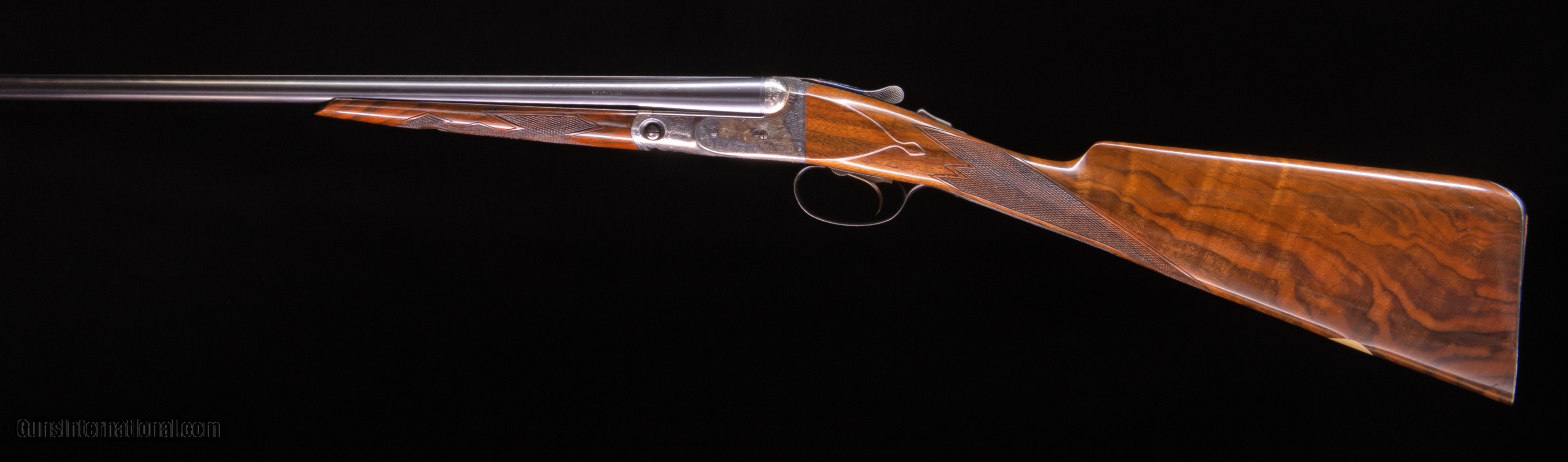 Description: Boxlocks - A nice example of the Parker reproduction in 28g. *** Note: To see this gun with high resolution photos and a zoom-in feature, go to the vintagedoubles main site and search for the gun ID: 5077 or browse the main site to see our full gun collection. SOLD Curio/Relic: Yes Manufacturer: Parker Reproduction DHE 28g in its makers case and in nice condition Model: None Serial Number: 28-00183 Ejectors: Yes Barrels: 26 Barrel Type: Steel Action: Boxlock Ejector Gauge Info: 28 gauge Stock Comb: 2 1/4 Stock Heel: 1 7/16 Stock Cast: 1/16 LOP: 14 1/4" to Skel Weight: 5 lbs. 6 3/4 oz. Choke Left: .018 full in 28g Choke Right: .009 IC Proof:Nitro: 2 3/4 Minimum Wall Thickness Left: .022 Minimum Wall Thickness Right: .023 |