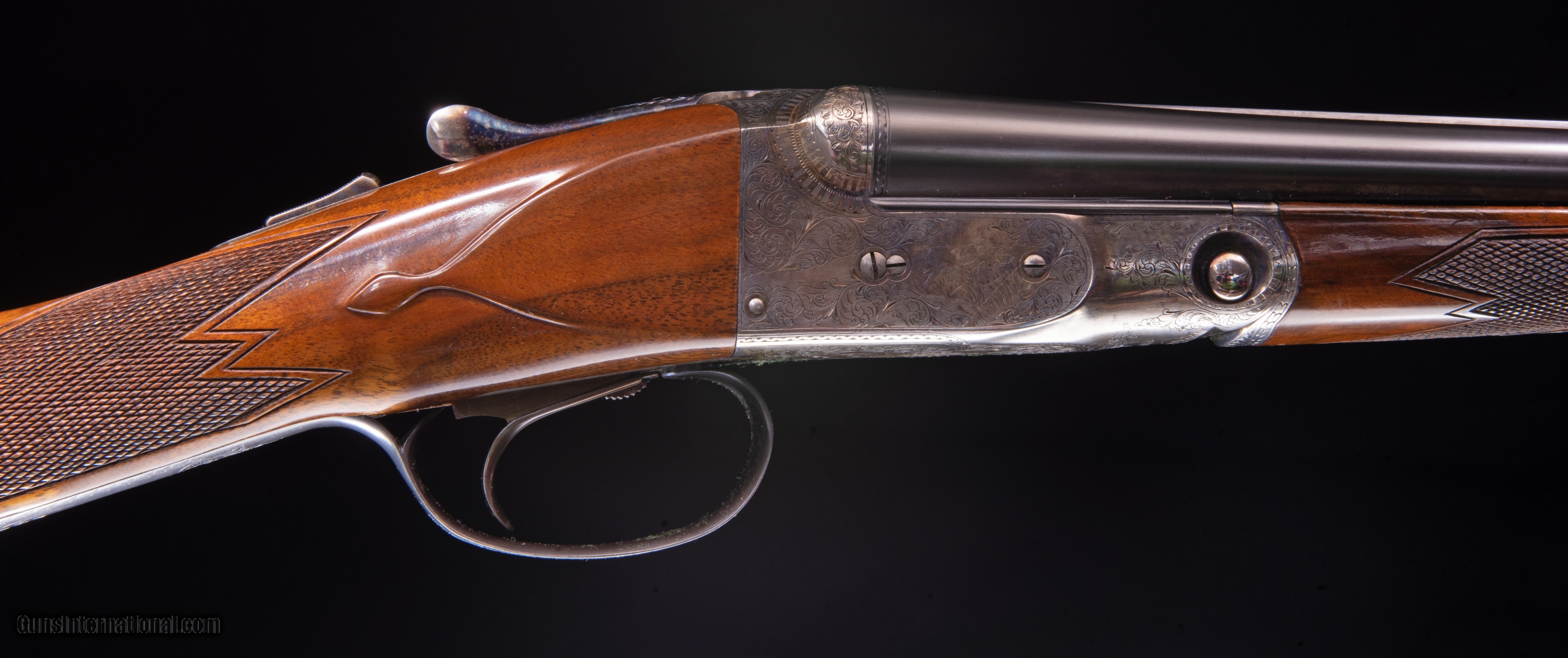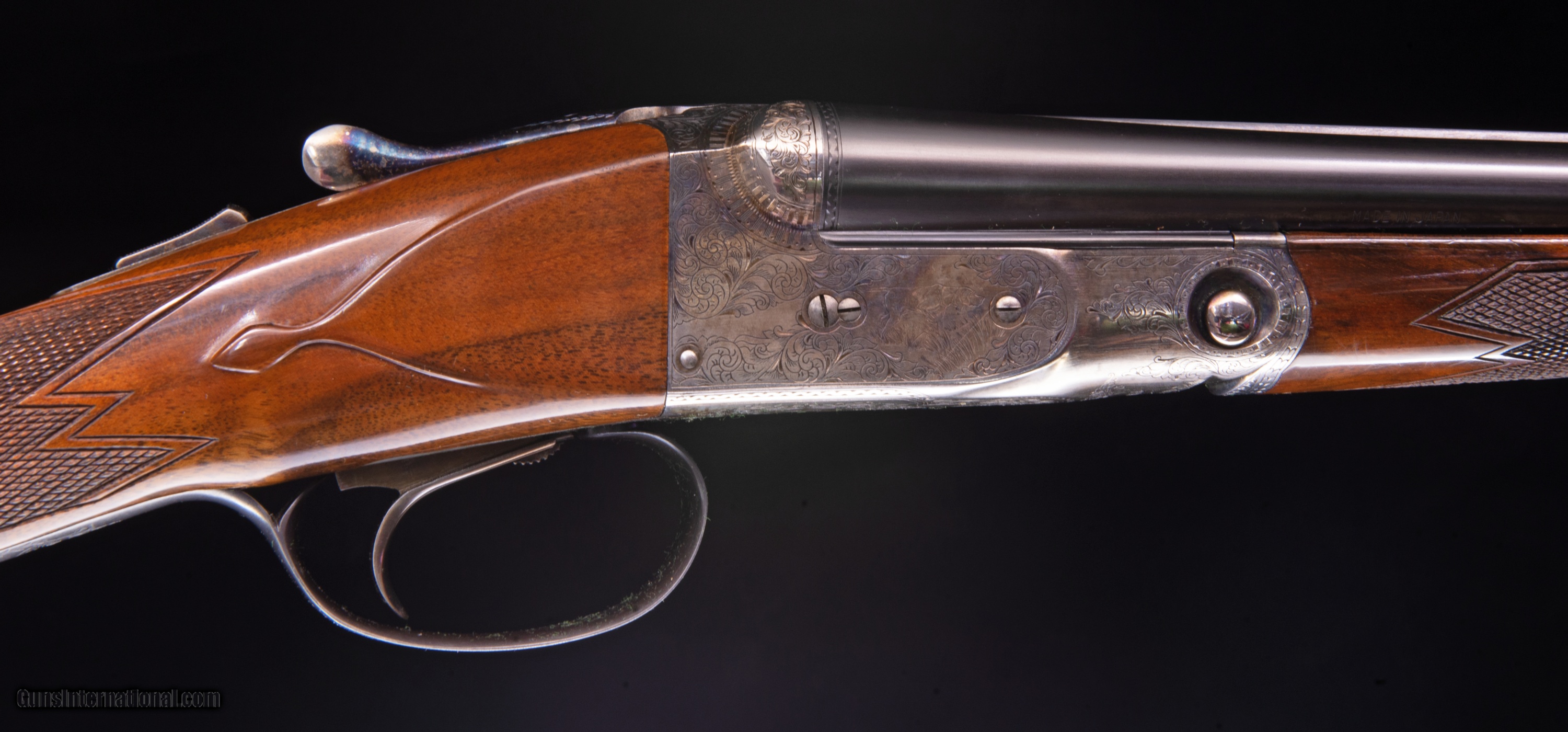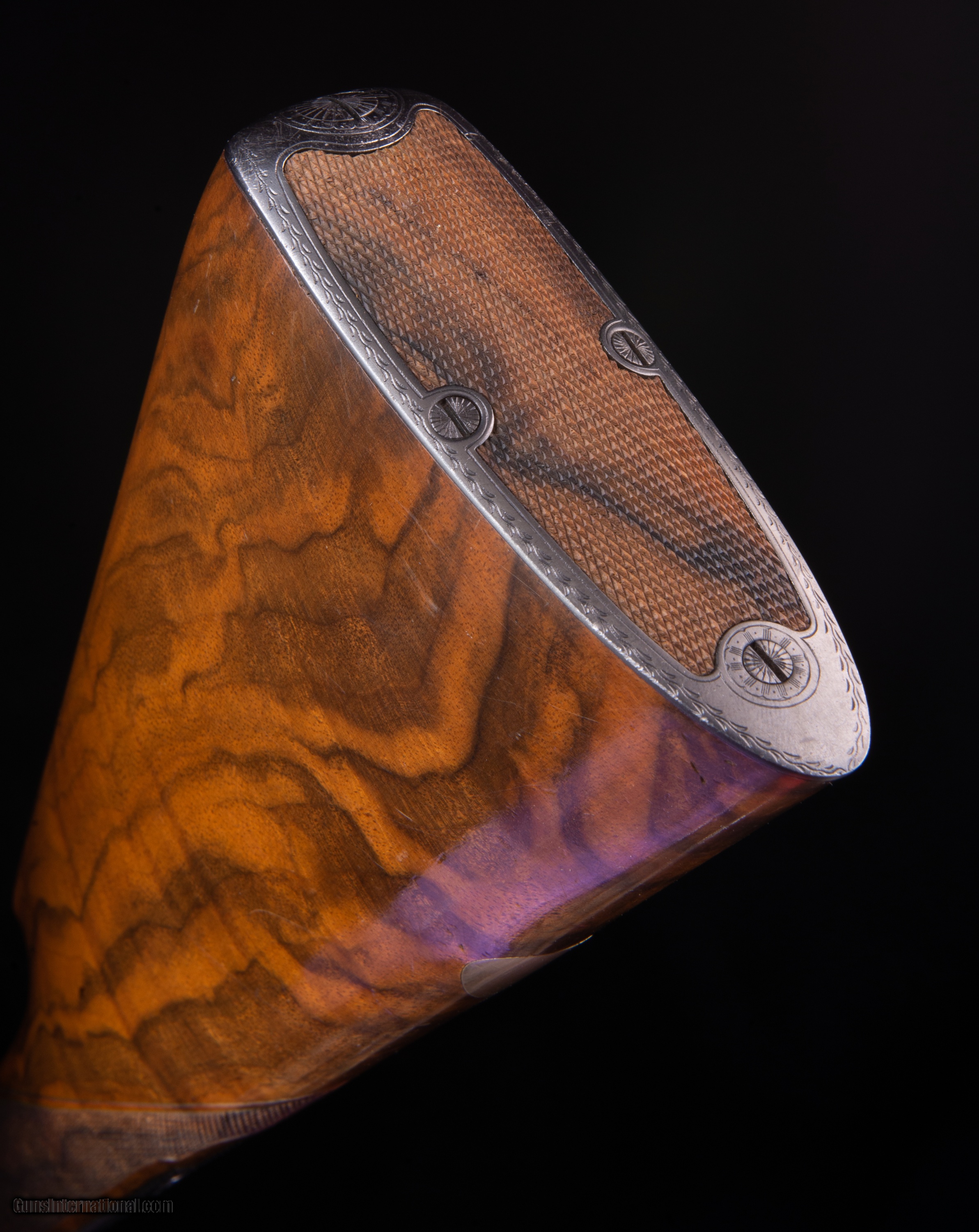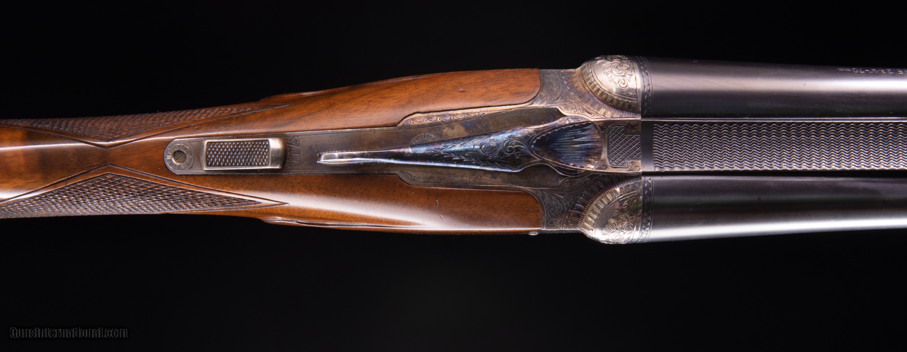 Description: Boxlocks - A nice example of the Parker reproduction in 28g. *** Note: To see this gun with high resolution photos and a zoom-in feature, go to the vintagedoubles main site and search for the gun ID: 5077 or browse the main site to see our full gun collection. SOLD Curio/Relic: Yes Manufacturer: Parker Reproduction DHE 28g in its makers case and in nice condition Model: None Serial Number: 28-00183 Ejectors: Yes Barrels: 26 Barrel Type: Steel Action: Boxlock Ejector Gauge Info: 28 gauge Stock Comb: 2 1/4 Stock Heel: 1 7/16 Stock Cast: 1/16 LOP: 14 1/4" to Skel Weight: 5 lbs. 6 3/4 oz. Choke Left: .018 full in 28g Choke Right: .009 IC Proof:Nitro: 2 3/4 Minimum Wall Thickness Left: .022 Minimum Wall Thickness Right: .023 |
