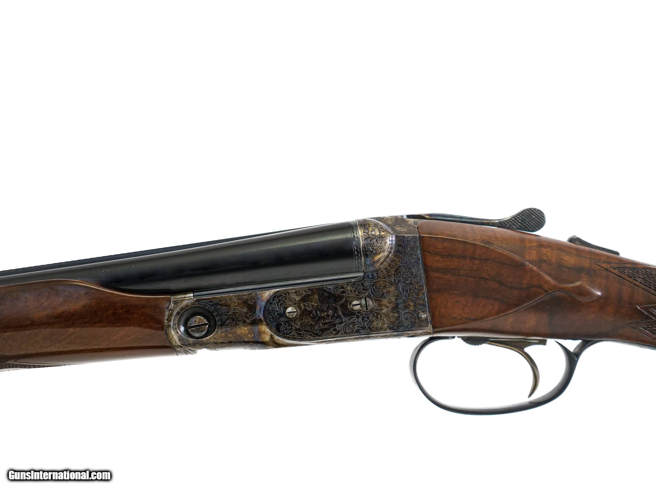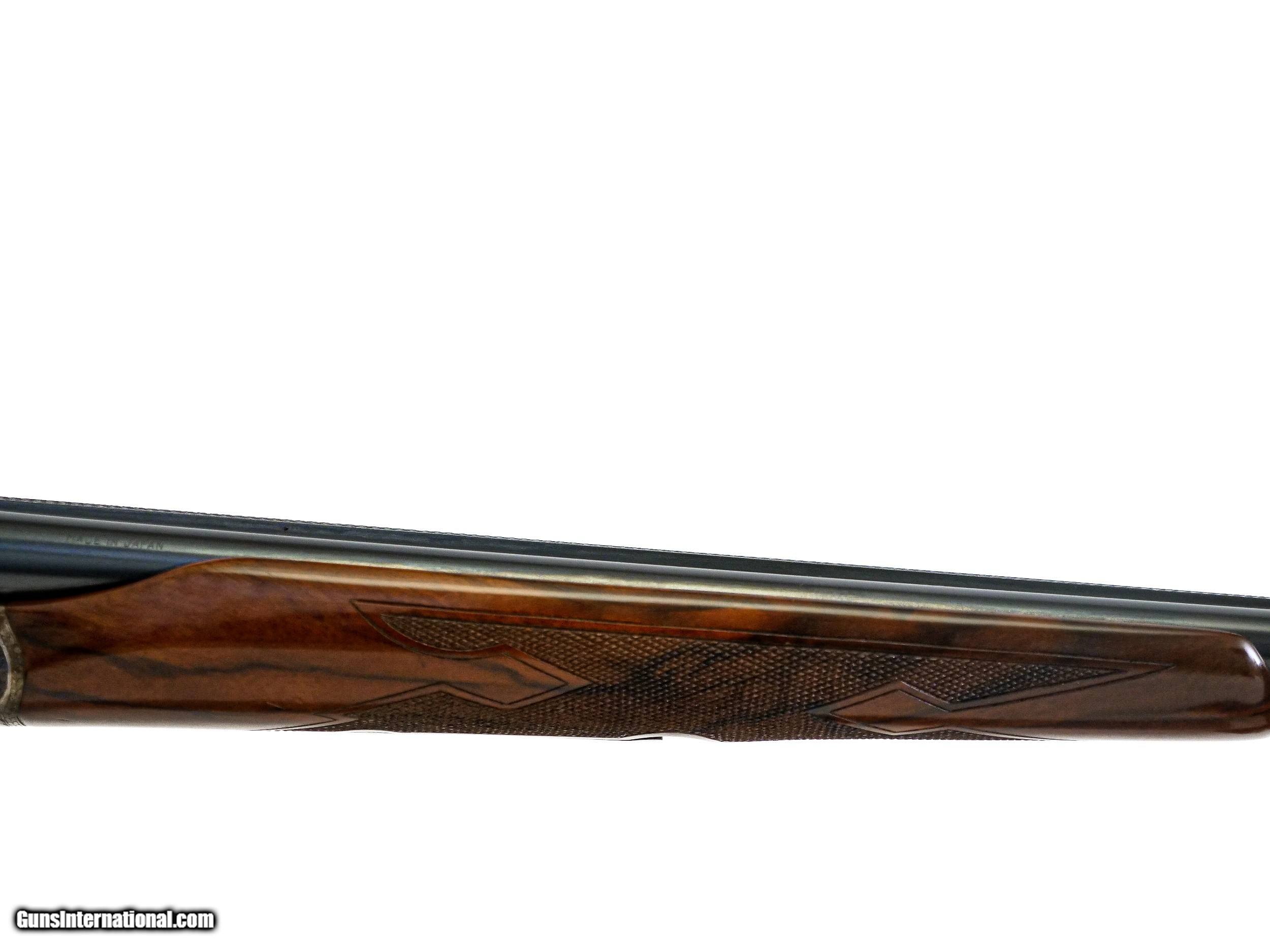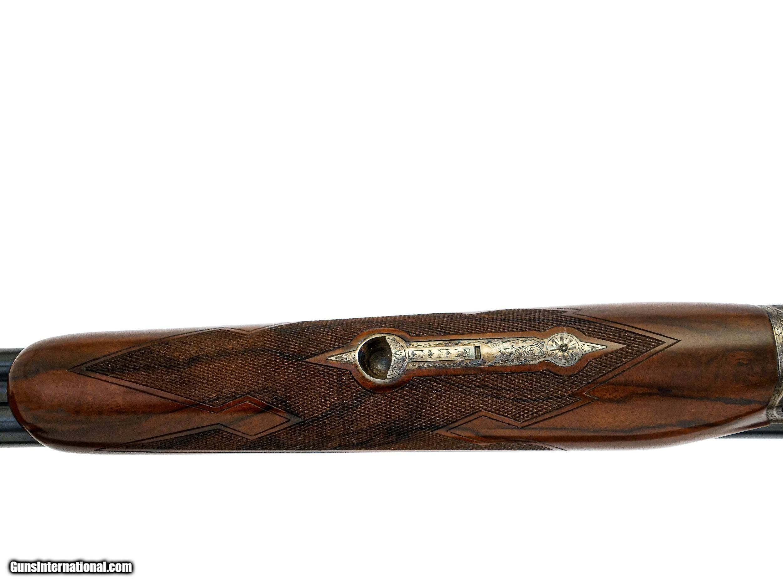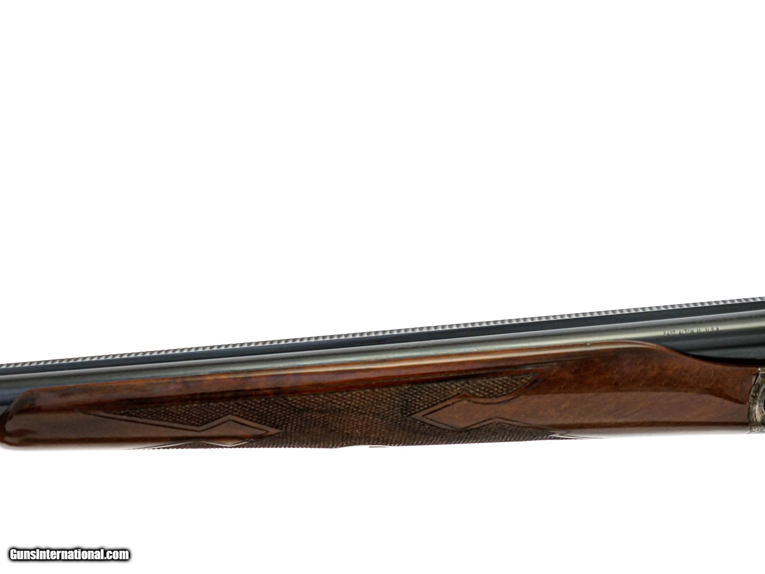 Description: Parker Reproductions - DHE Grade, 28ga. 28" Barrels Choked M/F. Straight grip exhibition wood, skeleton butt plate, gold oval, single selective trigger, automatic ejectors, beavertail forend, perfect gun with all the case coloring remaining, appears unfired, cased, nicest one you will find in the best configuration, available for immediate delivery. Inv: 52119 5 lbs. 6 oz. 14 ¼” x 1 ½” x 2 ¼” $7,250.00 SOLD |