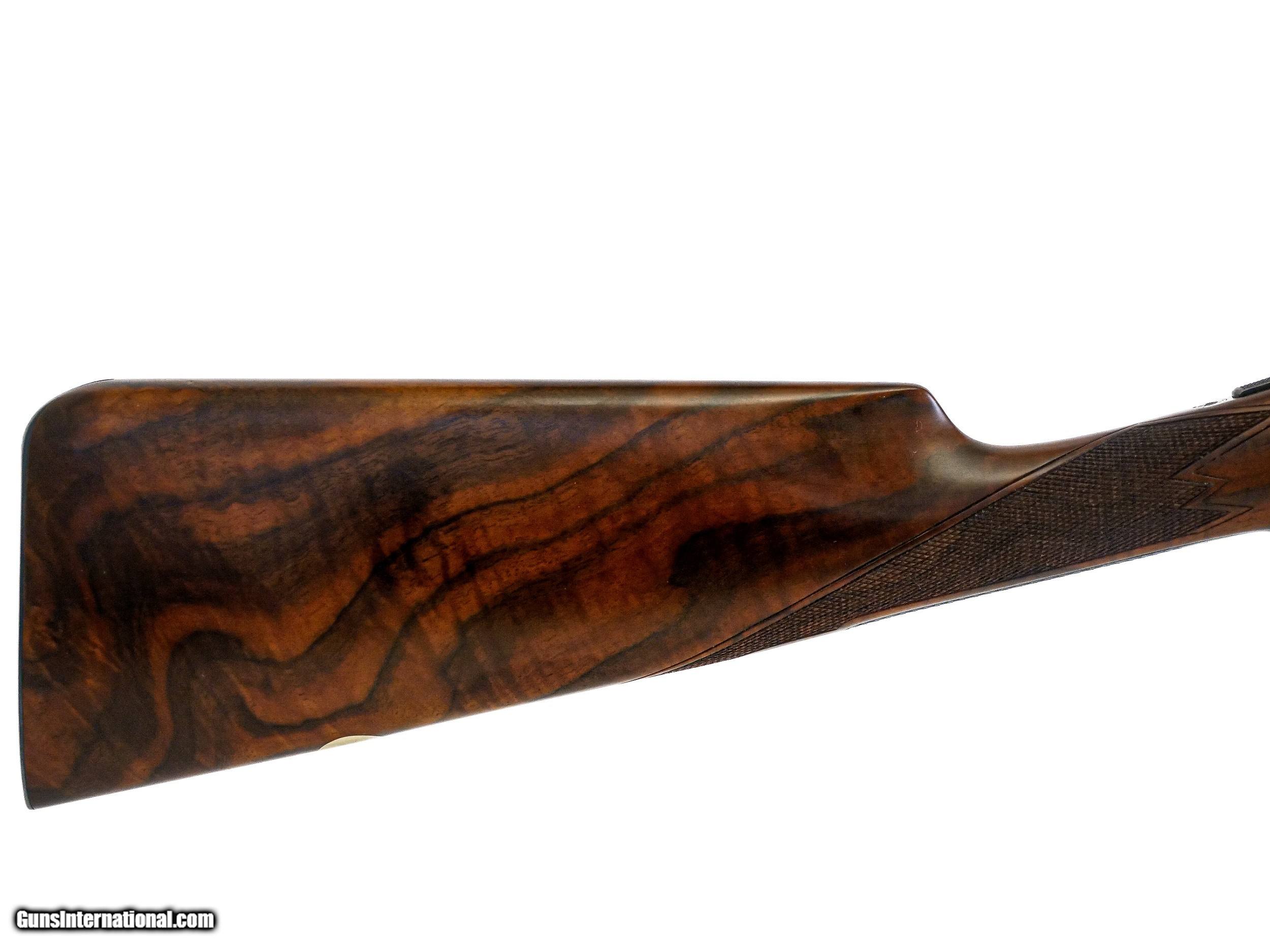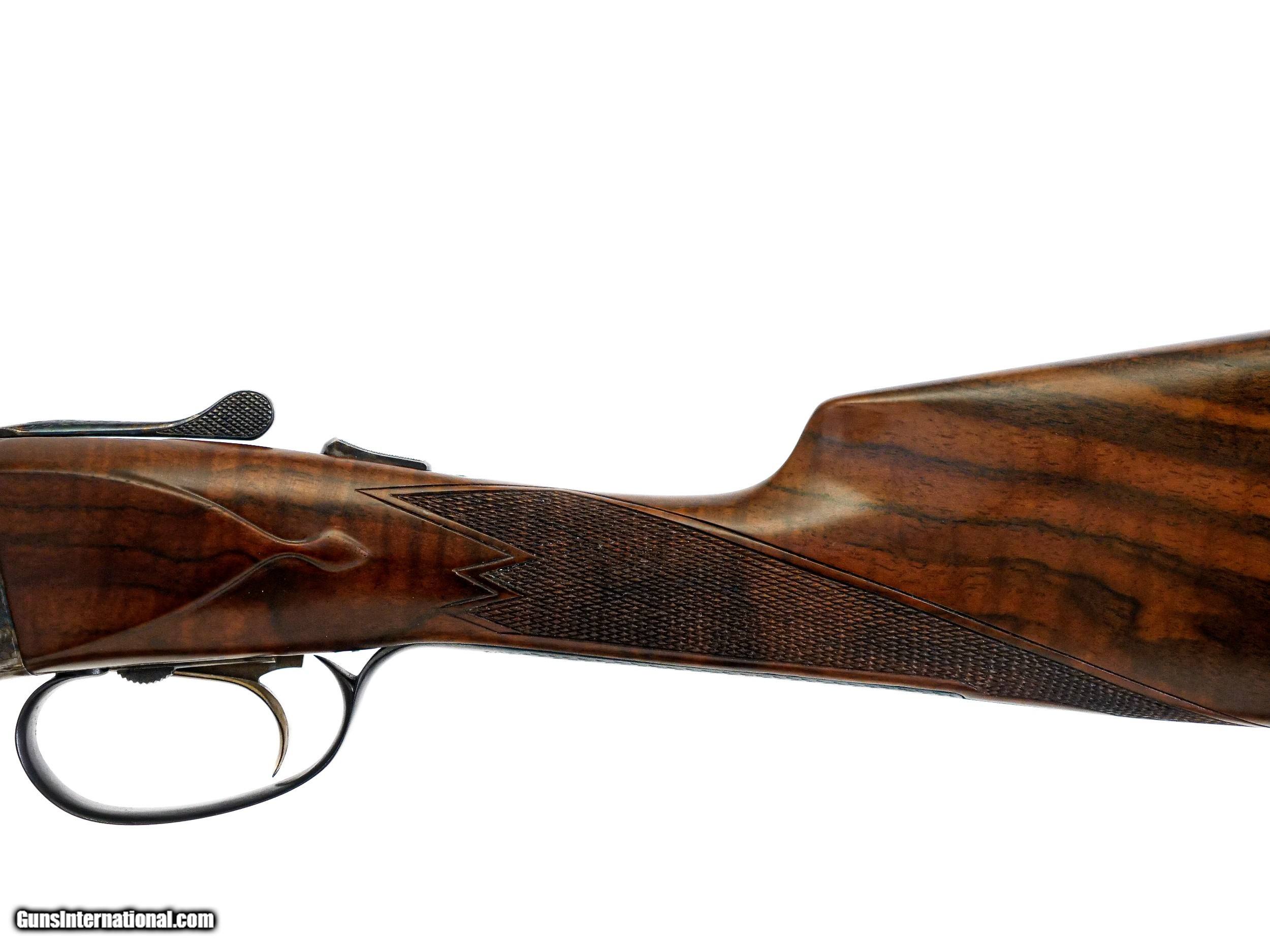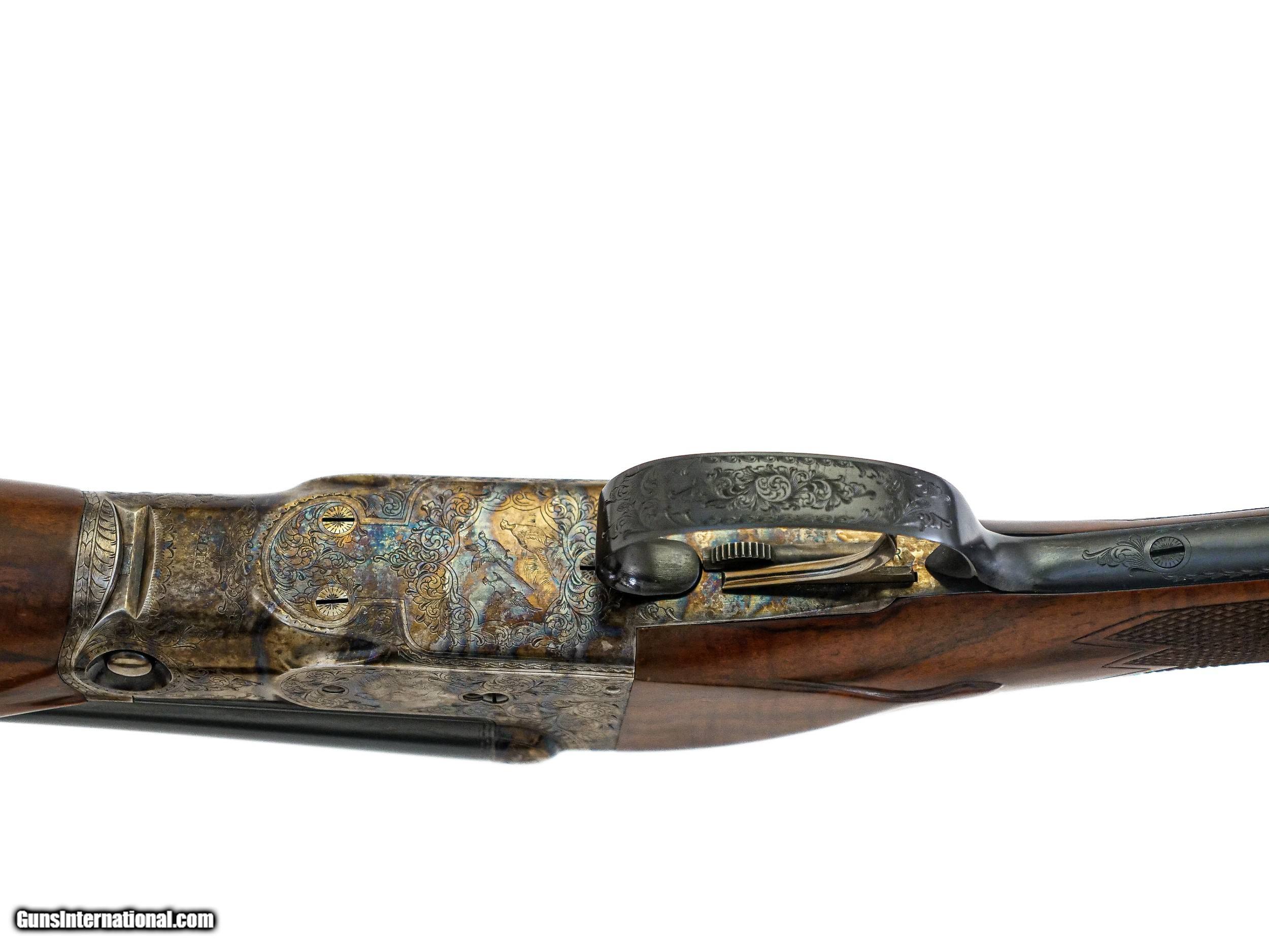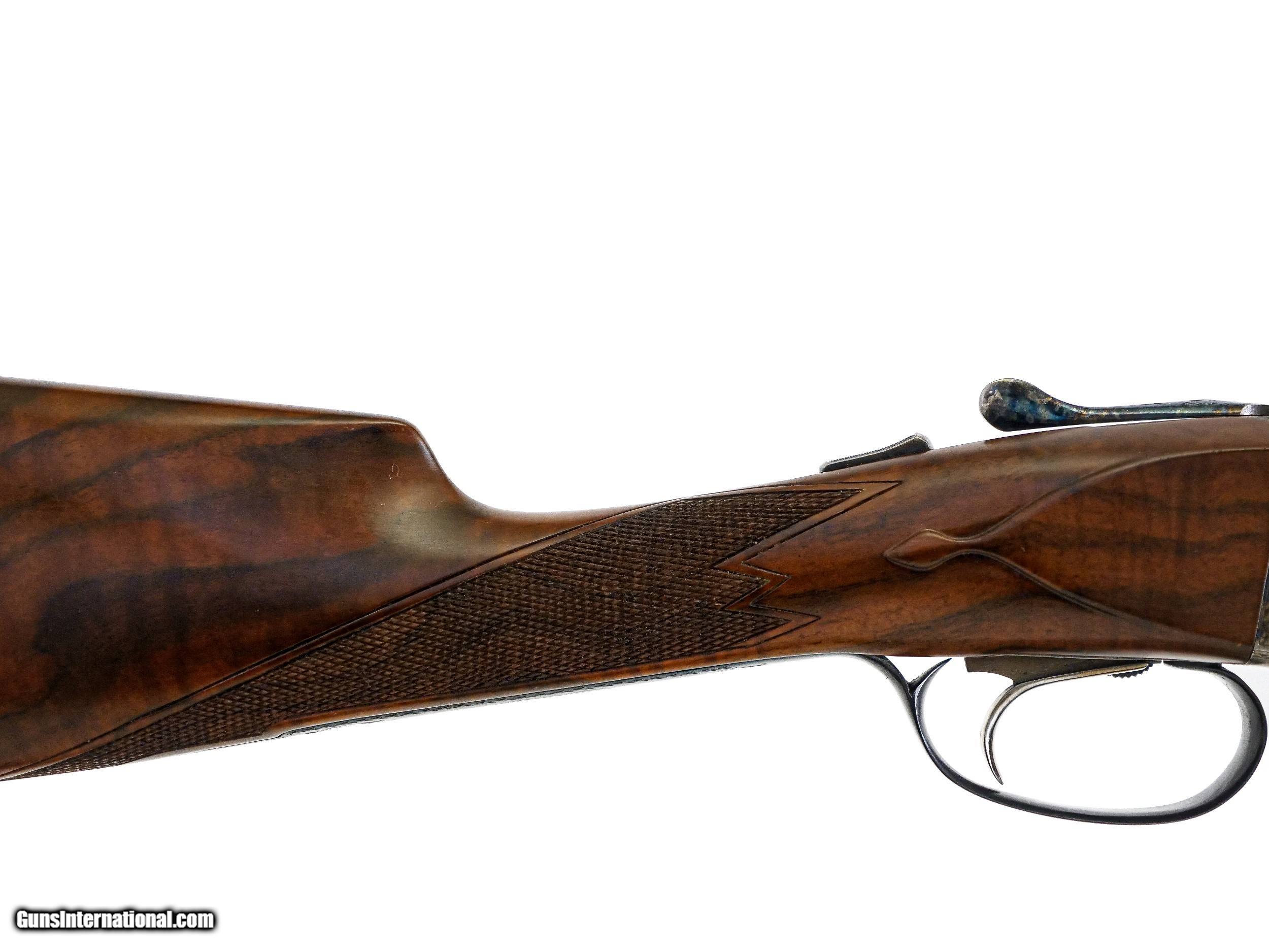 Description: Parker Reproductions - DHE Grade, 28ga. 28" Barrels Choked M/F. Straight grip exhibition wood, skeleton butt plate, gold oval, single selective trigger, automatic ejectors, beavertail forend, perfect gun with all the case coloring remaining, appears unfired, cased, nicest one you will find in the best configuration, available for immediate delivery. Inv: 52119 5 lbs. 6 oz. 14 ¼” x 1 ½” x 2 ¼” $7,250.00 SOLD |