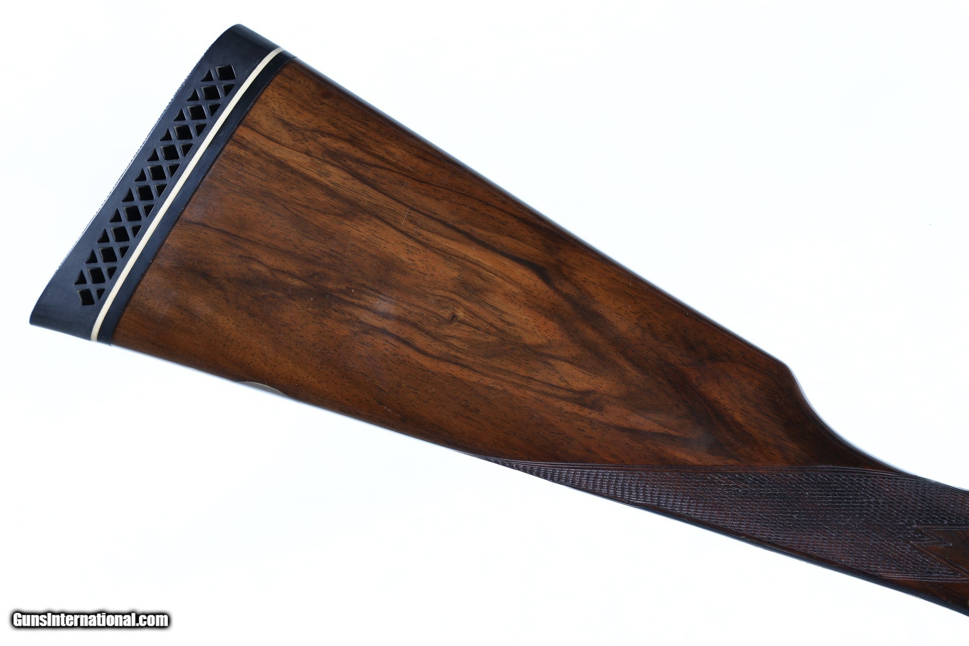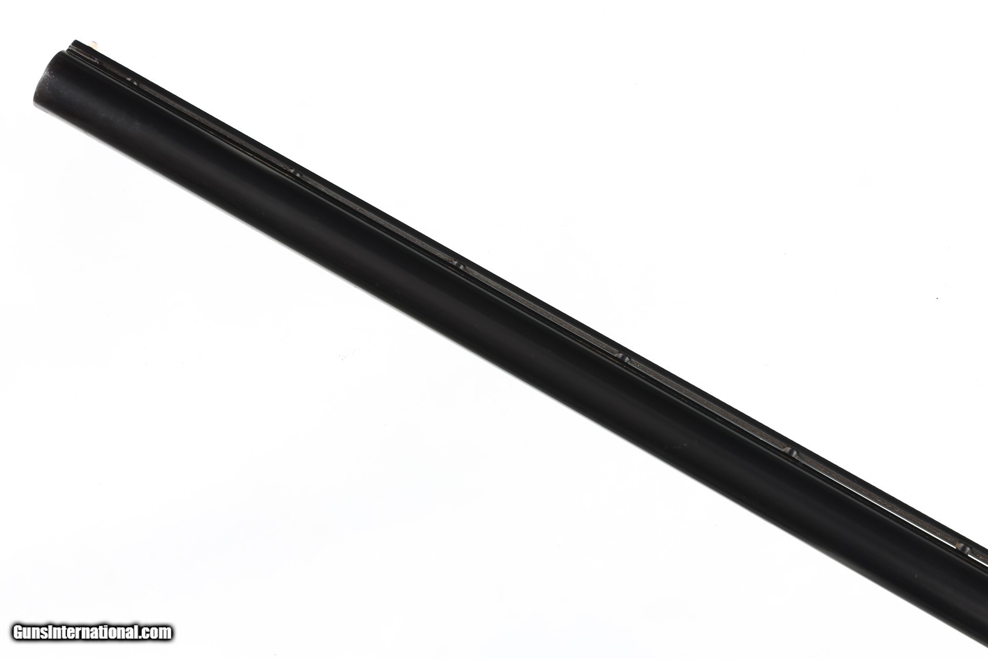 Description: Excellent plus overall condition as professionally restored, Del Greco Quality. A couple small areas of finish lifting from wood, and thinning blue to lower tang. Crisp tight action, Chamber: 2 - 3/4" Choke: Cylinder Drop at Comb: 1 - 1/2" Drop at Heel: 2 - 3/4" Length of Pull: 14 1/4". Manufactured in 1917, this Parker Bros Shotgun is one of only 1258 "SC" Grades ever produced and helped Parker Bros set the standard for double guns from the pre-WWII era. The brand's prestige is on full display with this Single-Barrel "SC" Grade Trap Gun, featuring a black, vented Larry Del Grego & Son recoil pad, smooth, dark walnut straight-grip stock and tapered beavertail forend bearing illustrious checkering patterns and a glossed finish, a color casehardened receiver with immaculate scrollwork extending to the trigger guard, upper and lower tang, and breech lever, and contours mimicking the shape of the checkering just behind the receiver. The scrollwork is indicative of Parker Bros' early designs, as well as the single trigger and lack of safety. The left and right sides of the receiver are marked "Parker Bros" among all the artful engravings which are also featured on the forend release latch. Double ivory bead sights sit atop the 32" blued barrel marked with the Parker Brothers Connecticut address. • Free Shipping, No Credit Card Fees. • Lay-a-way available for this firearm. • 1/3 Down, a 1/3 in 30 Days 1/3 in 60 Days. SOLD Curio/Relic: Yes Manufacturer: Parker Bros. Model: SC Trap Serial Number: 177324 Barrel Length: 32 |