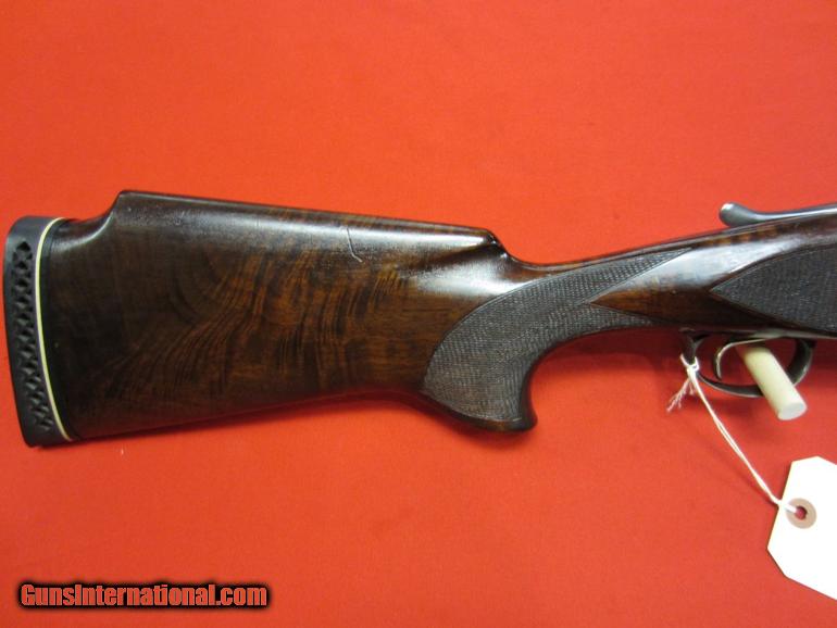 Description: Gun remains in very good condition: a nicely figured Etchen Special stock has been installed, beavertail forearm, 14" LOP over a Pachmayr White Line pad, and a .730" bore with .035" choke (FULL). SOLD |