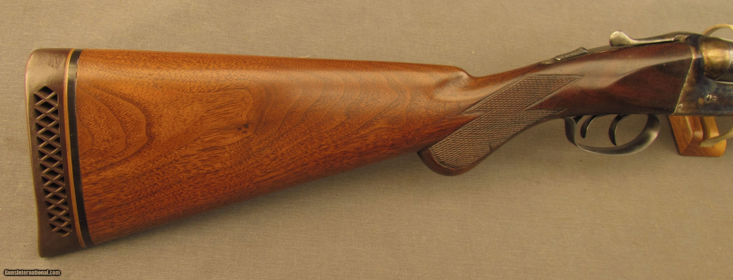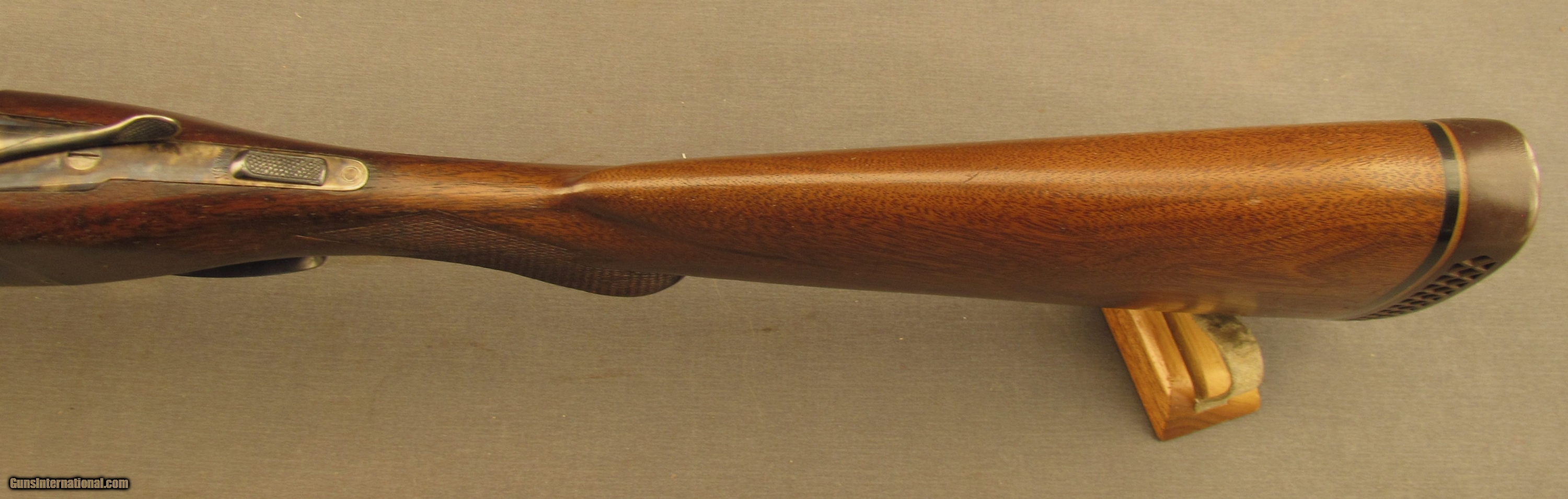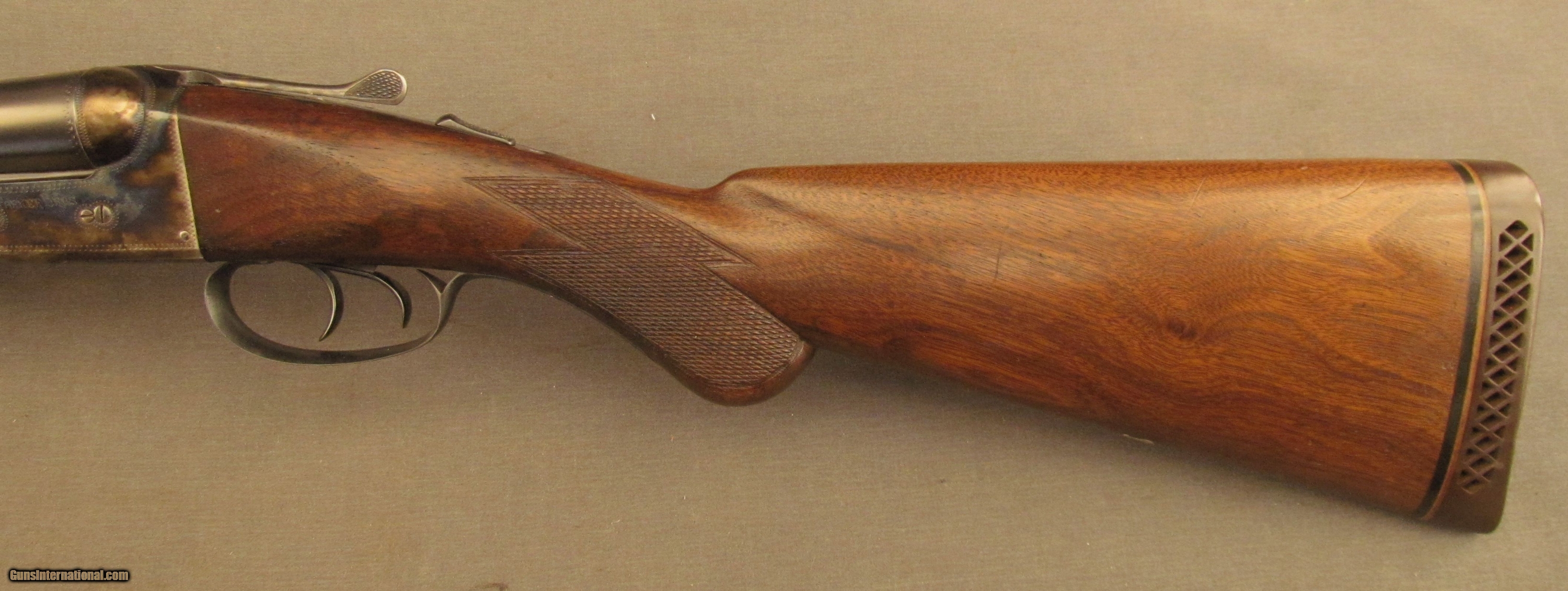 Description: Serial #231096, 12 ga. (2 3/4”), 26” barrels with excellent, bright bores (choked Mod. And Full). This is an extractor-equipped gun, and is built on a 1 1/2 frame. The gun has been professionally restored with virtually all of the blue remaining on the barrel and 98-99% of the very nice color case-hardening remaining on the frame and forend furniture. The markings, minimal engraving, and barrel rib matting are still crisp and distinct; the edges are still sharp; and barrels have not been shortened. The walnut forend and pistol grip buttstock have only some minor handling marks and surface blemishes scattered about the excellent oil finish, and the checkering is still rather sharp with only some minor flattening of the points here and there. The gun is mechanically excellent with firm lock-up and a lever that is right-of-center. The gun weighs 6 lbs. 15 oz., has a length of pull that measures 14 3/4” (to a period White Line recoil pad), and has drops of 1 5/8” and 3” respectively. This is a super looking Parker, restored by someone who knew what they were doing, and should prove a worthy companion during upland hunting in the fall. FFL or C&R SOLD Curio/Relic: Yes Manufacturer: Parker Model: VH Serial Number: 231096 Caliber Info: 12ga Gauge Info: 12ga |