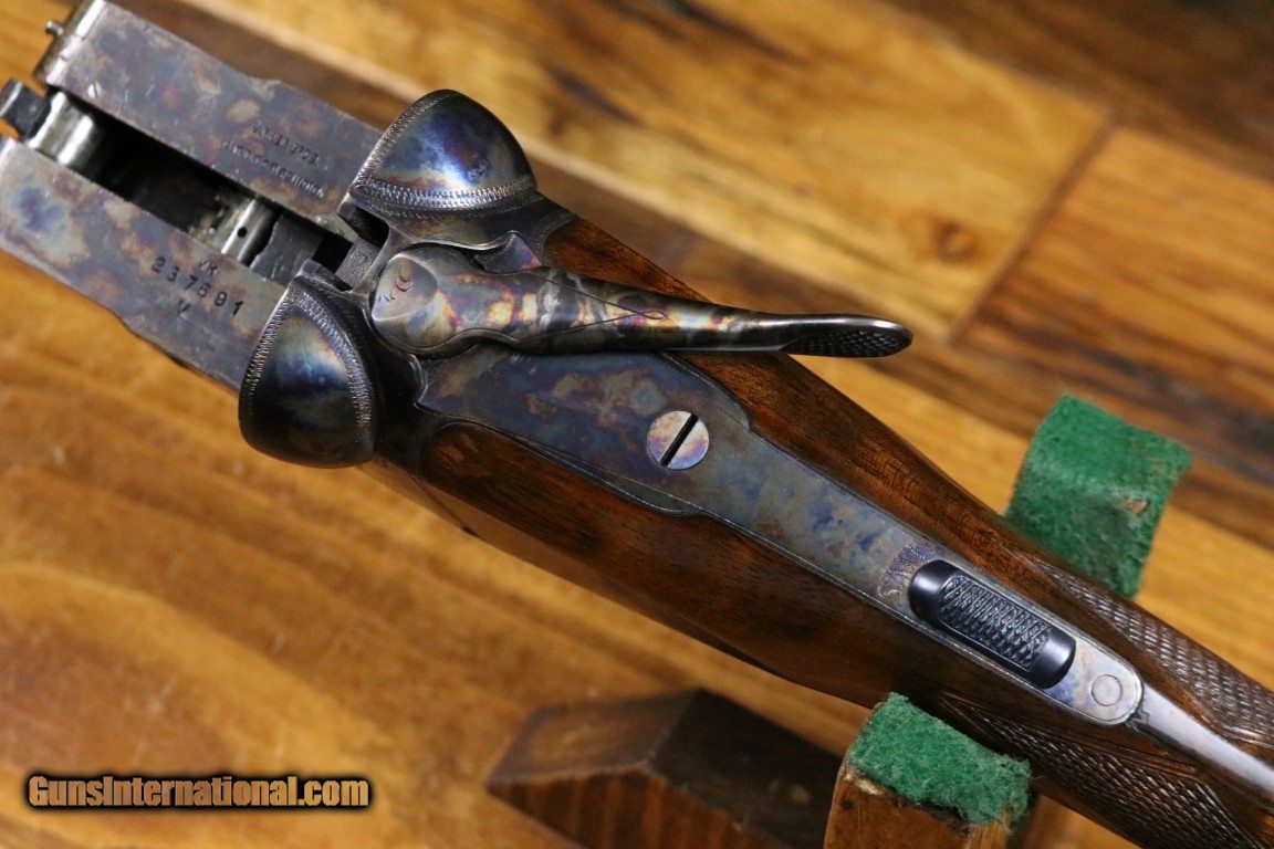 Description: Remington Era Parker VHE 12 Gauge Skeet Shotgun. Serial Number is 237691. Made in 1935, This fine factory Parker SKEET shotgun is highly optioned with 26 inch barrels marked SKEET IN and SKEET OUT. Other special order features include Parker single selective trigger, Straight English Styly stock, Beaver Tail fore end and Ejectors. Includes its Parker research Letter which lists all options. Condition is excellent as most likely Del Grego restored sometime in the past. This shotgun is tight and on face with excellent bores and strong ejectors. Excellent timed screws. Nearly 100% case color, correct barrel blue and wood finish. The stock is extra XXX fancy and is in excellent shape. No cracks or repairs and sharp checkering. The length of pull is 14 inches from the rear position Parker single trigger over a nice looking vintage No Shoc solid pad. Drop at heel is 2 1/4 and drop at comb is 1 1/2. This is a really nice highly optioned Remington Parker Factory SKEET gun. C&R OK You will not find many nicer than this one! Go to ironmenarms . c o m for additional pictures. SOLD Curio/Relic: Yes Manufacturer: Parker/Remington Model: VHE SKEET Serial Number: 237691 Bore: 12 |