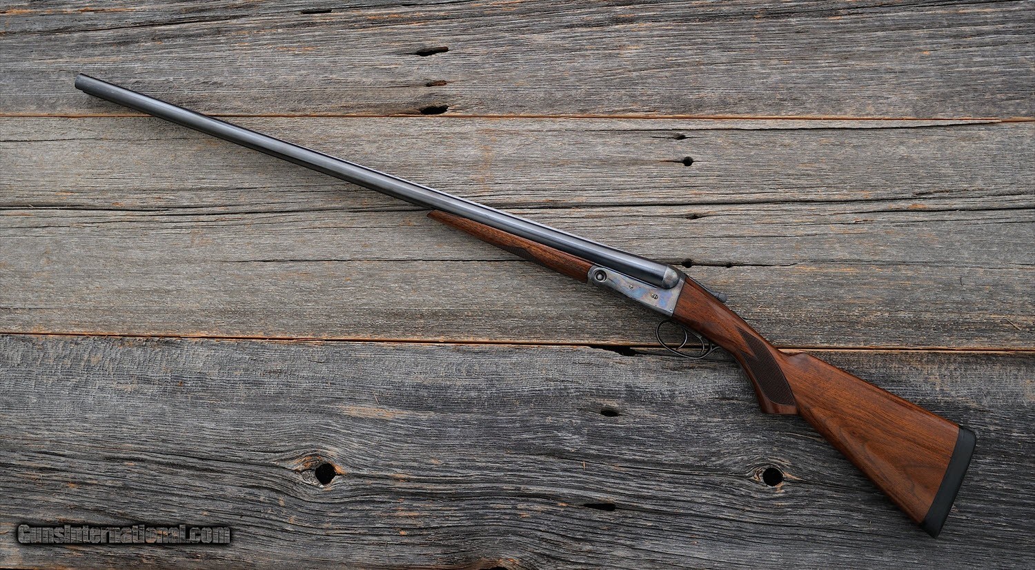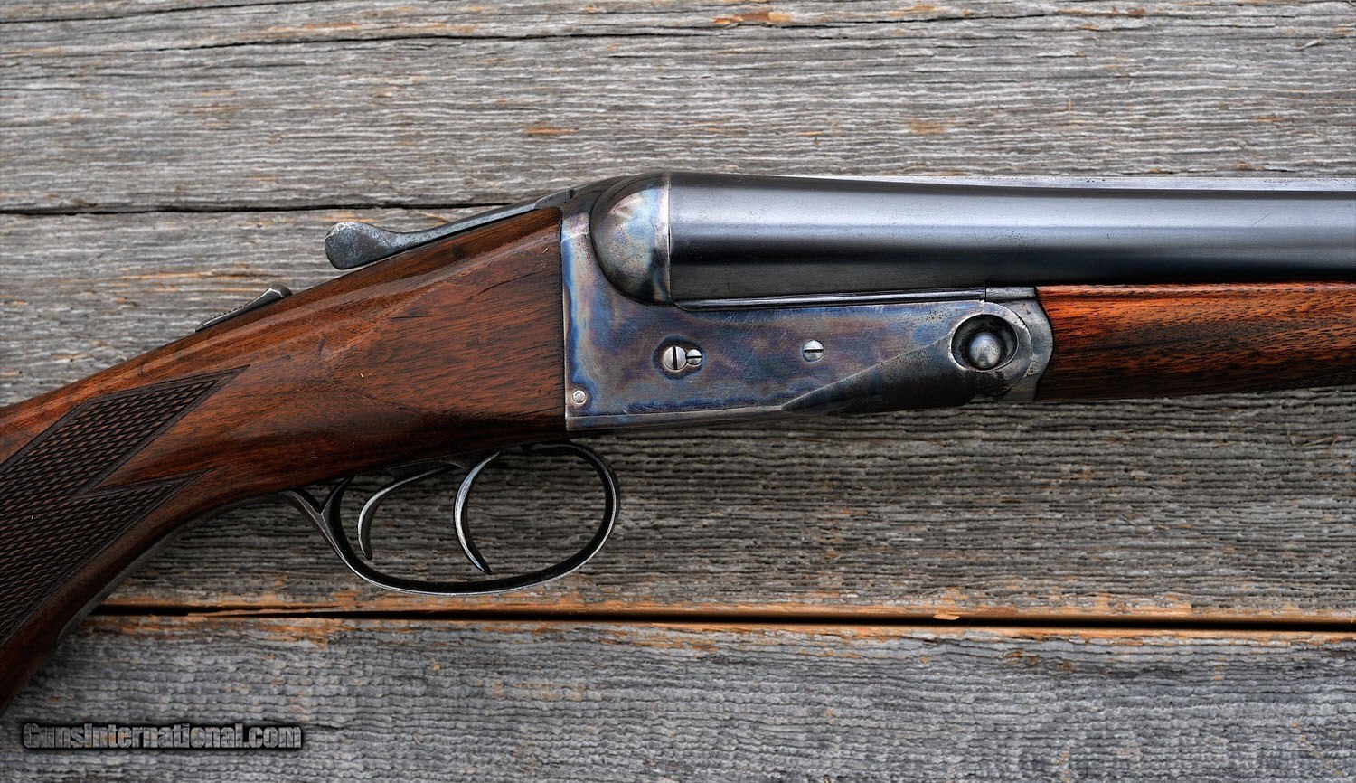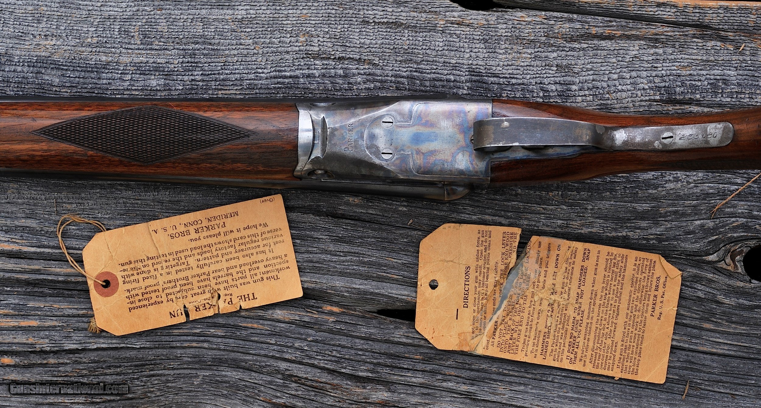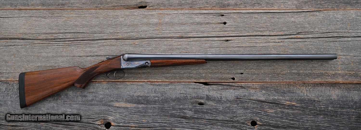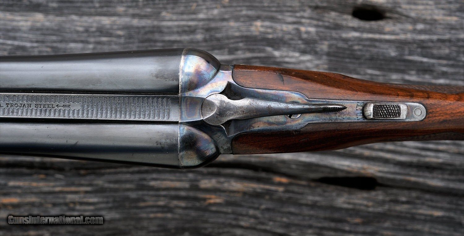 Description: Parker - Trojan - 12 ga - Item Number: PAR235680 Shotgun type: SxS Action: Boxlock Ejectors: No Trigger: Double Grip: Pistol Grip Forend: Checkered Lop: 13 3/4 " Pad thickness: 1.25 " Type of butt: Rubber Pad Drop comb: 1 3/4 " Drop heel: 2 3/4 " Cast amount: 0 " Cast: Weight: 7 lbs, 10 oz Manufactured in: USA Finish: Blue Overall condition: Very Good Stock condition: Very Good Metal condition: Very Good Stock: Original finish Metal: Original finish Type of Case: none Extra barrels: 0 Barrel info: Gauge: 12 ga Chamber: 2 3/4 " Length: 30 " Chokes: M/F Rib type: Concave Comments : Gun is in very good condition with some light handling marks. Original hangtags. SG-87 SOLD |
