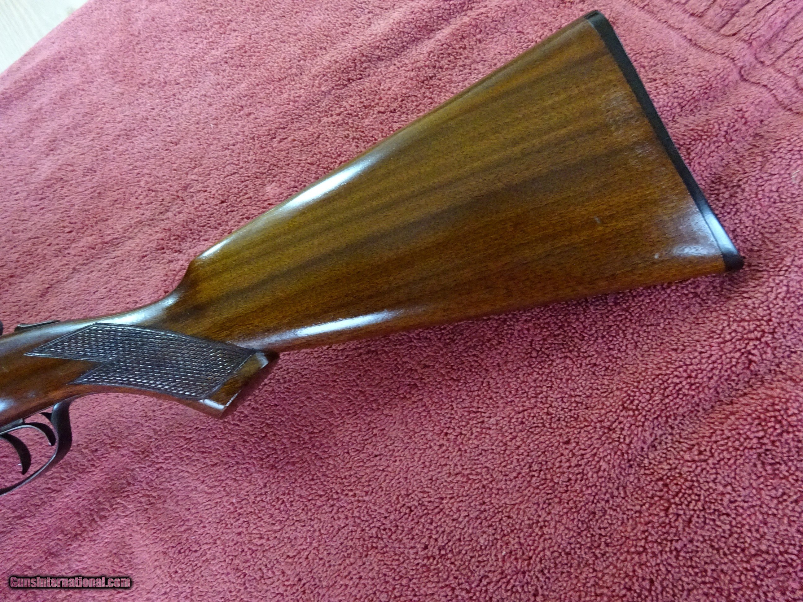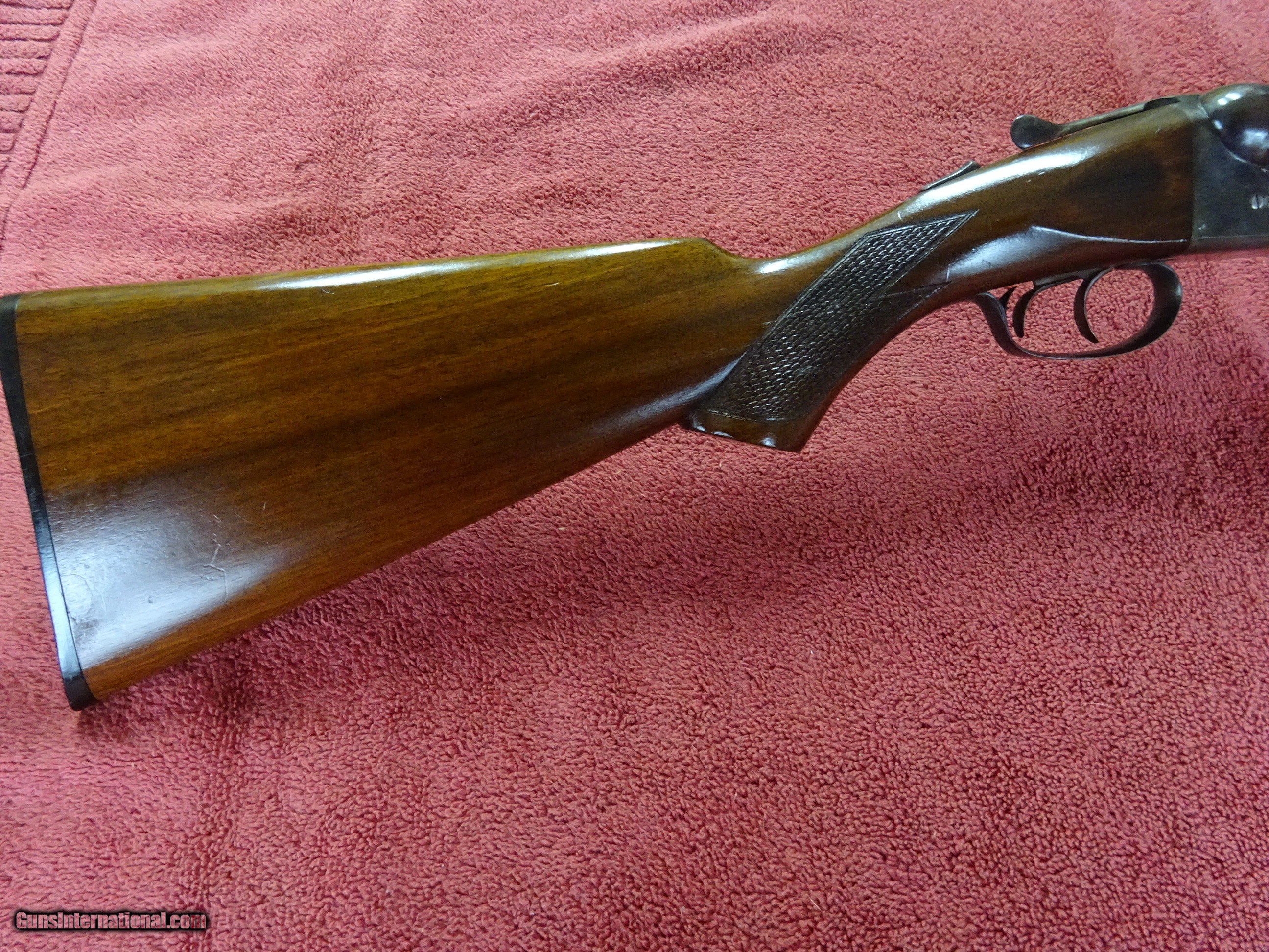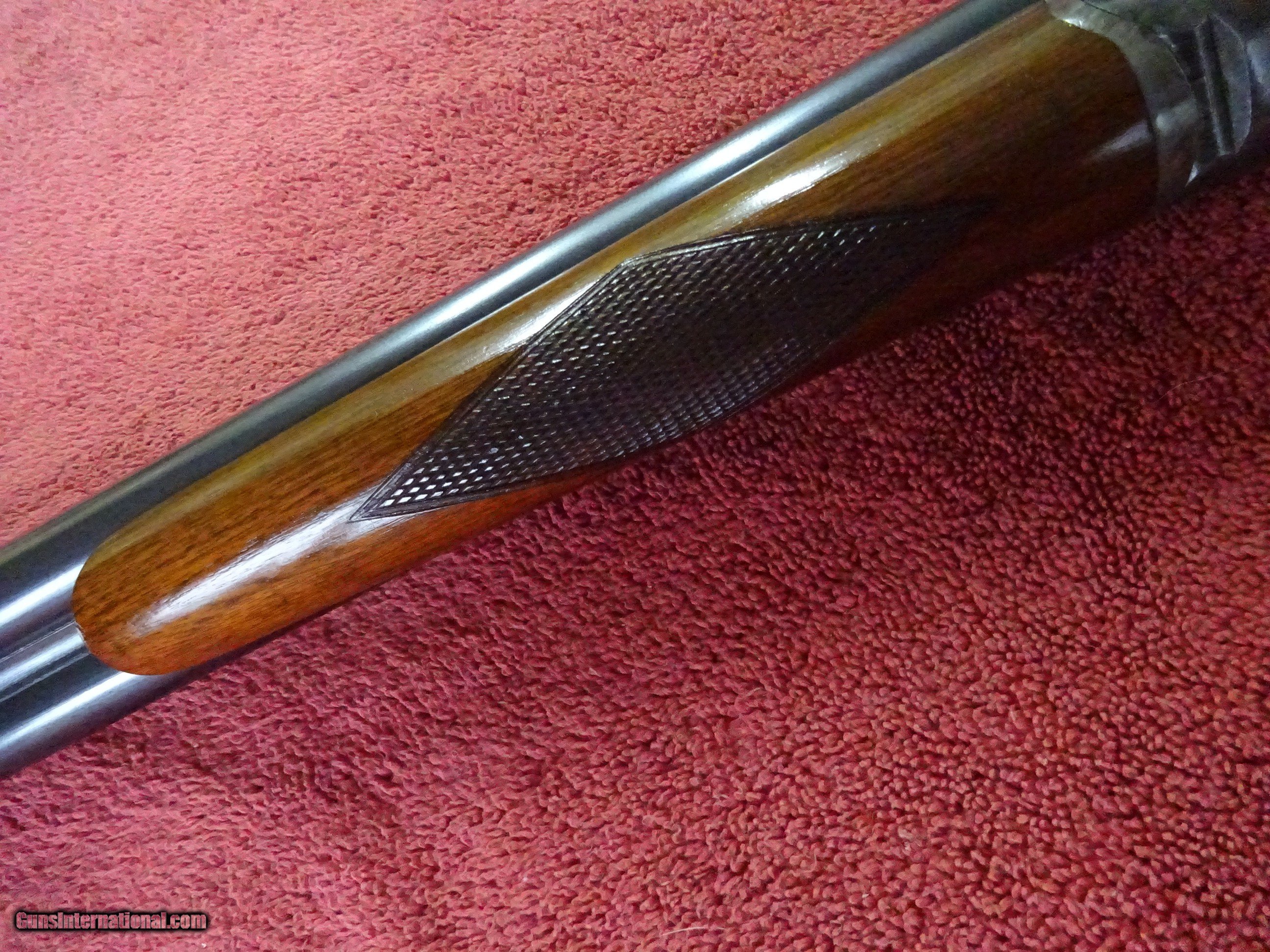 Description: PARKER TROJAN 12 GAUGE. 28" TROJAN STEEL BARRELS, EXCELLENT BRIGHT ORIGINAL BLUE, JIM GARY STAMP, MODIFIED (.025) AND FULL (.035), 2 1/2" CHAMBERS. MIRROR PERFECT BORES, BARRELS RING LIKE A BELL. BOXLOCK FRAME, TOP LEVER TO THE FAR RIGHT, TIGHT ON FACE. SOME VIVID CASE COLOR, PERFECT UNTURNED SCREWS. PISTOL GRIP STOCK, SPLINTER FOREARM, EXCEPTIONAL WOOD AND VARNISH. ORIGINAL BUTTPLATE, 1 3/4" X 2 3/4" X 14 1/8", 7 POUNDS 5 OUNCES. MADE IN 1927. NICE HONEST PARKER. $1250.00 + $70.00 Insured shipping to an FFL address. Layaway is available. See all Pats gun listings on this site! We also have hundreds of ORIGINAL gun company advertising & memorabilia pieces available for sale on our site SPORTINGCOLLECTIBLES. We have no reprints or reproductions. Email for more information. If you need to call, morning or evening is best, and please note the Seller's Inventory number. SOLD Curio/Relic: Yes |