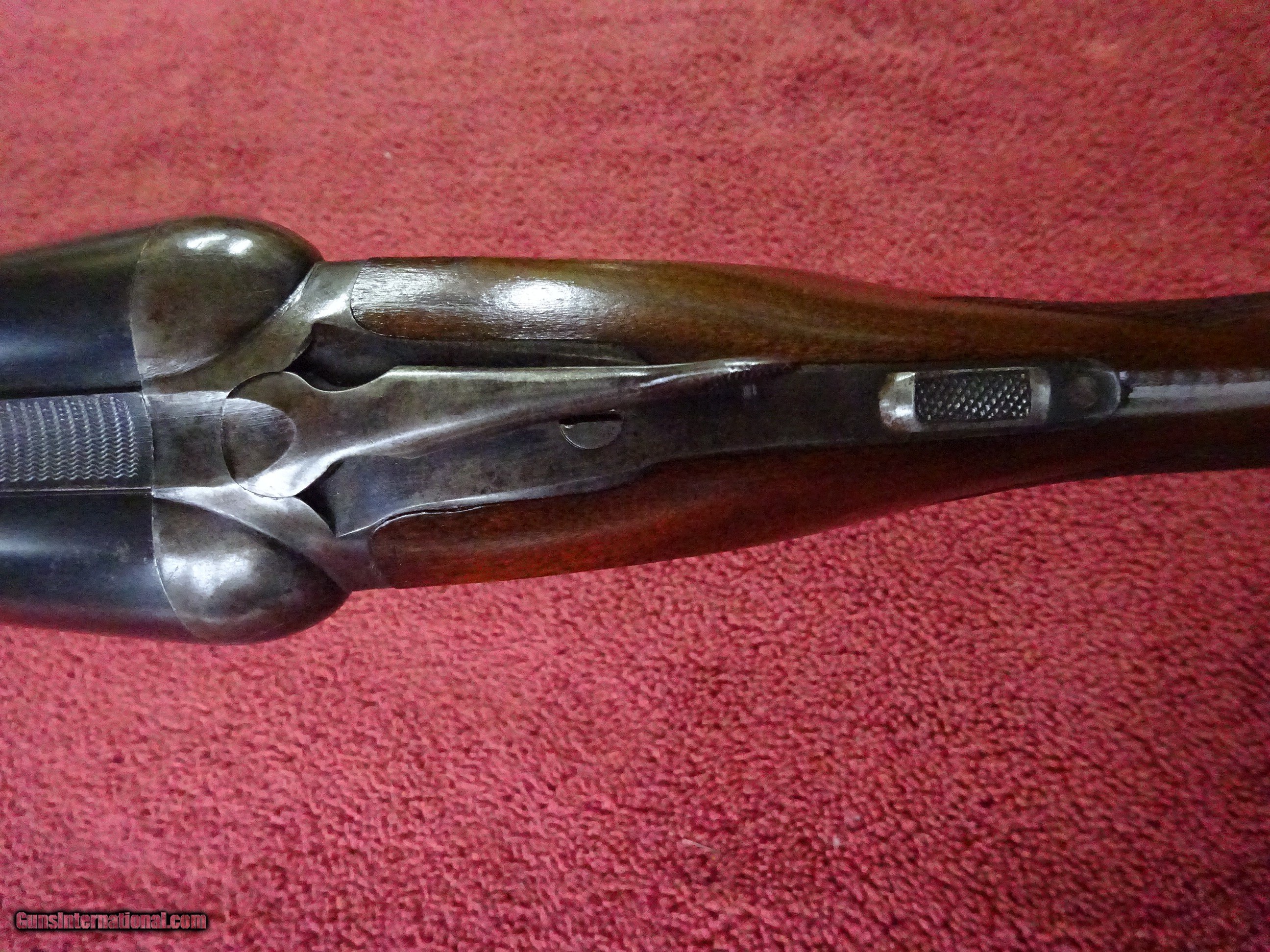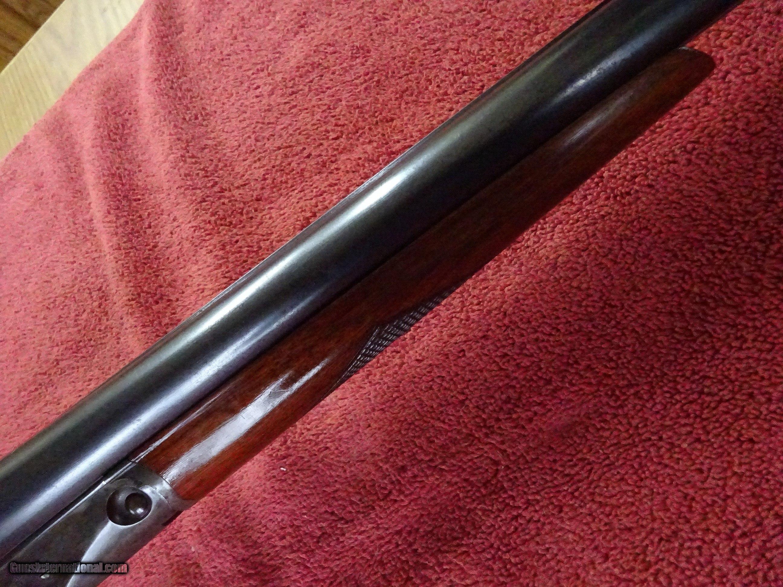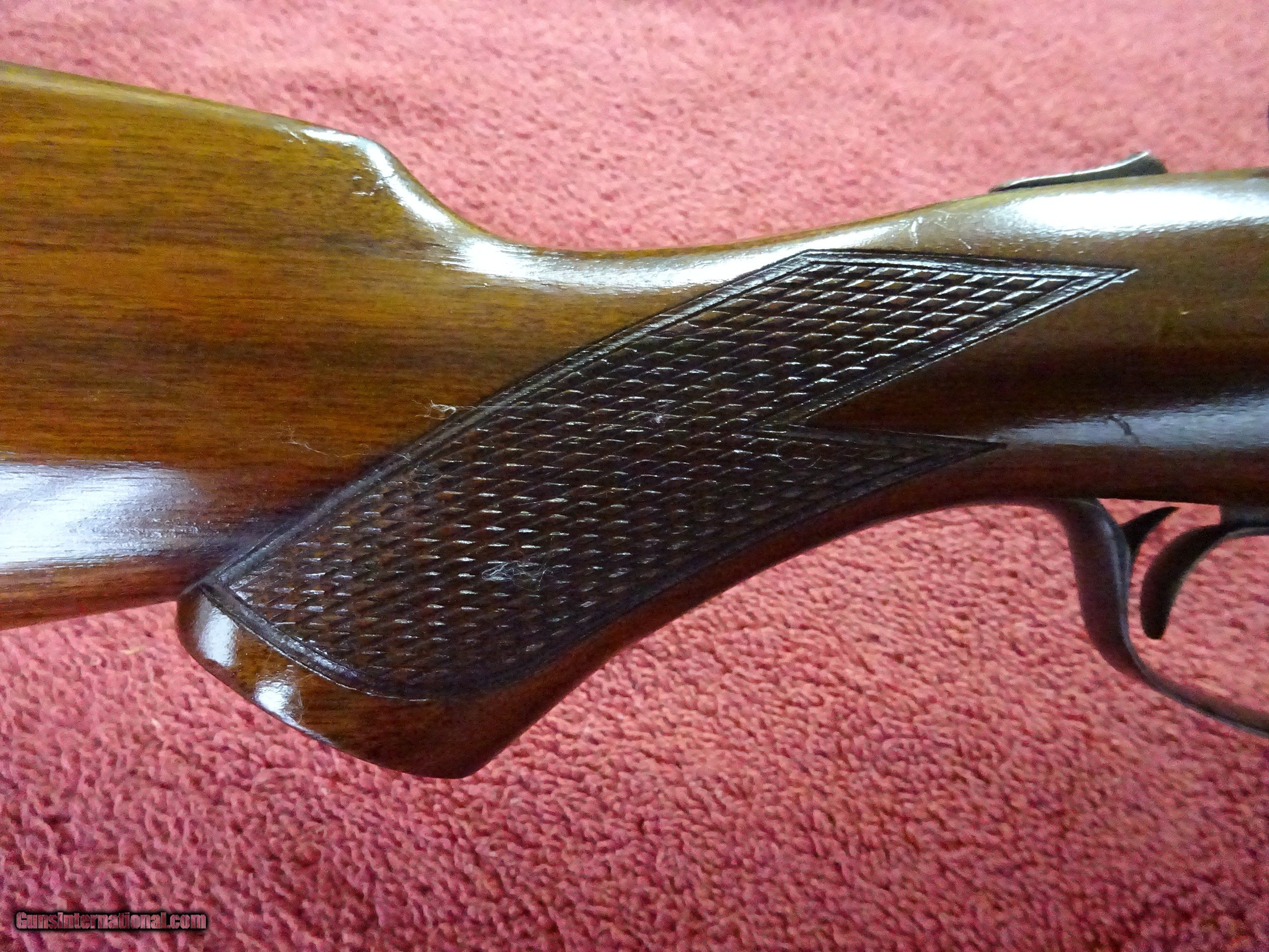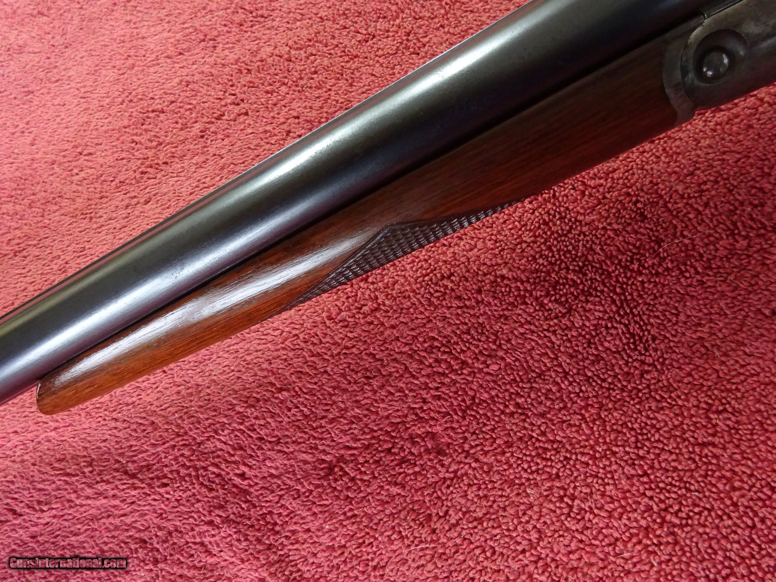 Description: PARKER TROJAN 12 GAUGE. 28" TROJAN STEEL BARRELS, EXCELLENT BRIGHT ORIGINAL BLUE, JIM GARY STAMP, MODIFIED (.025) AND FULL (.035), 2 1/2" CHAMBERS. MIRROR PERFECT BORES, BARRELS RING LIKE A BELL. BOXLOCK FRAME, TOP LEVER TO THE FAR RIGHT, TIGHT ON FACE. SOME VIVID CASE COLOR, PERFECT UNTURNED SCREWS. PISTOL GRIP STOCK, SPLINTER FOREARM, EXCEPTIONAL WOOD AND VARNISH. ORIGINAL BUTTPLATE, 1 3/4" X 2 3/4" X 14 1/8", 7 POUNDS 5 OUNCES. MADE IN 1927. NICE HONEST PARKER. $1250.00 + $70.00 Insured shipping to an FFL address. Layaway is available. See all Pats gun listings on this site! We also have hundreds of ORIGINAL gun company advertising & memorabilia pieces available for sale on our site SPORTINGCOLLECTIBLES. We have no reprints or reproductions. Email for more information. If you need to call, morning or evening is best, and please note the Seller's Inventory number. SOLD Curio/Relic: Yes |