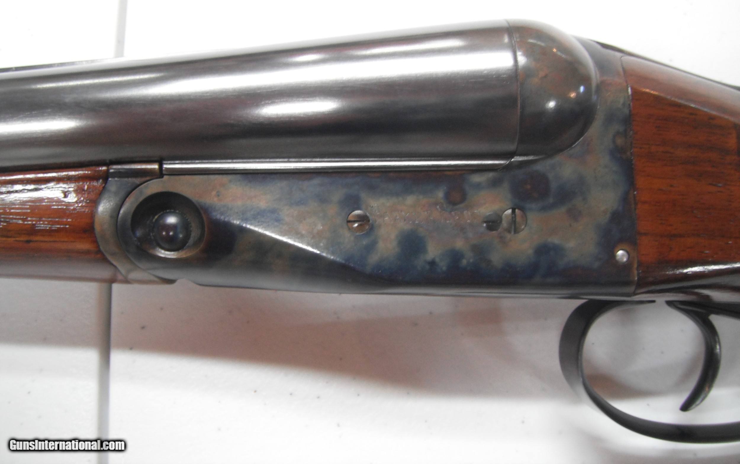 Description: This gun was bought from and restored by "Classic Case Colors, LLC". This person lists often on this site. I have only used this gun to shoot clays, around 100 total rounds through it. Frame is true bone charcoal color case hardened, barrels rust blued, furniture hot blued, and wood hand rubbed oil. Great shooter and everytime I'm at the range everyone asked to look at it. Full disclosure; there is the slighest pin size pitting in both barrels around 4" from muzzle (bought this way) hard to see unless you are really looking. Also, the barrels only come off if both triggers are pulled. I am told by a very knowledgable Parker gunsmith that is normal for Parker's and it could be one one of all five of five things none of which affect function. This gunsmith wrote an article on this very issue for the Parker Gun Collectors Assoc. newsletter. He told me it would not be worth the time or money to fix as it works and the time needed to find and fixed would not be worth it to me. Buyer must know all state and local laws before buying. Gun must be shipped to FFL and dealer has to accept transfer from private seller. SOLD Manufacturer: Parker Brothers Model: Trojan Bore: 12 Chambers: 2 5/8 Ejectors: No Condition: Restored Metal Condition: Excellent Wood Condition: Excellent Bore Condition: Very Good Barrels: 30 Barrel Type: S/S Action: S/S Triggers: Double Gauge Info: 12 Stock: Walnut Stock Comb: 2 Stock Heel: 3 Stock Cast: Cast off Butt Pad: Factory Hard Rubber LOP: 13 7/8" to front trigger Finish: Case Colored/Rust Blued Weight: 7.5 lbs Sights: Single bead Chokes: Fixed Choke Left: Full Choke Right: IM Engraving: No |
