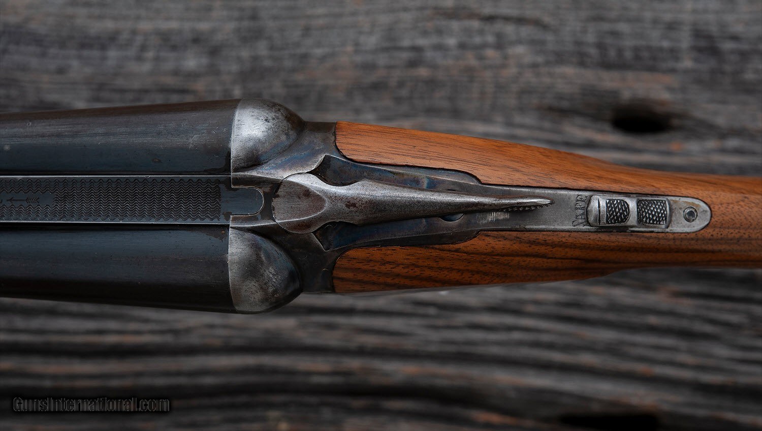 Description: Parker - Trojan - 16 ga - Item Number: PAR174161 Shotgun type: SxS Action: Boxlock Ejectors: No Trigger: Double Grip: Straight Grip Forend: Not Checkered Lop: 14 3/8 " Pad thickness: 0.25 " Type of butt: Plastic Buttplate Drop comb: 1 1/2 " Drop heel: 2 5/8 " Cast amount: 1/8 " Cast: Off Weight: 7 lbs, oz Manufactured in: USA Manufacture Year:Finish: Case Colored Overall condition: Good Stock condition: Good Metal condition: Good Stock: Original finish Metal: Original finish Type of Case: none Extra barrels: 0 Barrel info: Gauge: 16 ga Chamber: 2 3/4 " Length: 26 " Chokes: M/F Rib type: Concave ` Comments : Gun has been restocked, some staining and loss of blue on barrels, burred screws. SG-143 SOLD Curio/Relic: Yes |