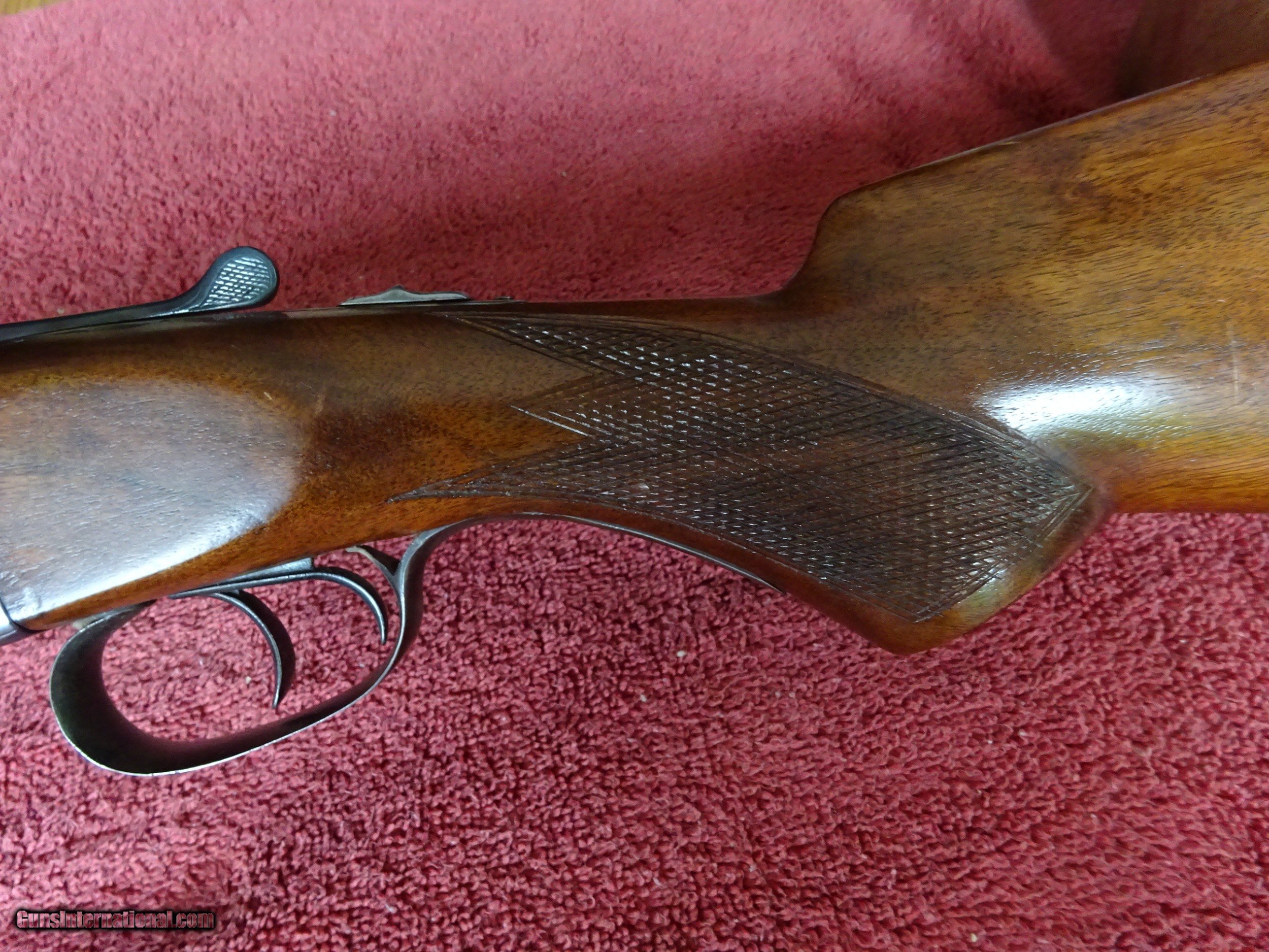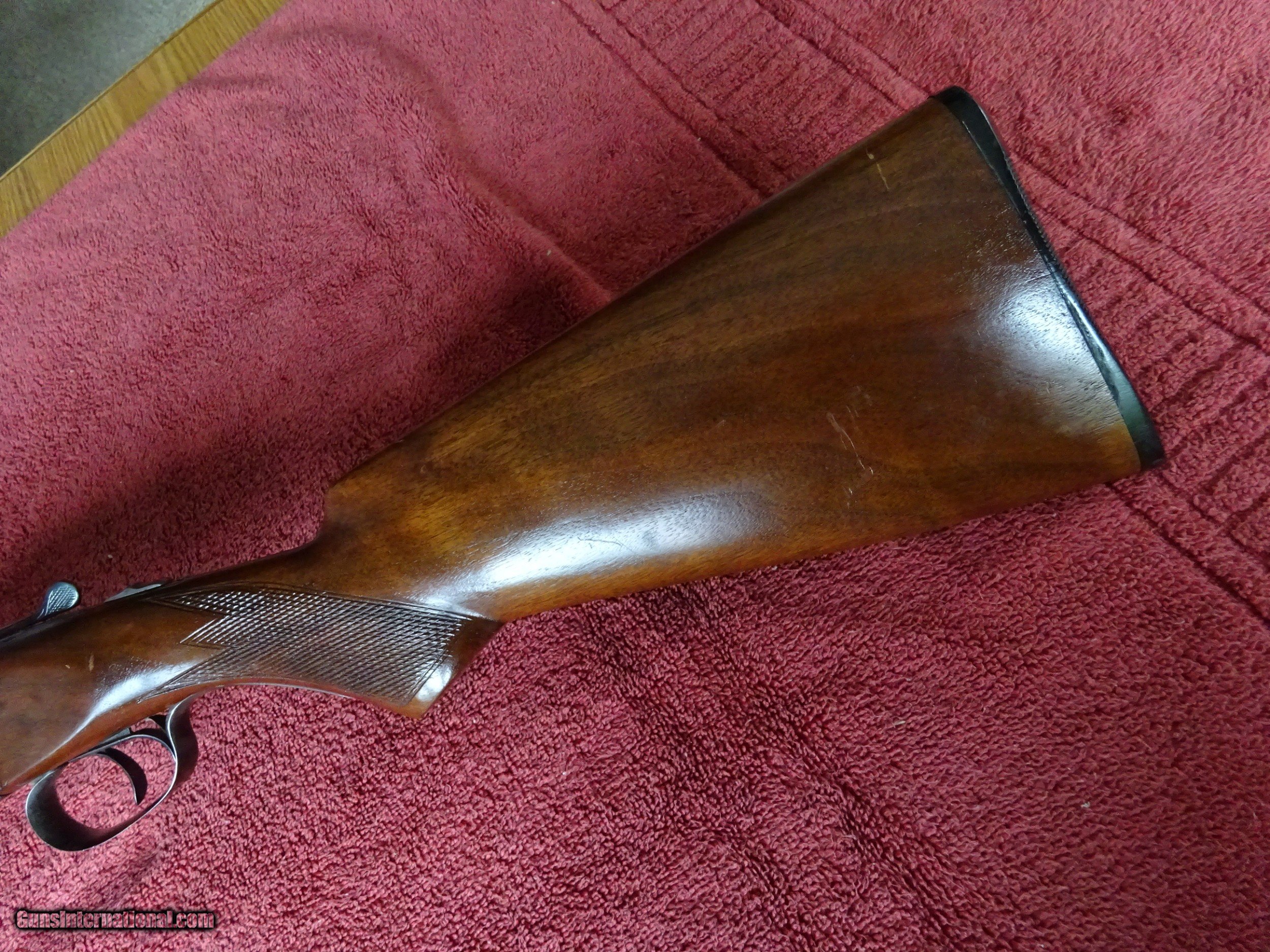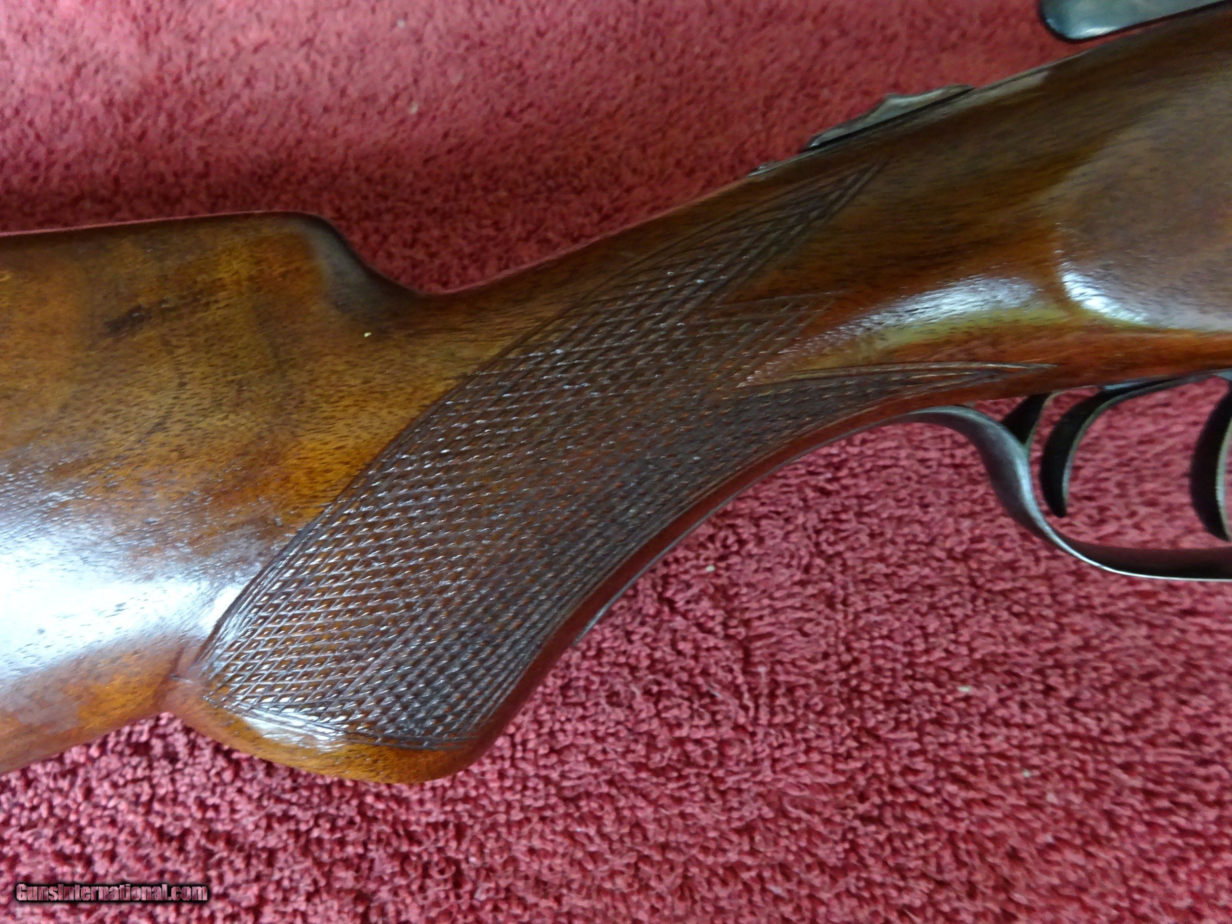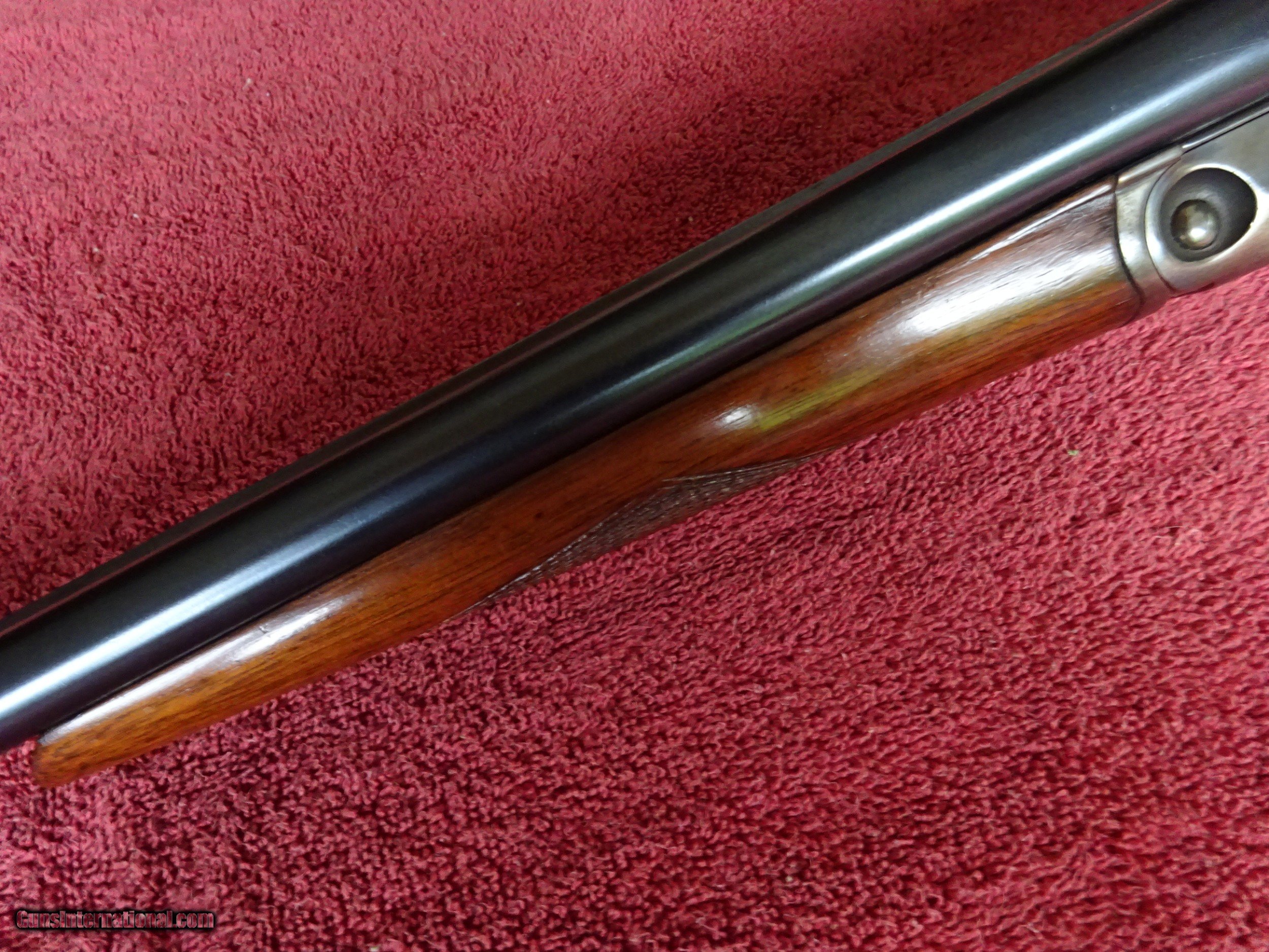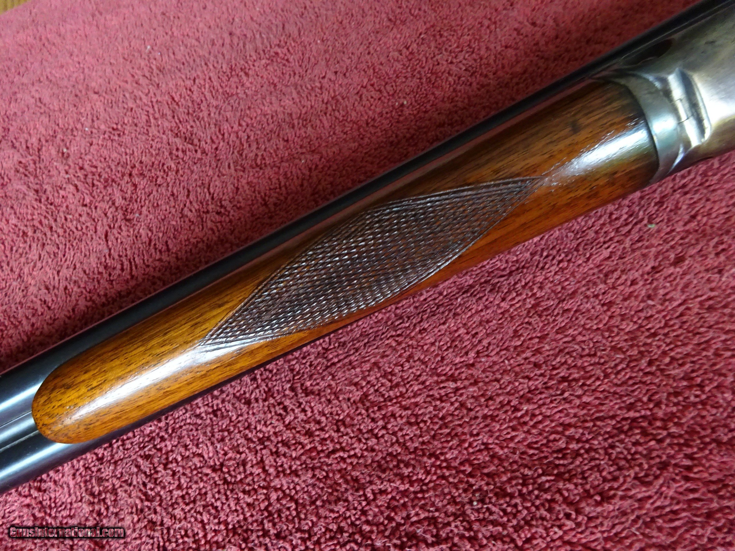 Description: PARKER TROJAN GRADE, 20 GAUGE, 26" BARRELS. FULL AND MODIFIED, 2 1/2 " CHAMBERS EXCELLENT BLUE, MIRROR BRIGHT BORES. BRIGHT CASE COLOR OVER ENTIRE FRAME, TOP LEVER TO THE RIGHT, TIGHT ON FACE. PISTOL GRIP STOCK, SPLINTER FOREARM, VERY GOOD WOOD AND CHECKERING. ORIGINAL BUTTPLATE, 1 3/8" X 2 1/8" X 14", 5 POUNDS 12 OUNCES. THE GUN WAS COMPLETELY REFINISHED YEARS AGO. GOOD SOUND LIGHT WEIGHT HUNTING GUN. $1750.00 + $45.00 Insured shipping to an FFL address. See all Pats listings We also have hundreds of pieces of ORIGINAL gun company advertising & memorabilia available for sale. We have no reprints or reproductions. Email for more information. SOLD Curio/Relic: Yes Serial Number: 193xxx |