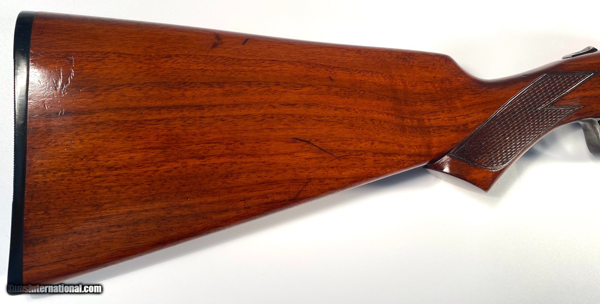 Description: For your consideration is a very nice circa 1929 Parker Trojan in 20 gauge with 2 1/2" chambers and 28" barrels. Action retains about 60% color and barrels about 98% bluing and mirror bores. Original wood with a very nice patina and original Trojan butt plate with a chip at the toe as shown. Checkering is very clean with very light handling marks given its age. Screws are perfect and clocked correctly. Locks up tight with lever to the right. One of the best unmolested Trojans I have seen. Weighs 6lbs 5.2ozs on digital scale. SOLD Curio/Relic: Yes Shotgun Gauge: 20 Gauge Manufacturer: Parker Model: Trojan Serial Number: 231453 Barrel Length: 28 Bore: Left .615 Right .619 Chambers: 2 1/2 Ejectors: NO Condition: Very Good Metal Condition: Excellent Wood Condition: Excellent Bore Condition: Mirror Bright Barrel Type: SxS Action: Box Lock Triggers: Double Stock Comb: 1 3/4 Stock Heel: 2 3/4 Stock Cast: 1/4" OFF (for RH shooting) Butt Pad: Factory Plate (Chipped at toe) LOP: 13 7/8 Weight: 6lbs 5ozs Sights: Single silver bead Manufacture Date: c 1929 Choke Left: .023 Lt Full Choke Right: .011 Lt Mod Engraving: Parker Bros on sides of action |