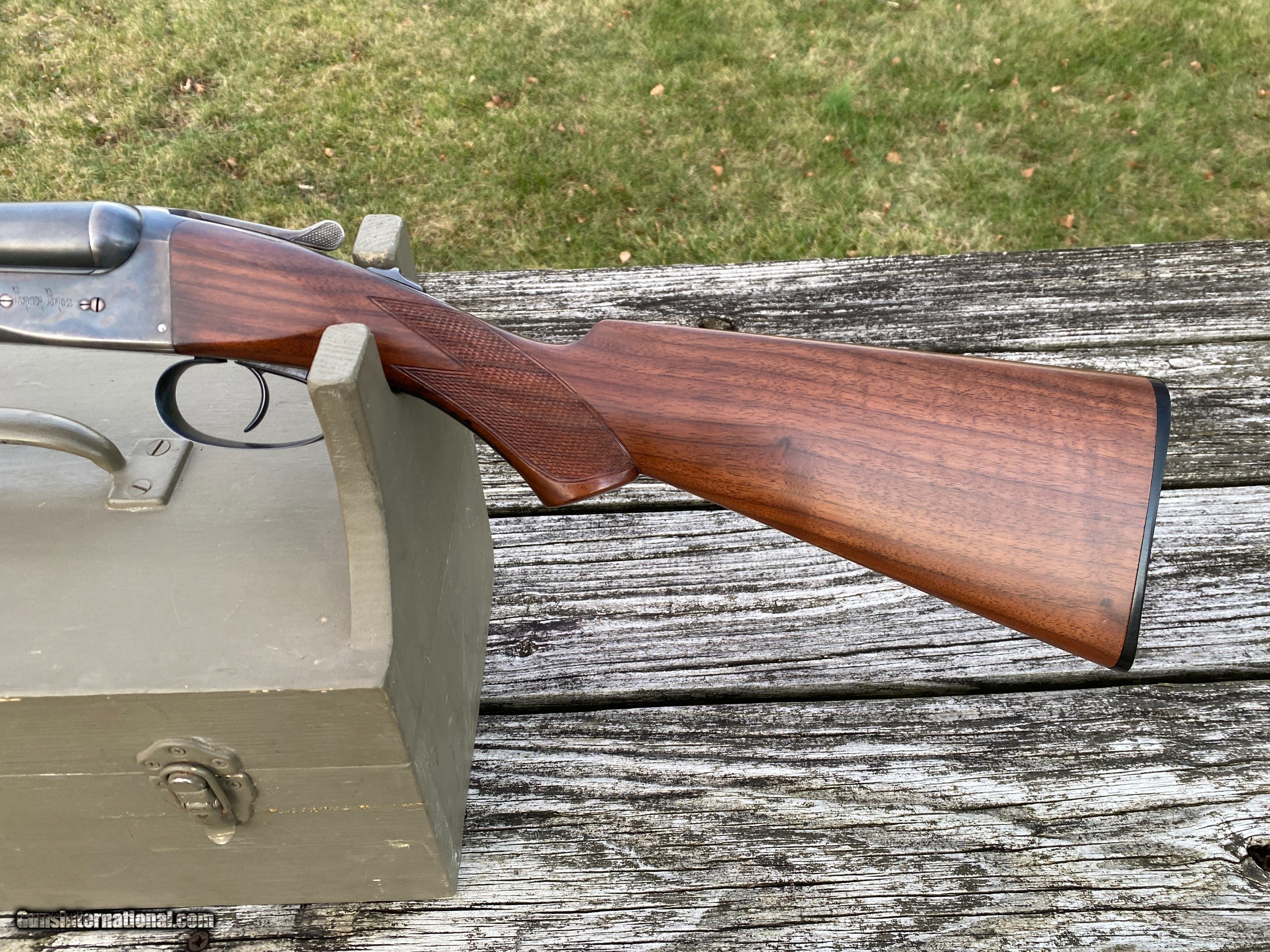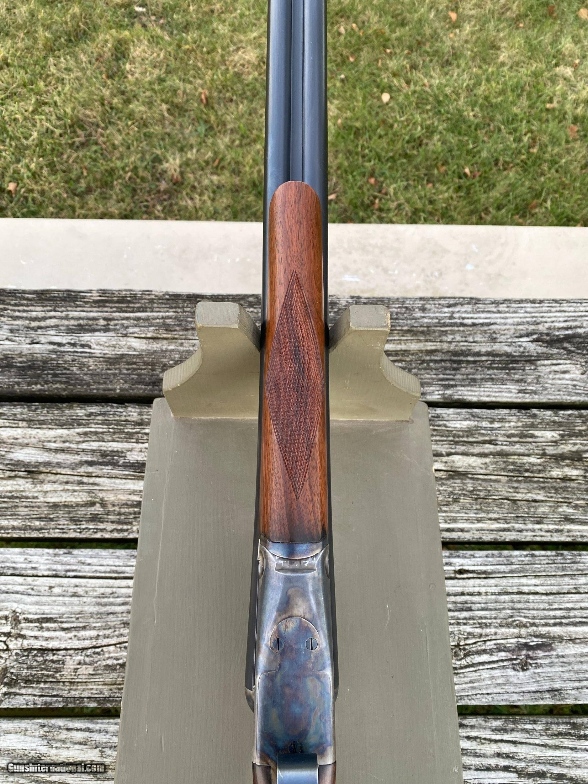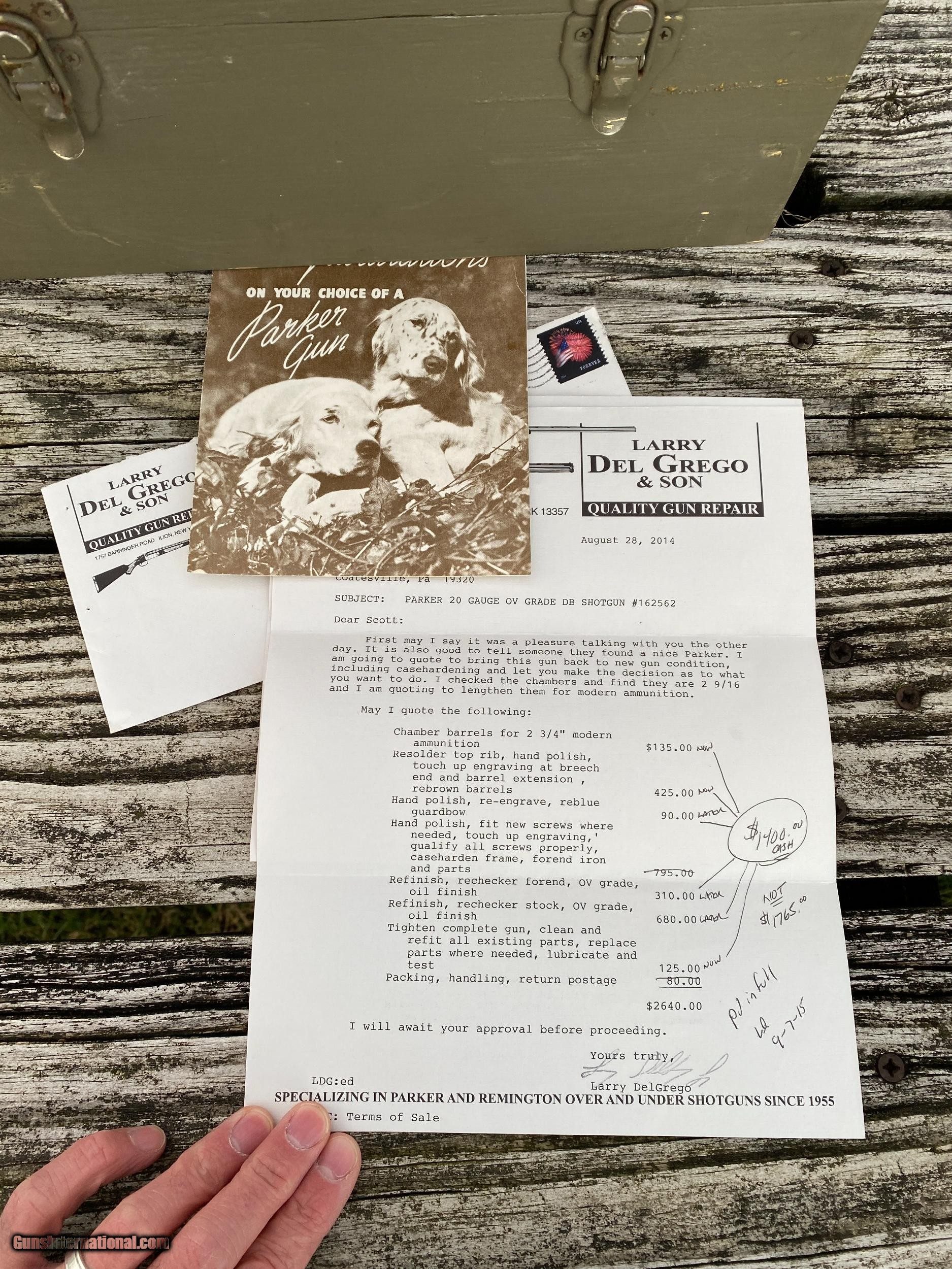 Description: SOLD--For your consideration is a very nicely Delgrego restored Parker Trojan 20 gauge. I aquired the gun in its original condition and sent it to Delgrego for evaluation/quote to make it like new again. As per the photo of the documentation, I sent it to him in August 2014 and he completed it in September 2015 just in time for the Ruffed Grouse season. I have lightly gunned for grouse and shot clays with this little Parker for the past 7 years and it has performed beautifully, but I am now thinning my collection and pray this gun will find a good home to serve. I am aware I have more money in this gun than it will bring; the restoration was $2600.00 alone. Documentation included with gun. Please email or call for any questions. SOLD Curio/Relic: Yes Shotgun Gauge: 20 Gauge Manufacturer: Parker Model: Trojan Serial Number: 162562 Chambers: 2 3/4 Ejectors: none Condition: excellent Metal Condition: excellent Wood Condition: excellent Bore Condition: excellent Barrel Type: steel Triggers: double Stock Comb: 1 1/2 Stock Heel: 2 1/2 Stock Cast: 1/8" cast off Butt Pad: original LOP: 14 Weight: 6 1/4lb Choke Left: Imp Cyl Choke Right: Skeet |