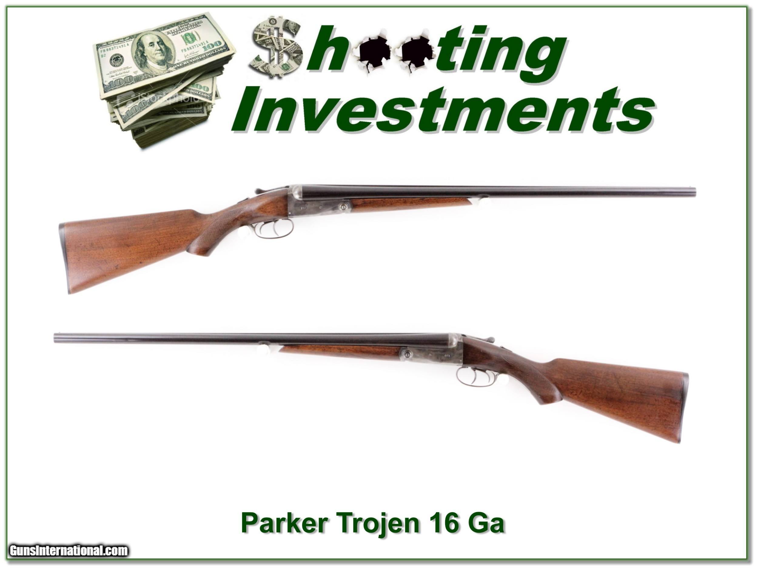 Description: ?This is a hard to find Parker 16 Gauge. It is all original and still has nice case colors as seen. It comes with 26in barrels choked F & M. It locks up tight and will make a fine addition to your collection. I am selling this one on consignment and as such lay-a-way can’t be used. It does of course have the standard 3-day inspection. Shipping and insurance is $59. Please email me with any questions or larger pictures. (Consign your quality firearms with Shooting Investments for only 12%! Let me know if you have any you would like to sell!) 18-0687 Payment: Payment is by Money Order, Cashiers Check or Personal Check. I can now also accept MasterCard and Visa with a 3% convenience fee. PayPal can be used for some items but never firearms. Please let us know if you would like to pay via PayPal. Shipping: The shipping charge will be listed in each description. It is $39 for most long guns and $29 for most handguns. Some heavy guns or those insured for over $2000 will be higher. Shipments to Alaska and Hawaii are higher because air shipment is required. Most firearms are shipped on Tuesday and Thursday and usually in 5 days of receipt of payment. We package all shipments carefully and insure them. For long guns you can purchase a new Plano case for $19. They now cost us $22 when buying 100 at a time. Optics are shipped Priority Mail and most other non-firearm shipments are shipped First Class. Returns: Our return policy is simple. If for any reason you are not pleased with your purchase, you may return your item for a full refund of purchase price. Ammunition cannot be returned. It is important to us that you are happy. Guns cannot be fired or dissembled before returning them and they must be returned in the same condition as received. Notification of a return must occur with-in 3 days of receipt at your dealer. Shipping, convenience and dealer fees are not refundable and are the responsibility of the buyer. Lay-a-way: If needed, we offer a 60 day lay-a-way option on most firearms. It is 1/3 now, 1/3 in 30 days and 1/3 in 60 days. Lay-a-way firearm sales are final and if not completed the first payment cannot be returned. Consigning your firearms with Shooting Investments: We will help you get top dollar for your firearms. While most local guns shops charge 20% or more, our fee is only 12% with a minimum of $75. At your local gun shop it might take months to sell. Selling on-line provides instant access to thousands of interested buyers. You won’t find any other on-line dealer willing to sell your firearms for only 12% or listing every gun on 3 separate s. Selling through an House typically costs the seller 15% and the buyer an addition 15% (so 30%) and you have to wait several months to sell and longer to receive funds. If properly priced, we will sell your firearms in a few weeks. Send us an email or give us a call and we’ll explain how easy it is for you to get top dollar. Trading: Trading for use is really just buying your gun to re-sell. If you have a gun you want to trade, please email a picture and we will let you know what we can give or it. You will always get more if we sell it for you on consignment. Help for California Buyers: We are happy to ship to California. It is the buyer’s responsibility to make sure any item you buy is legal in your state. We are also happy to help with your purchase of a firearm from someone other than us. If you see a gun you would like to buy but the seller can’t or won’t ship to California they can ship to use and we’ll then ship it to your California dealer. The cost for this service is only $30 + shipping. Let us know if we can help! ?This is a hard to find Parker 16 Gauge. It is all original and still has nice case colors as seen. It comes with 26in barrels choked F & M. It locks up tight and will make a fine addition to your collection. I am selling this one on consignment and as such lay-a-way can’t be used. It does of course have the standard 3-day inspection. Shipping and insurance is $59. Please email me with any questions or larger pictures. (Consign your quality firearms with Shooting Investments for only 12%! Let me know if you have any you would like to sell!) 18-0687 Payment: Payment is by Money Order, Cashiers Check or Personal Check. I can now also accept MasterCard and Visa with a 3% convenience fee. PayPal can be used for some items but never firearms. Please let us know if you would like to pay via PayPal. Shipping: The shipping charge will be listed in each description. It is $39 for most long guns and $29 for most handguns. Some heavy guns or those insured for over $2000 will be higher. Shipments to Alaska and Hawaii are higher because air shipment is required. Most firearms are shipped on Tuesday and Thursday and usually in 5 days of receipt of payment. We package all shipments carefully and insure them. For long guns you can purchase a new Plano case for $19. They now cost us $22 when buying 100 at a time. Optics are shipped Priority Mail and most other non-firearm shipments are shipped First Class. Returns: Our return policy is simple. If for any reason you are not pleased with your purchase, you may return your item for a full refund of purchase price. Ammunition cannot be returned. It is important to us that you are happy. Guns cannot be fired or dissembled before returning them and they must be returned in the same condition as received. Notification of a return must occur with-in 3 days of receipt at your dealer. Shipping, convenience and dealer fees are not refundable and are the responsibility of the buyer. Lay-a-way: If needed, we offer a 60 day lay-a-way option on most firearms. It is 1/3 now, 1/3 in 30 days and 1/3 in 60 days. Lay-a-way firearm sales are final and if not completed the first payment cannot be returned. Consigning your firearms with Shooting Investments: We will help you get top dollar for your firearms. While most local guns shops charge 20% or more, our fee is only 12% with 