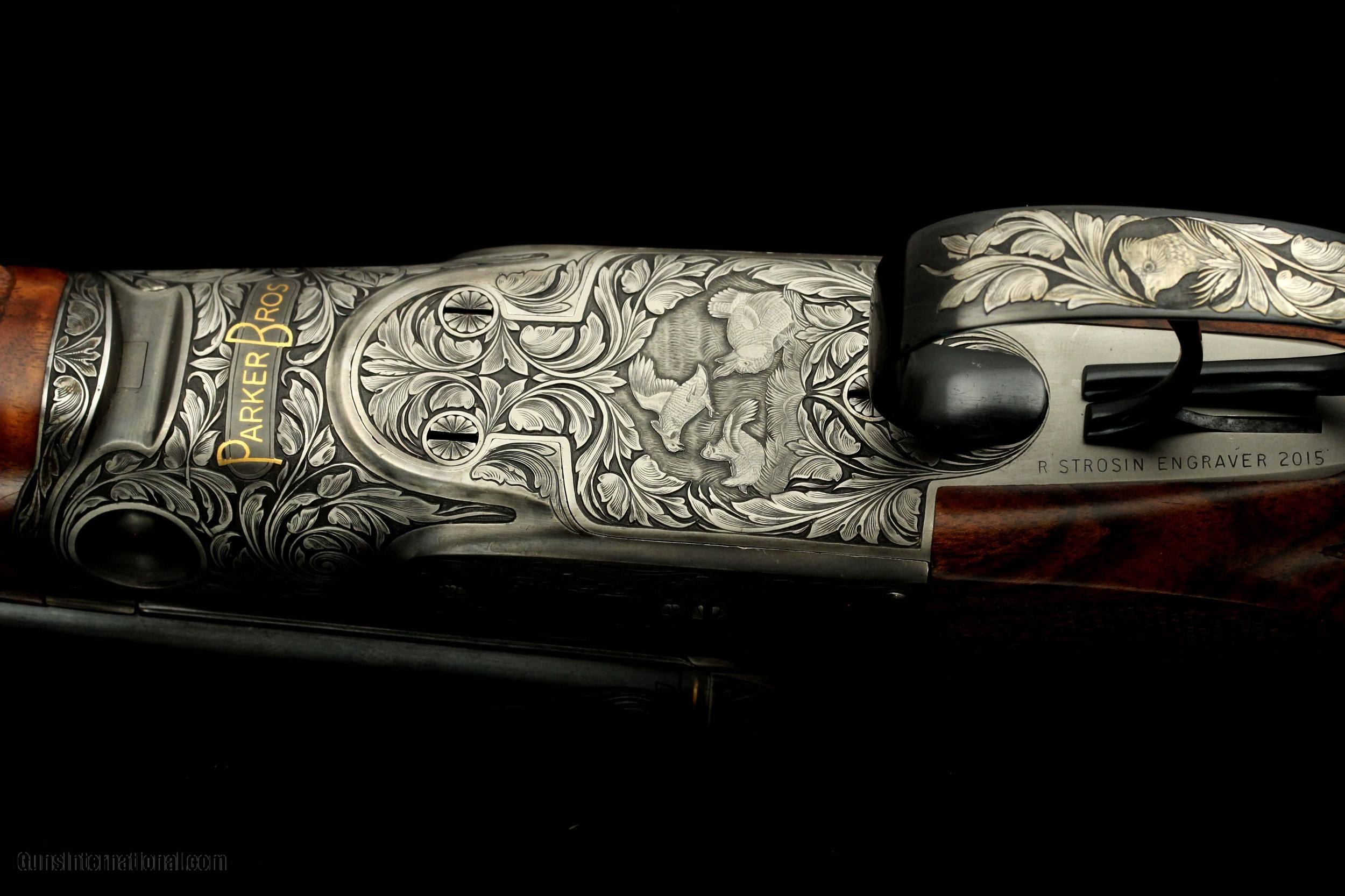 Description: Parker Trojan 16 ga. The frame has been reshaped. 28" barrel M&F. Turkish walnut stock with 24 LPI ckeckering.Double triggers. 14 1/2" LOP - front trigger. 1 1/2" at comb. 2 1/4"at heel. leather recoil pad. Stock by S Billib. Engraving & Checkering by R Strosin. Case color & buling 95%+ Stock 95%+ SOLD Manufacturer: Parker Model: Trojan Serial Number: 166258 Ejectors: no Condition: very good Metal Condition: very good Wood Condition: very good Bore Condition: bright Barrels: 28 Triggers: Double Gauge Info: 16 Stock Comb: 1 1/4 Stock Heel: 2 1/4 LOP: 14 1/2 Weight: 7 1/4 LBS Choke Left: F Choke Right: M Item Location: WI |