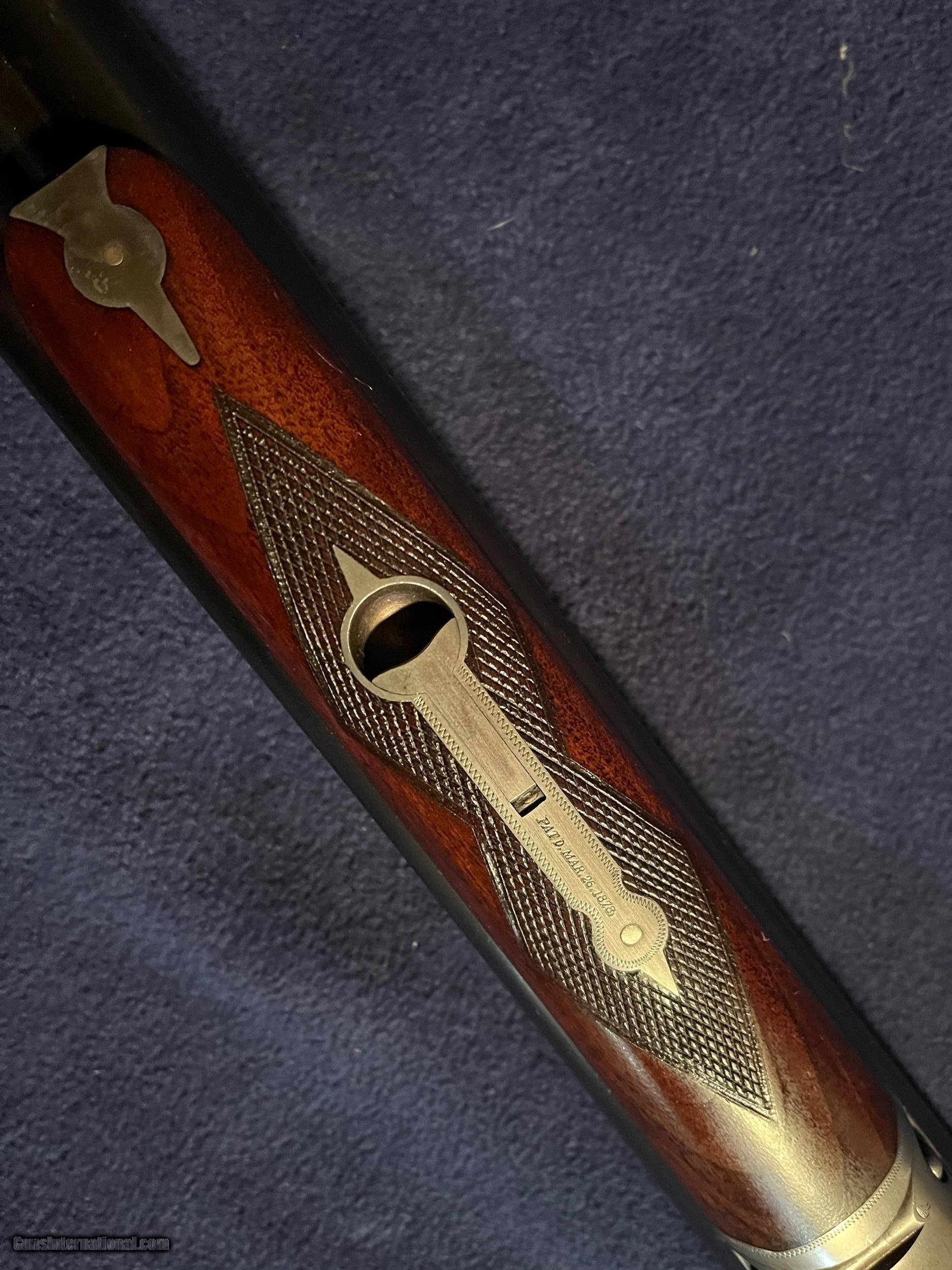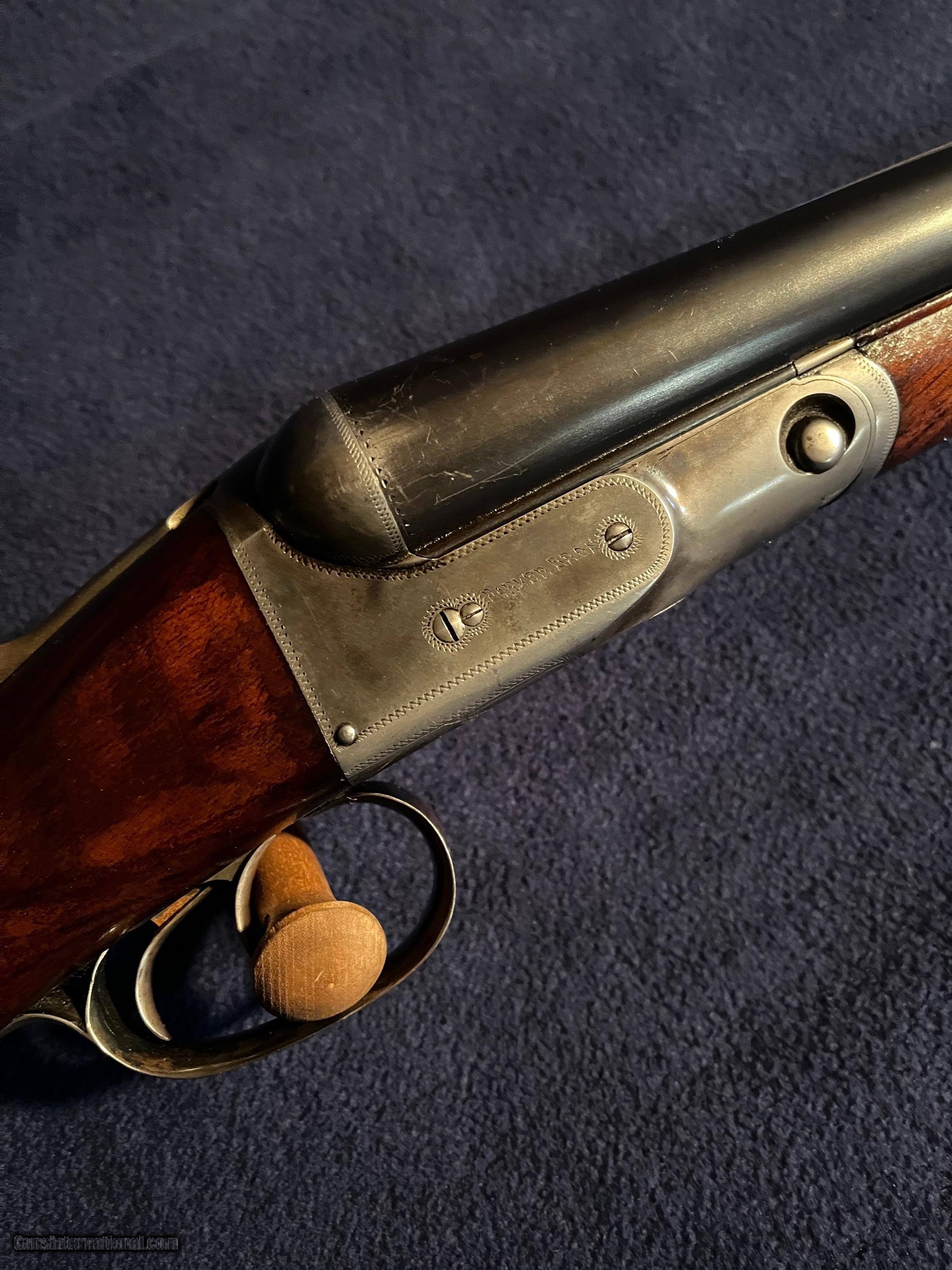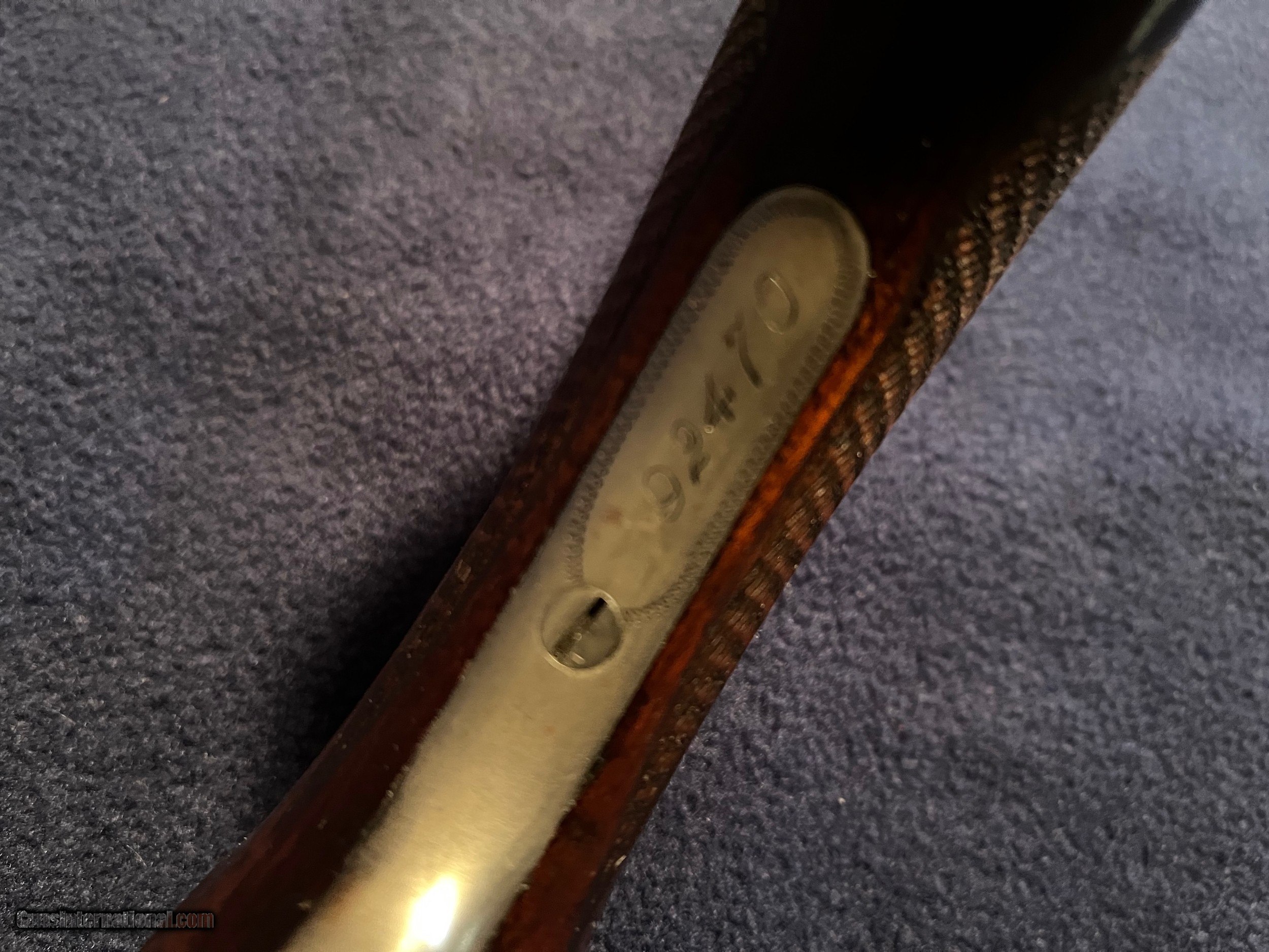 Description: SOLD! SALE !! $995.00. Nice Parker,made in 1899. 35% original case color,90% barrel blue,95% stock finish with small sliver missing next to top tang. 30" barrels choked full and full,mint bores. 13 3/4",1 7/8",3 1/8. 7 lb. 13oz. Great cond. $35.00 shipping SOLD Curio/Relic: Yes |
