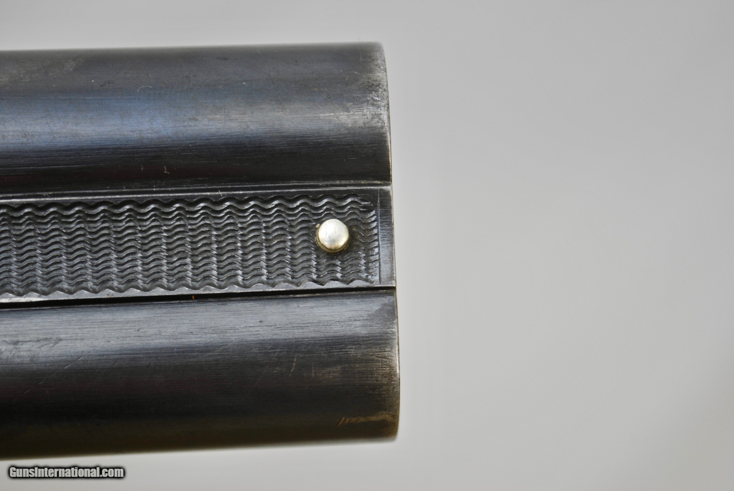 Description: SALE PENDING. As soon as picked up this Parker I noticed the heavy weight of 8 LBS 2 5/8" and the chambers at 3". Barrels of 30" have a pre struck weight of 4 LBS 7 OZ. Frame size is 2. Outstanding mirror bores. Bores measure .729 with Full (40/1000) and Full (40/1000) Chokes. Tight on face. All serial numbers match. Barrels ring true, no loose ribs. Extractors. LOP is 14 1/4". Shipping is $40. For inquiries please call Guy - 407-721-3748 SOLD Curio/Relic: Yes |